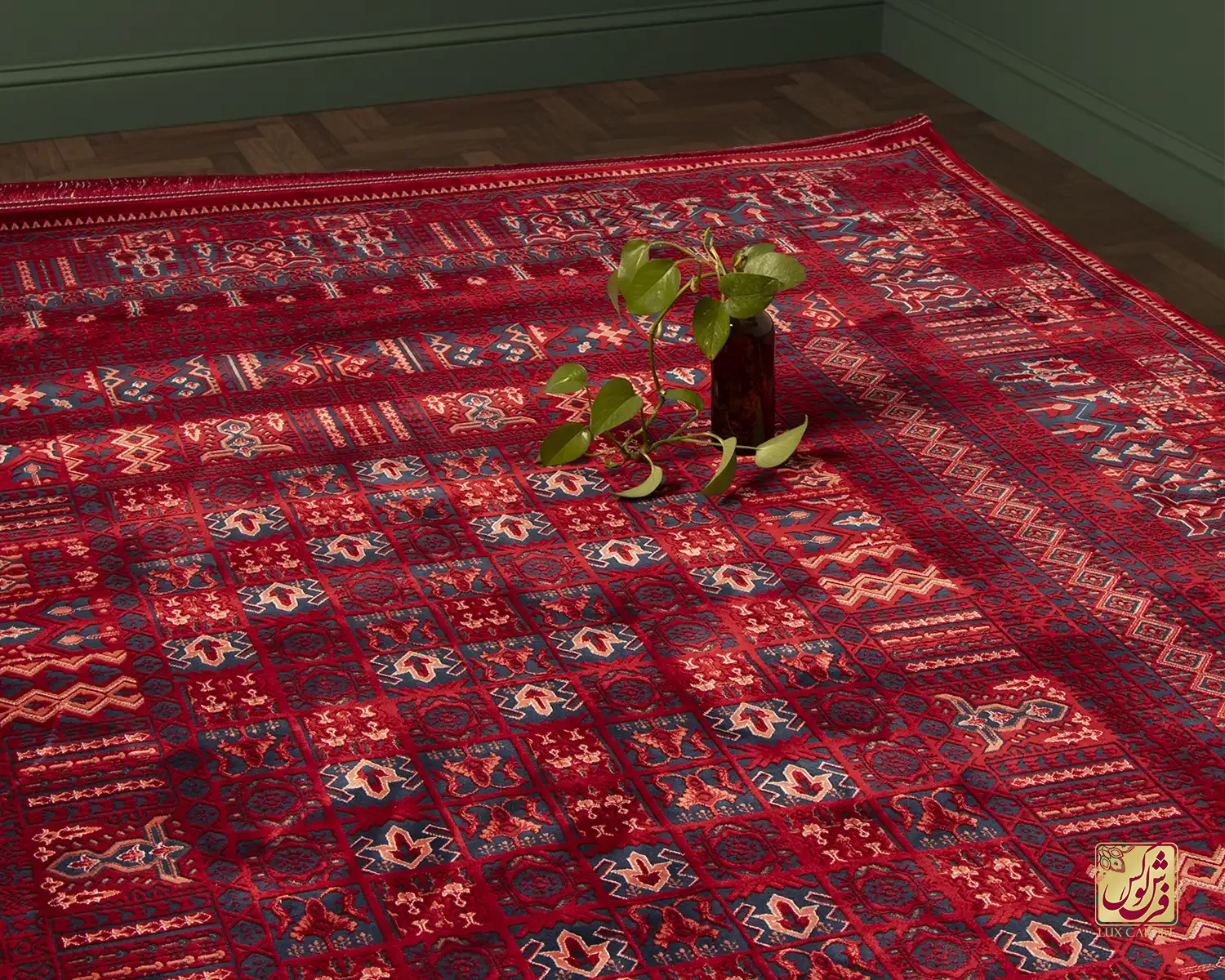فرش وینتیج اطلس LSK قرمز سرمهای