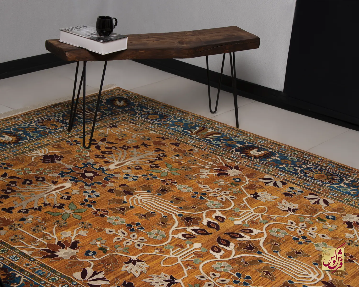 فرش ابریشم ماشینی ۷۴۳۱۰۰ آبی کرم