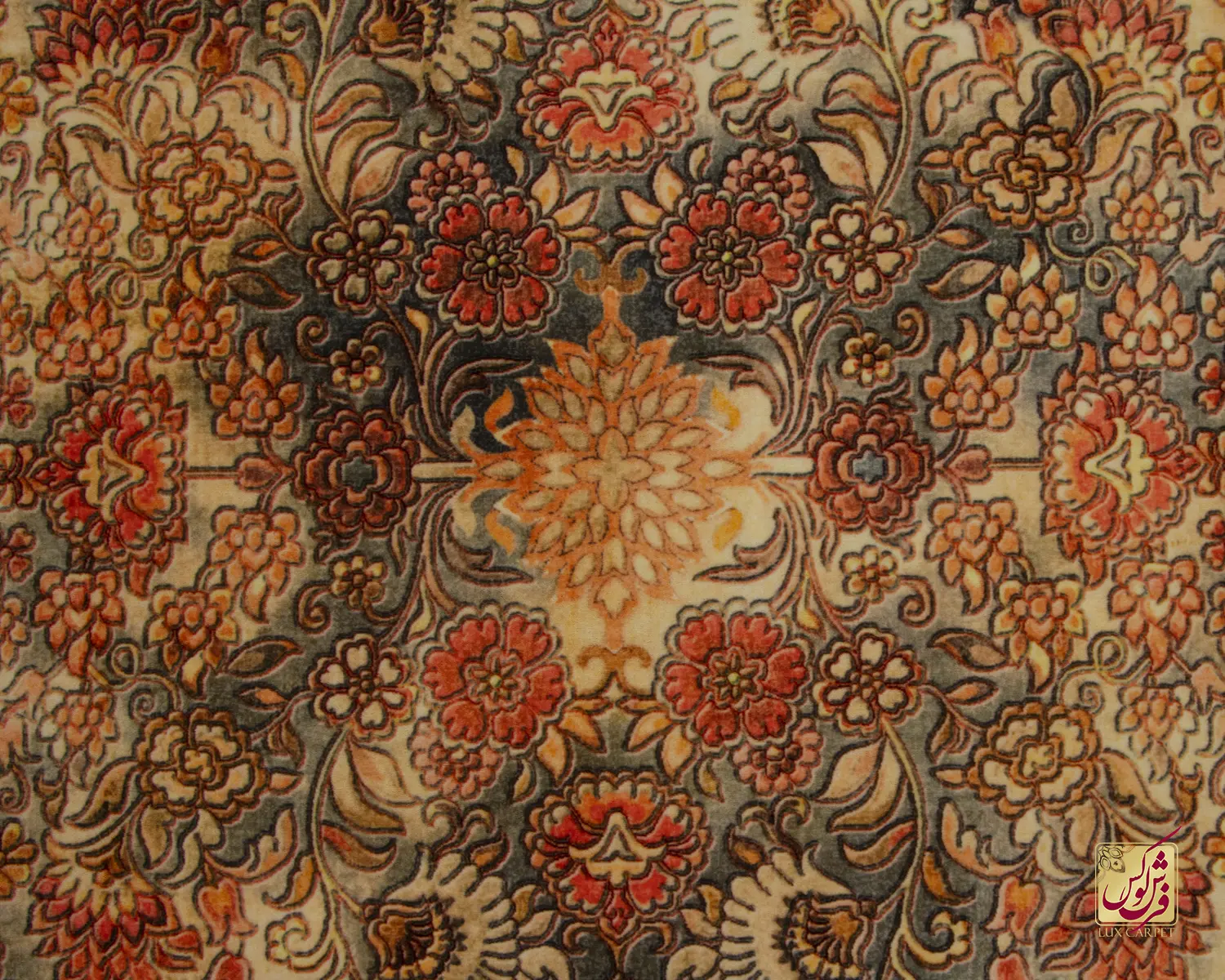 فرش ابریشم ماشینی ۲۰۲۷۸۲ آجری ذغالی