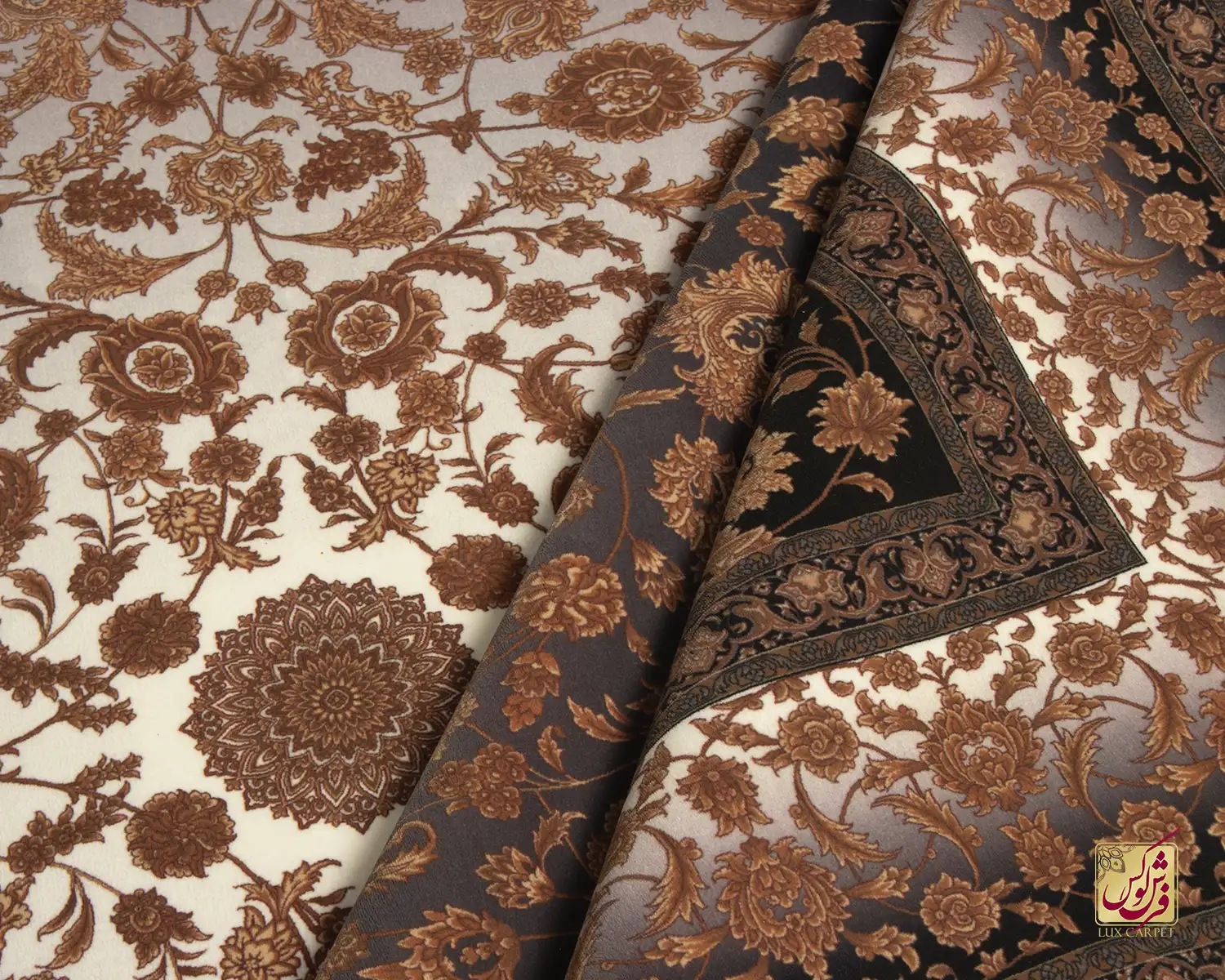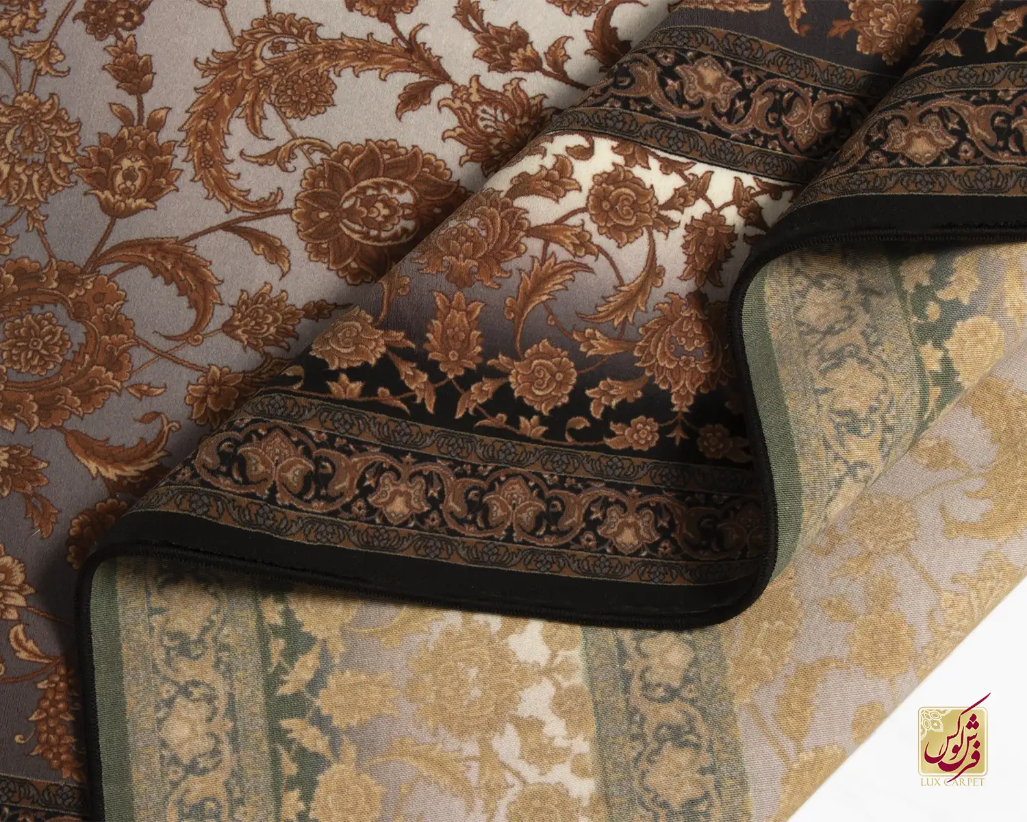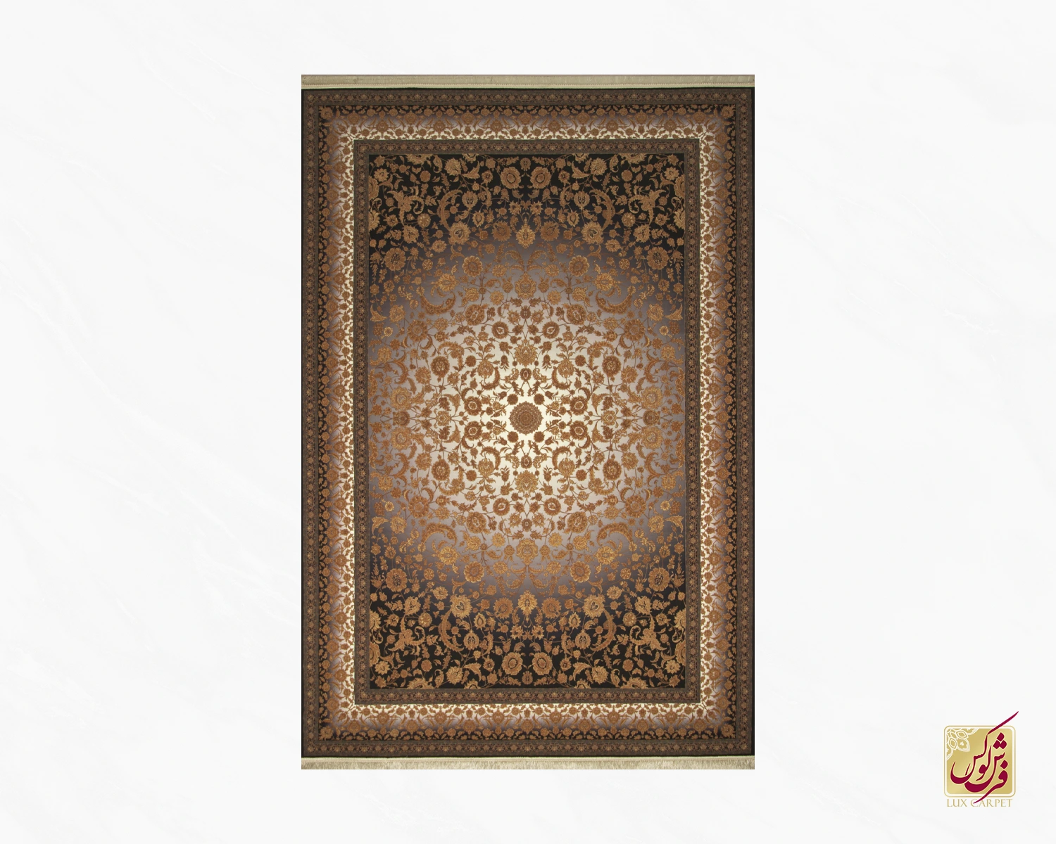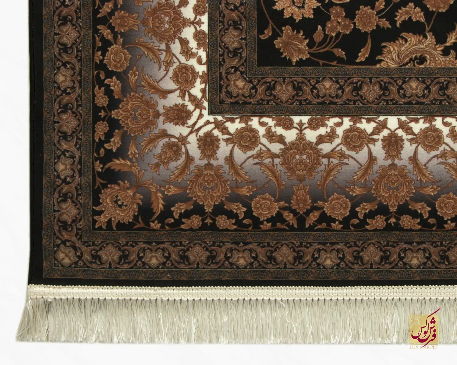 فرش ابریشم ماشینی ۷۱۰۲۰۵ ذغالی قهوهای