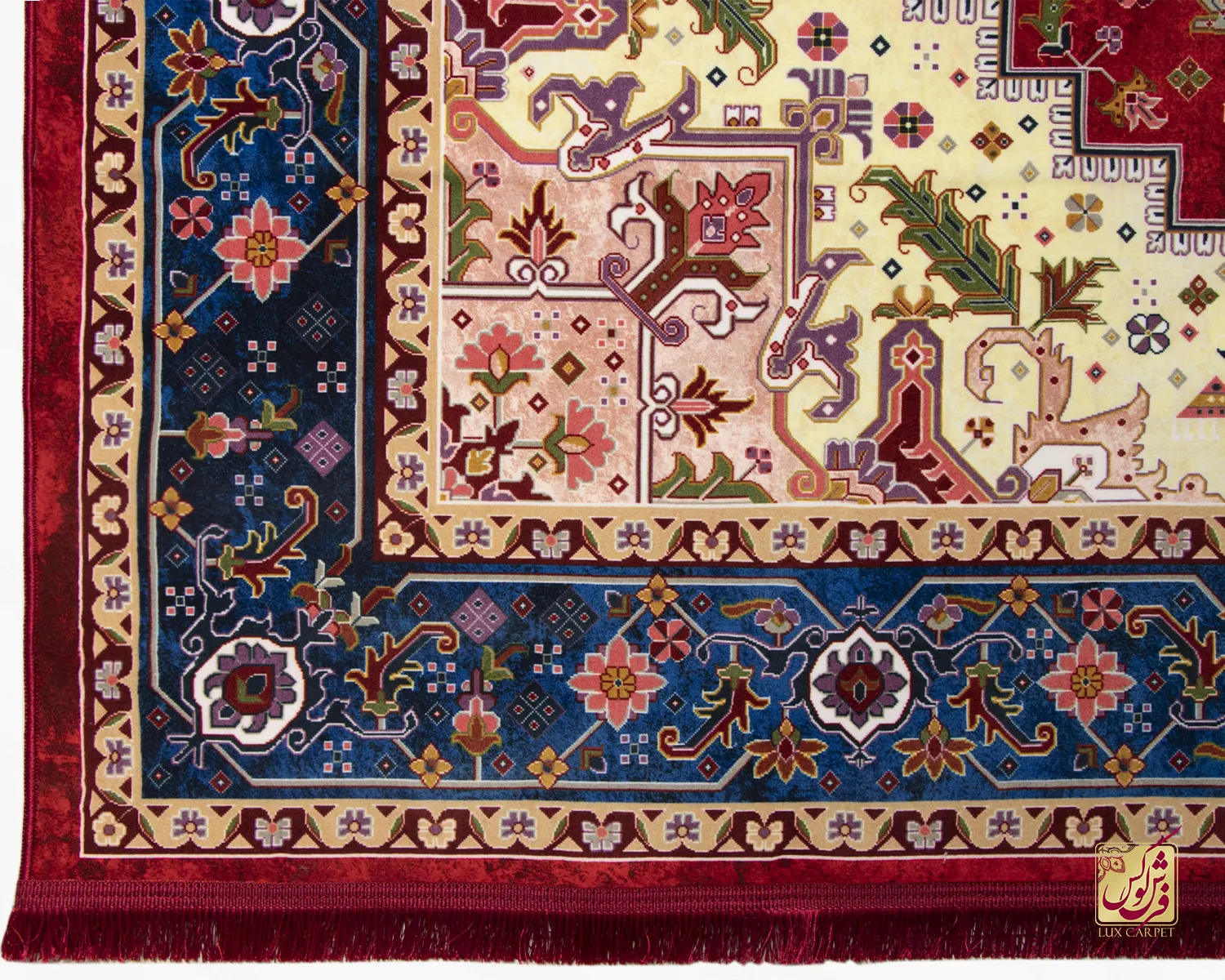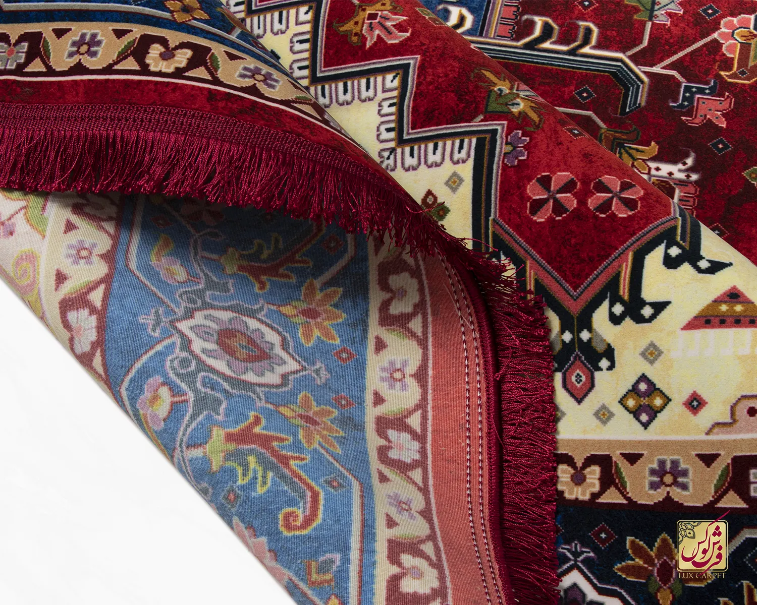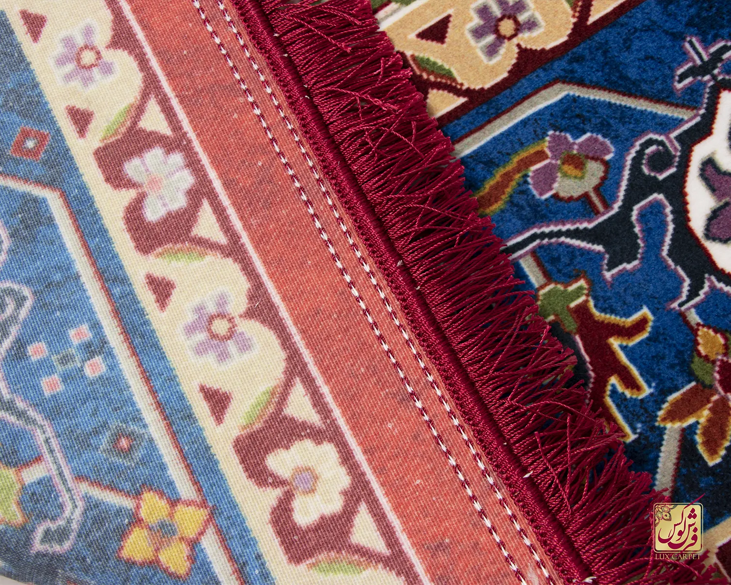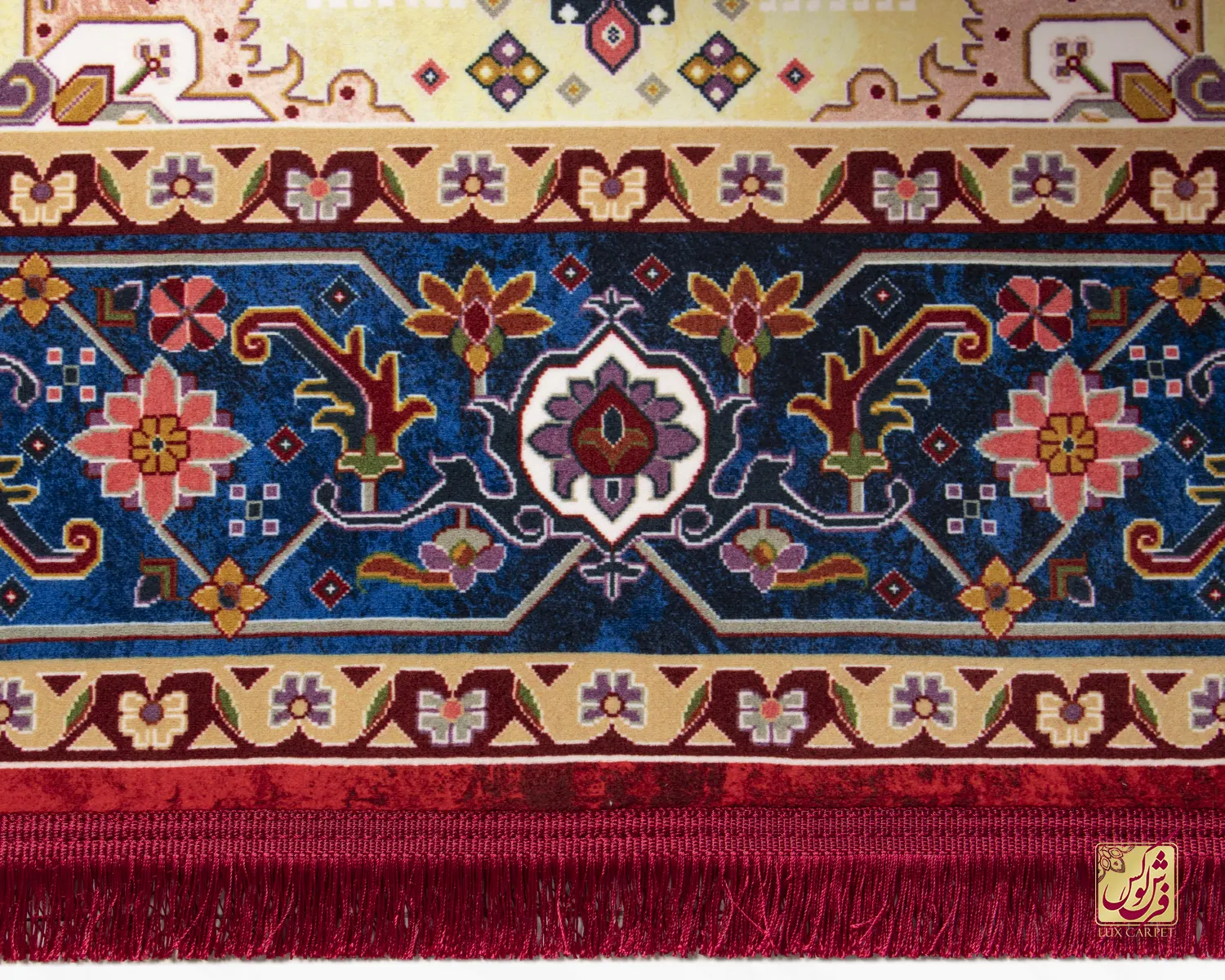 فرش ابریشم ماشینی T1089 لاکی حاشیه آبی