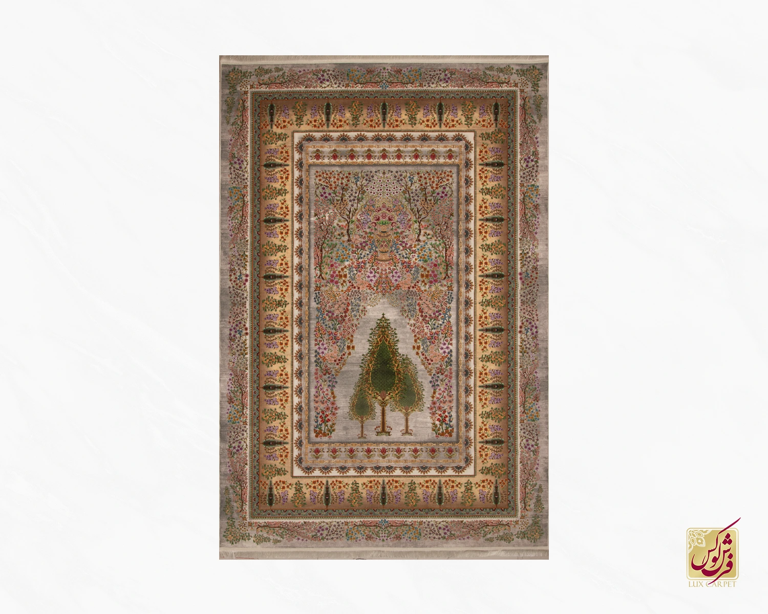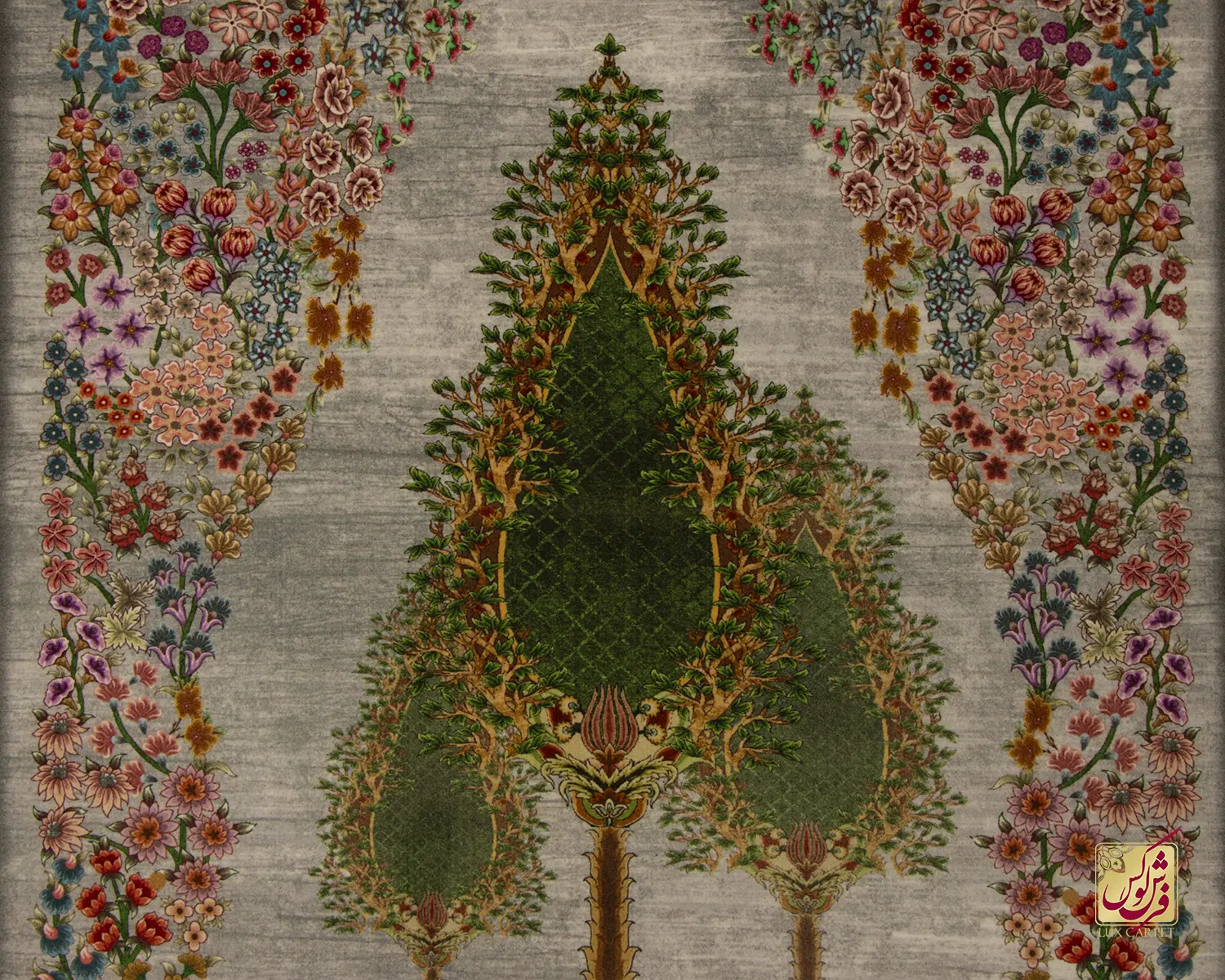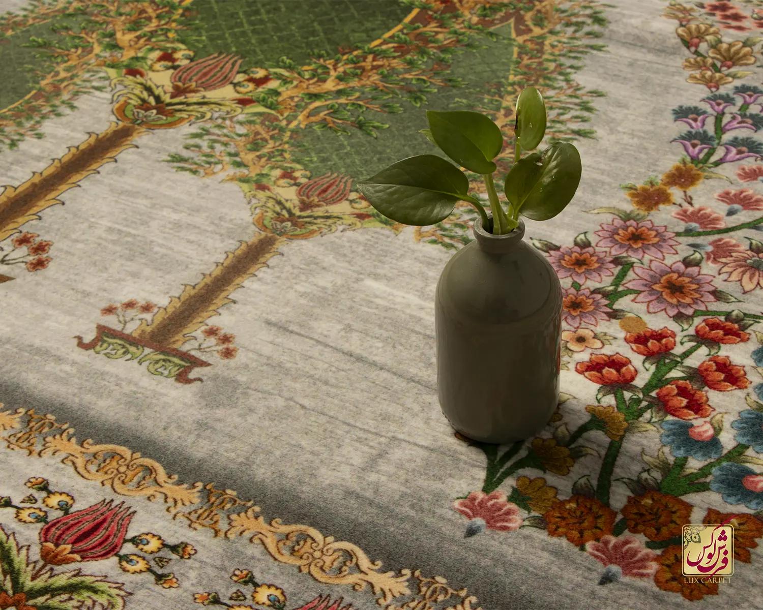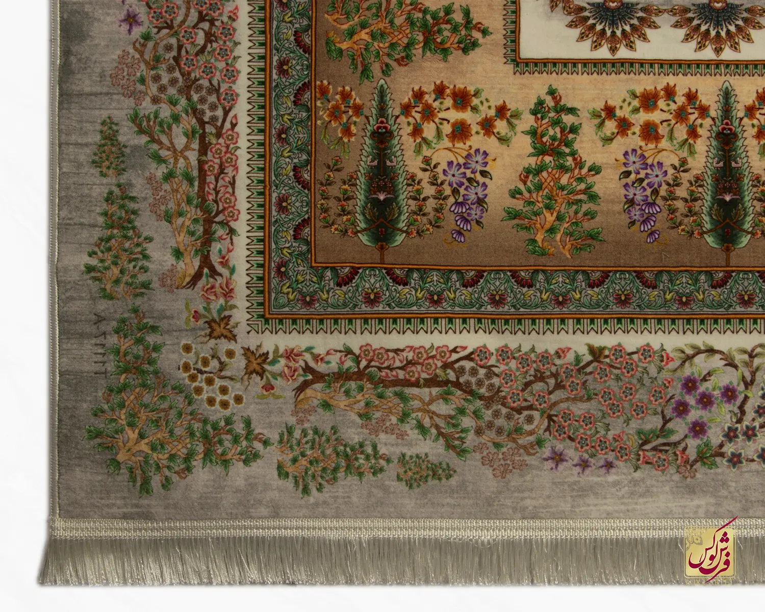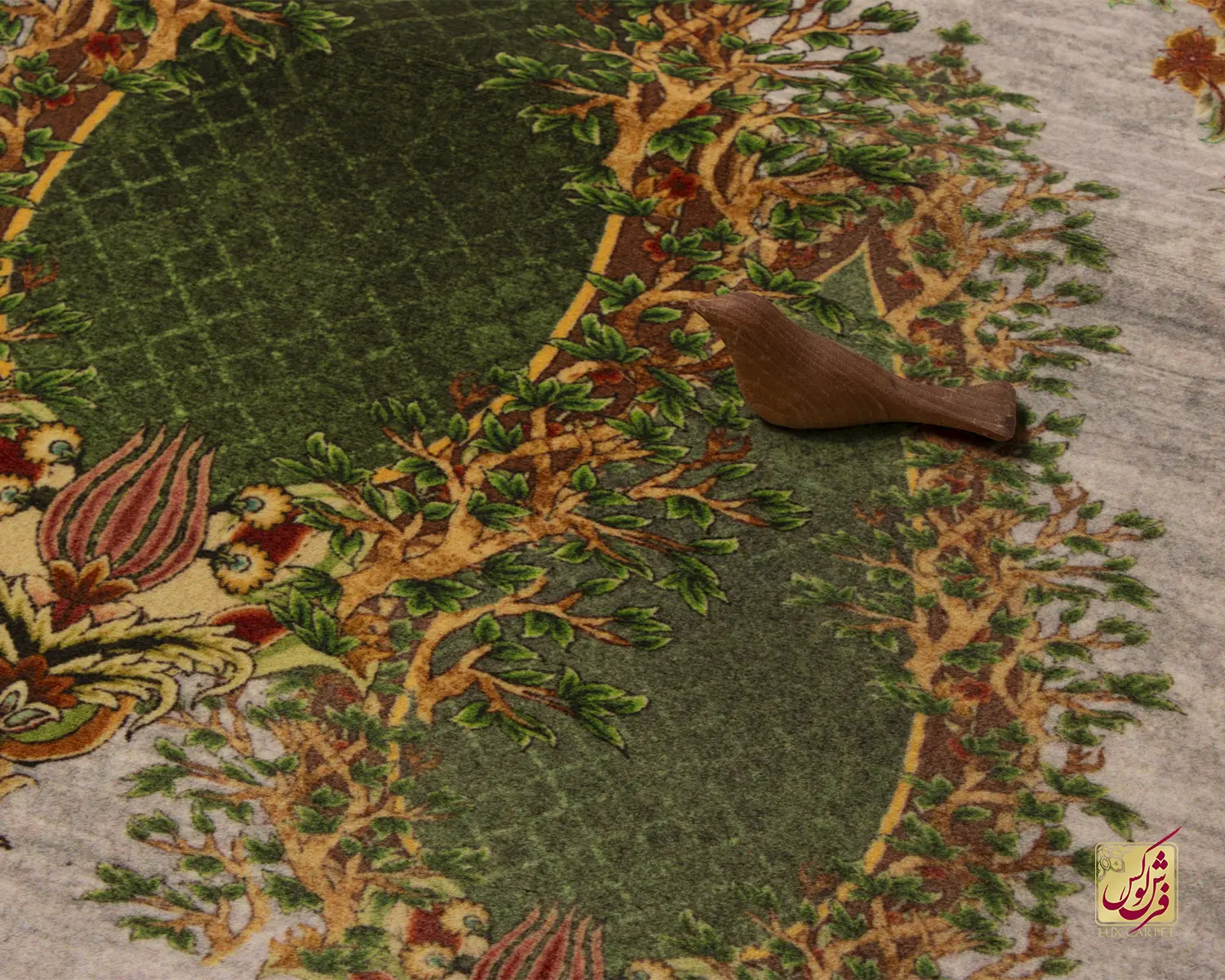 فرش ابریشم ماشینی T1117 فیلی سبز