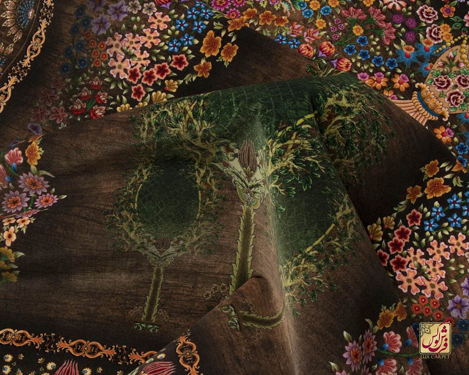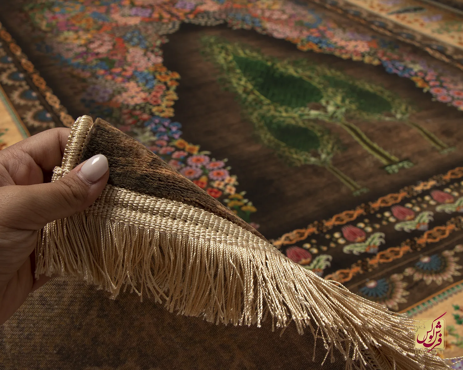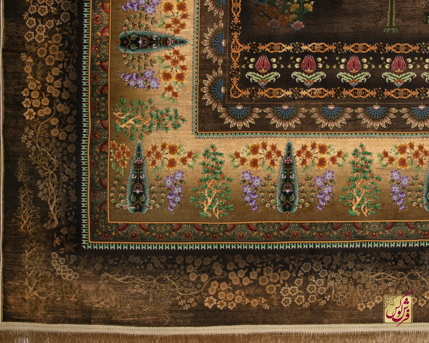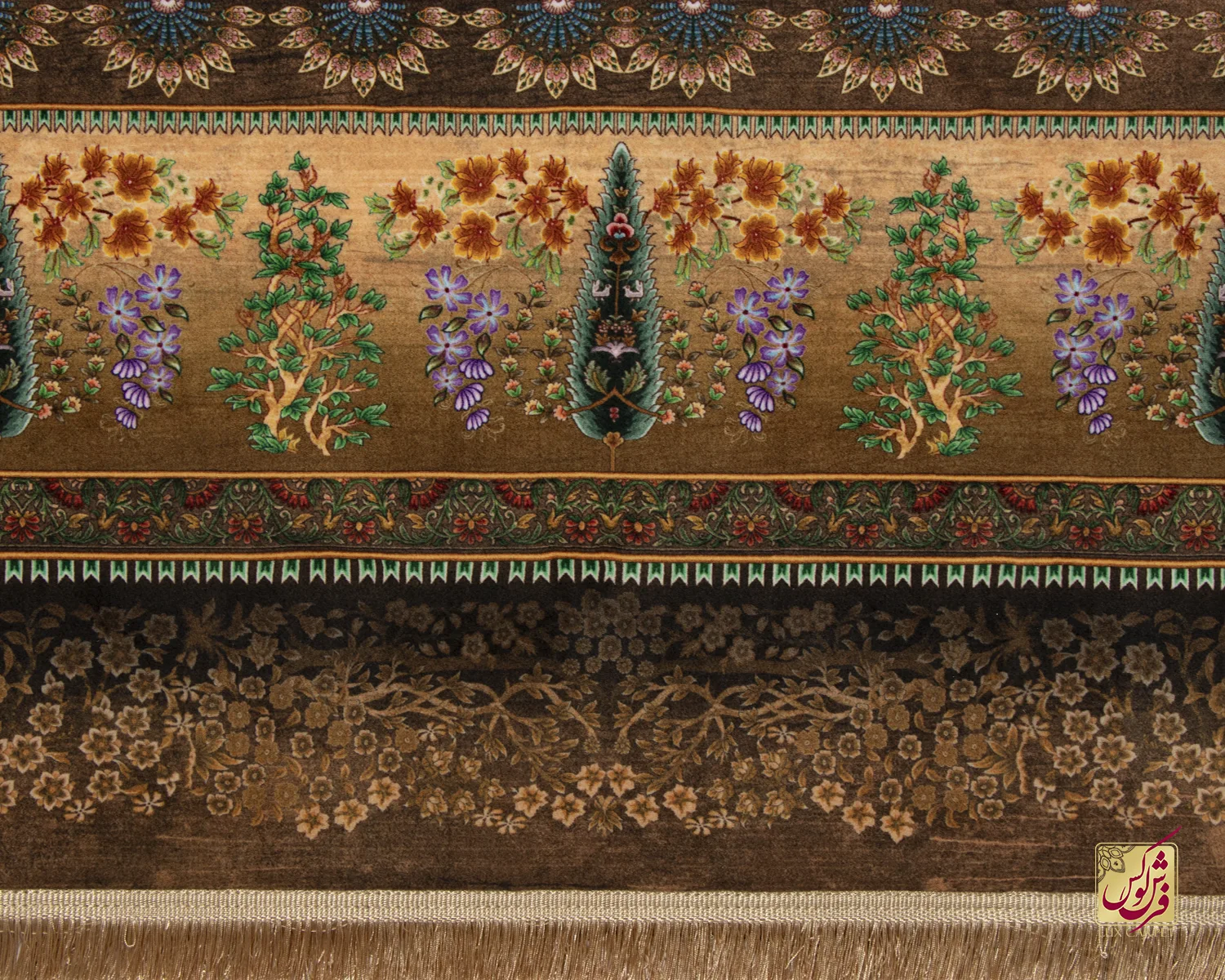 فرش ابریشم ماشینی T1120 قهوهای نسکافهای