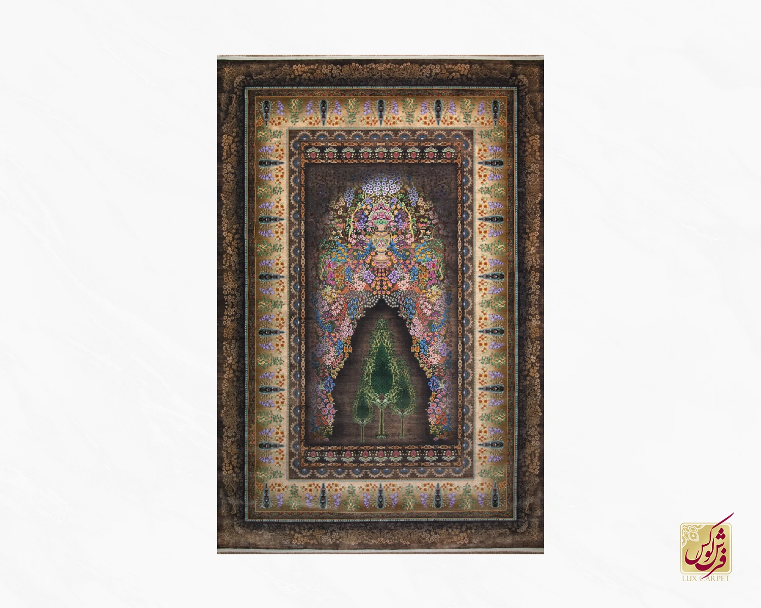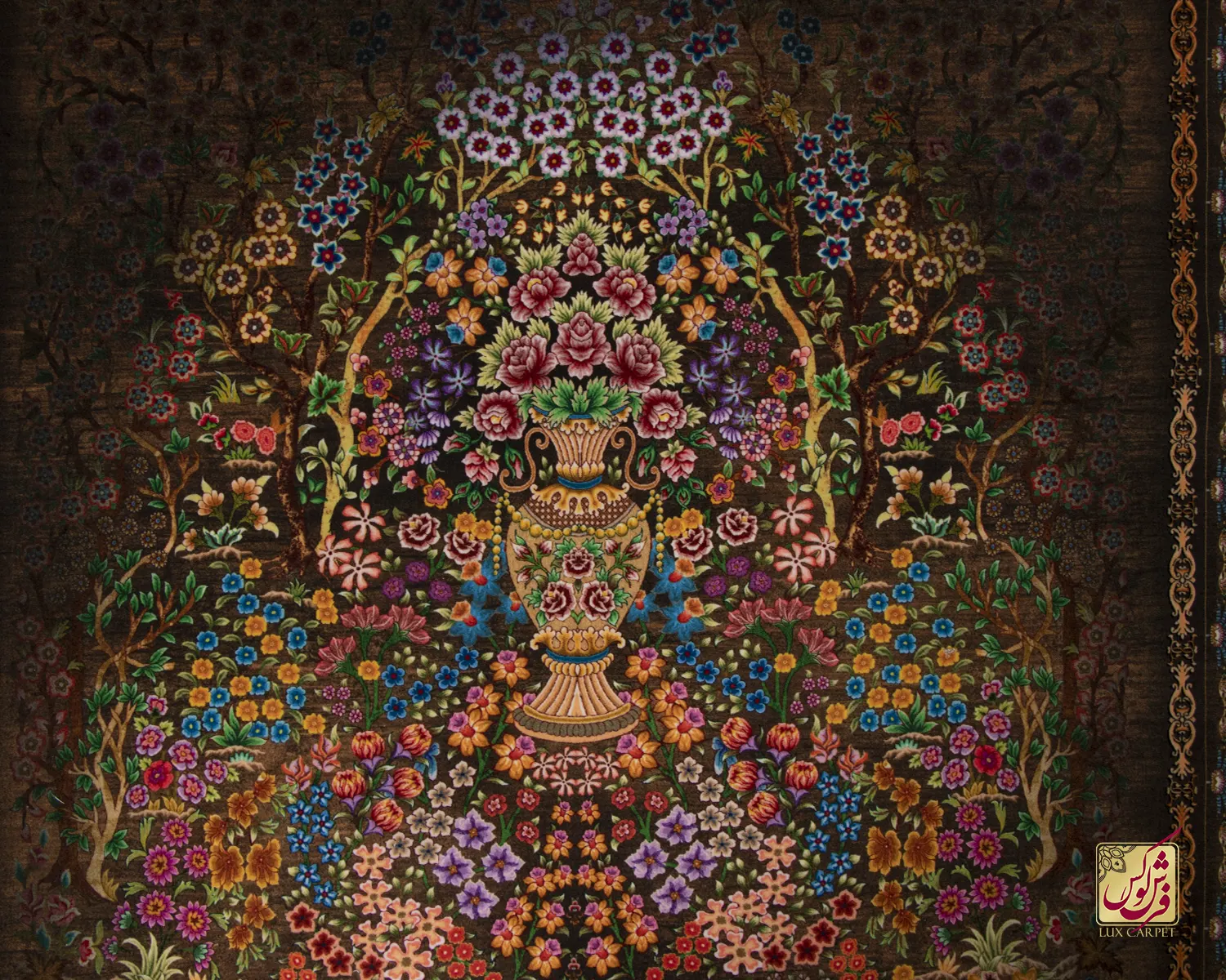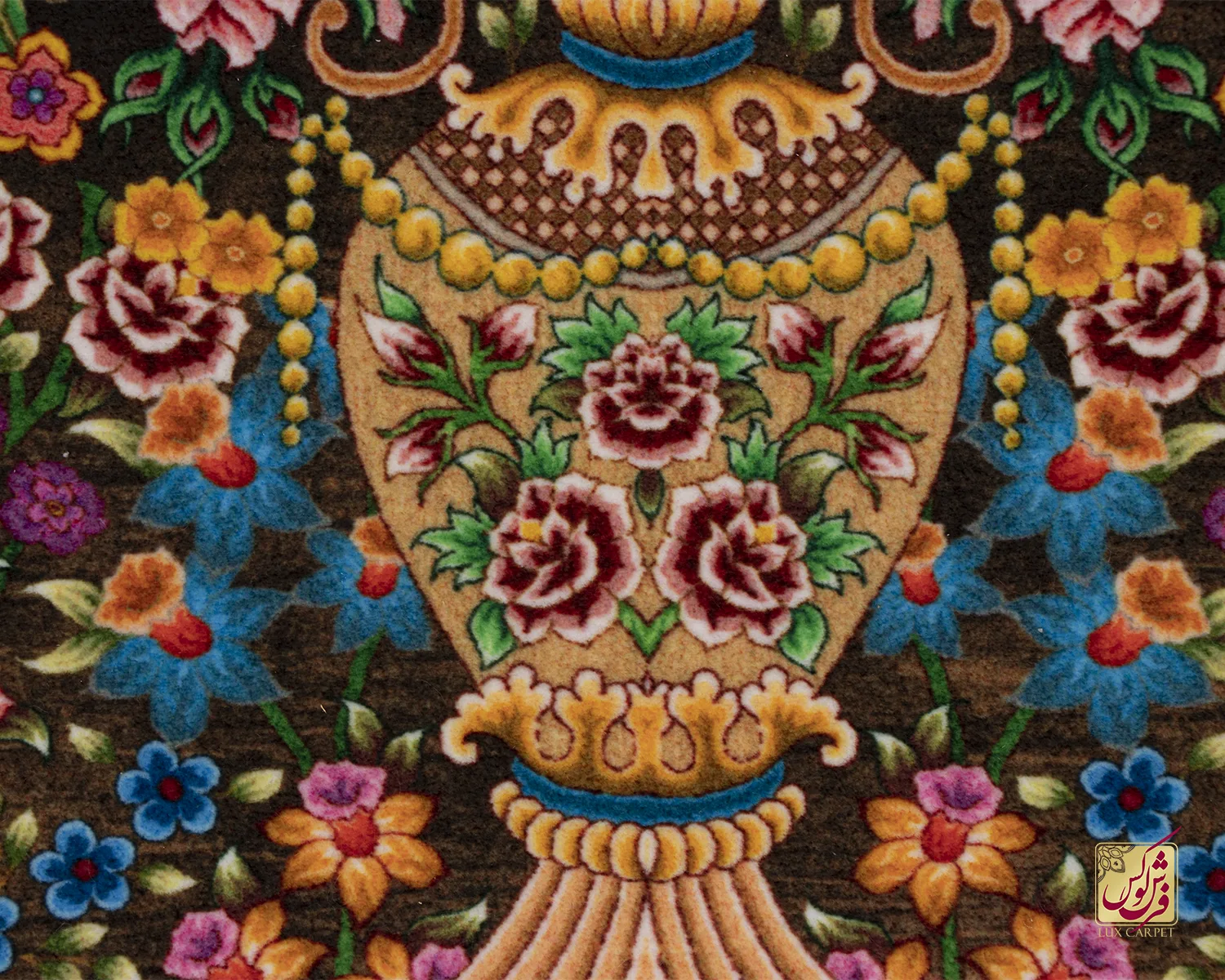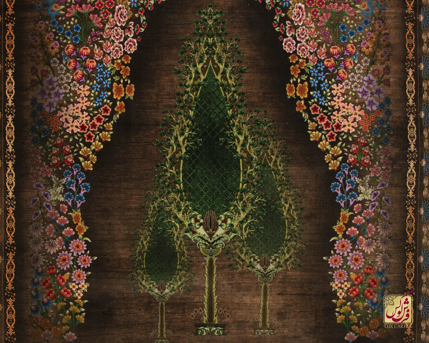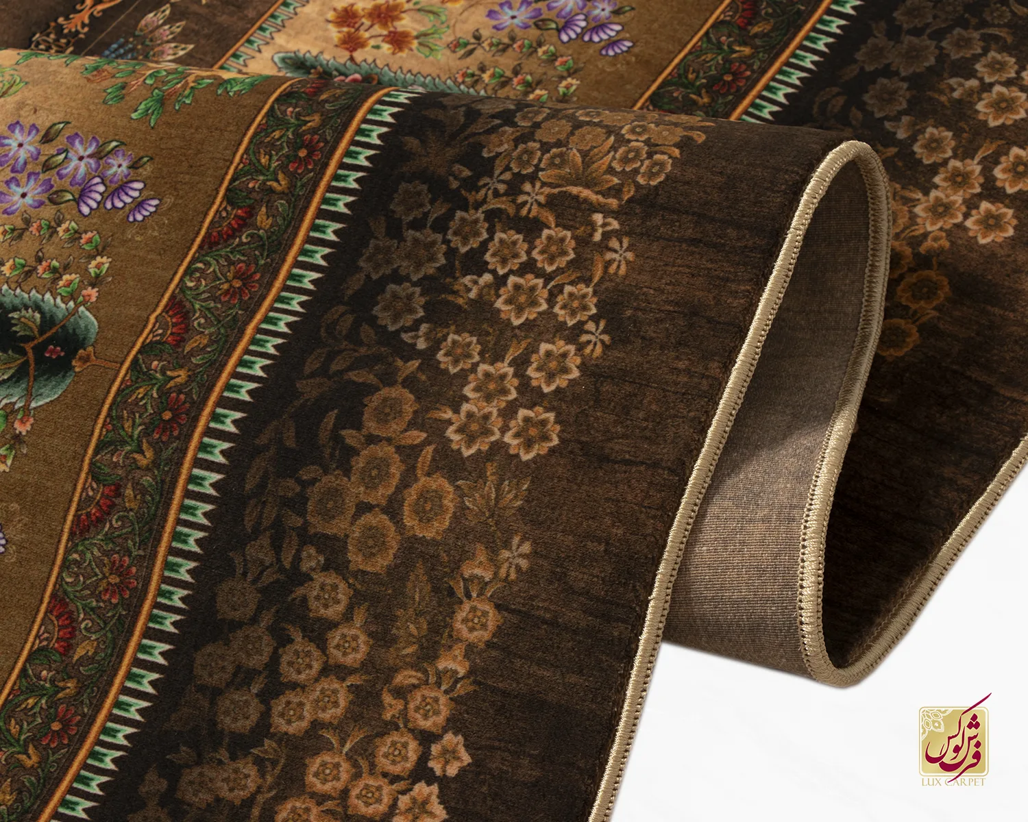 فرش ابریشم ماشینی T1120 قهوهای نسکافهای