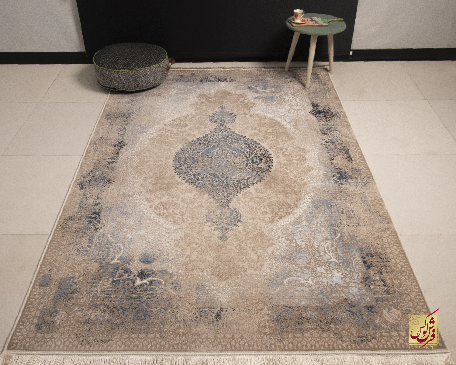 فرش وینتیج ۹۲۱۶ کرم نسکافهای آبی