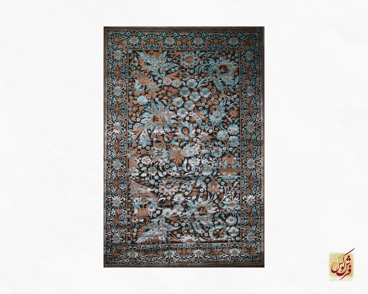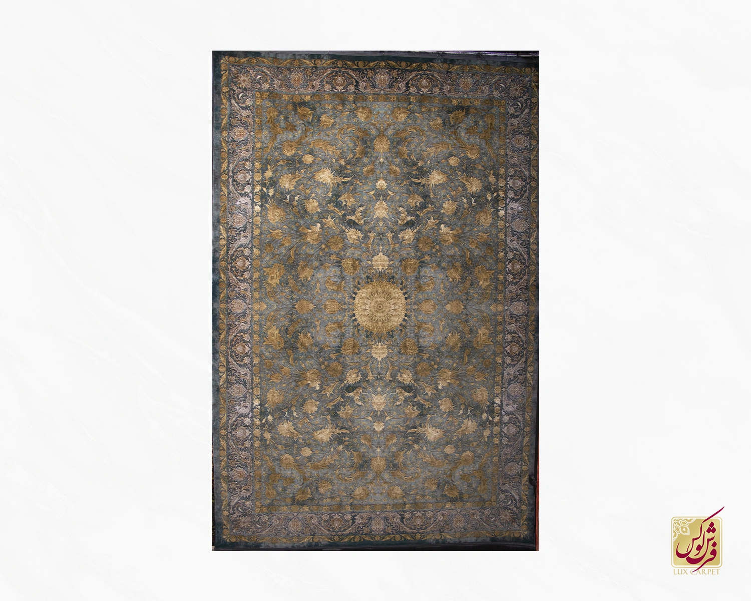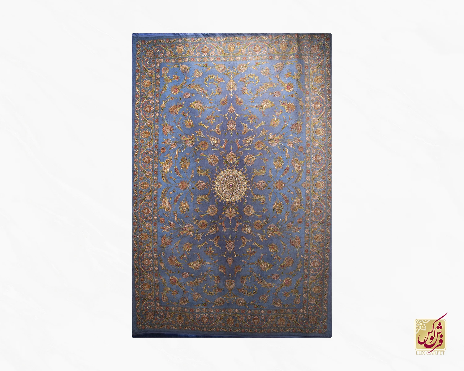 فرش ابریشم ماشینی ۶۳۹ آبی گلبهی