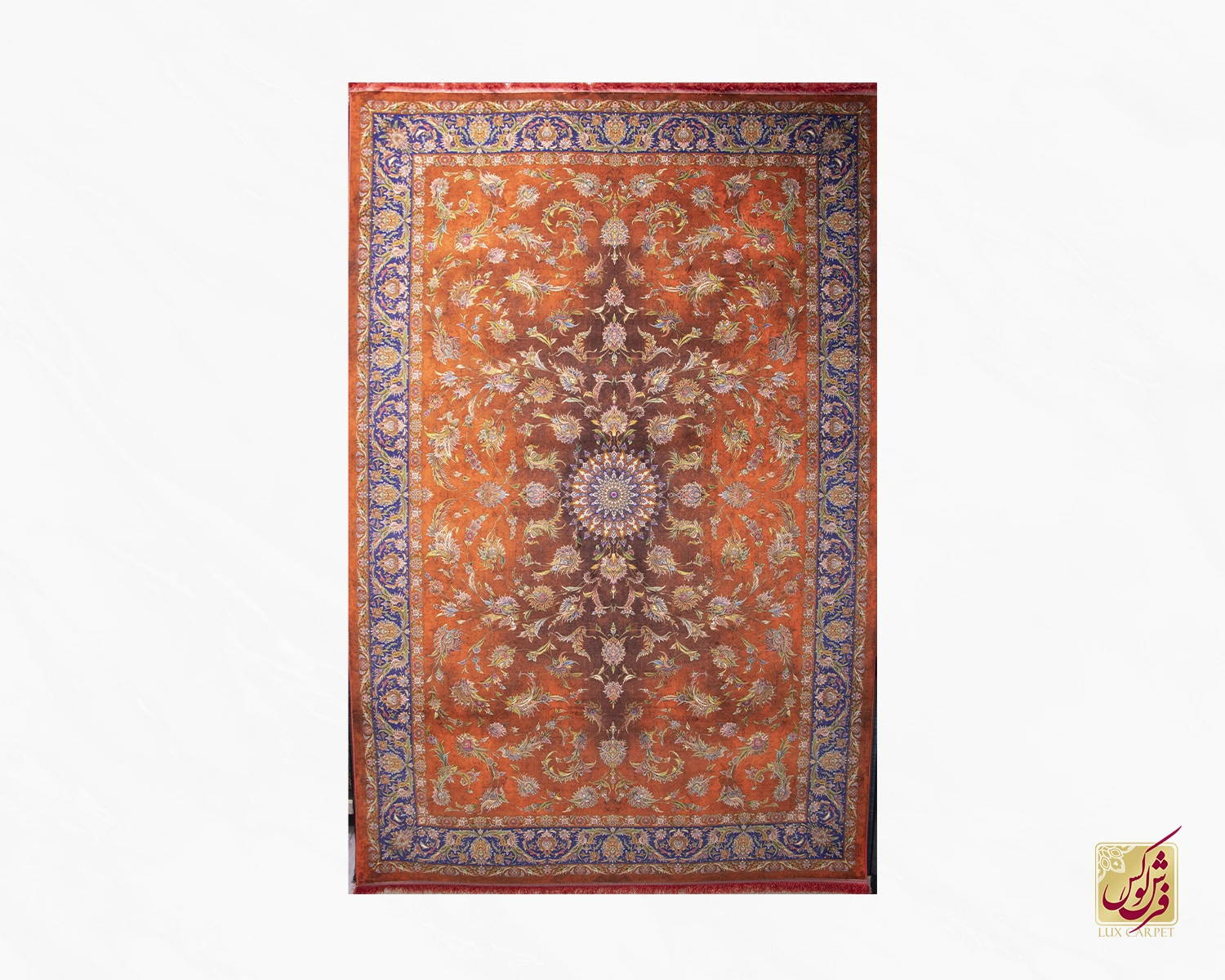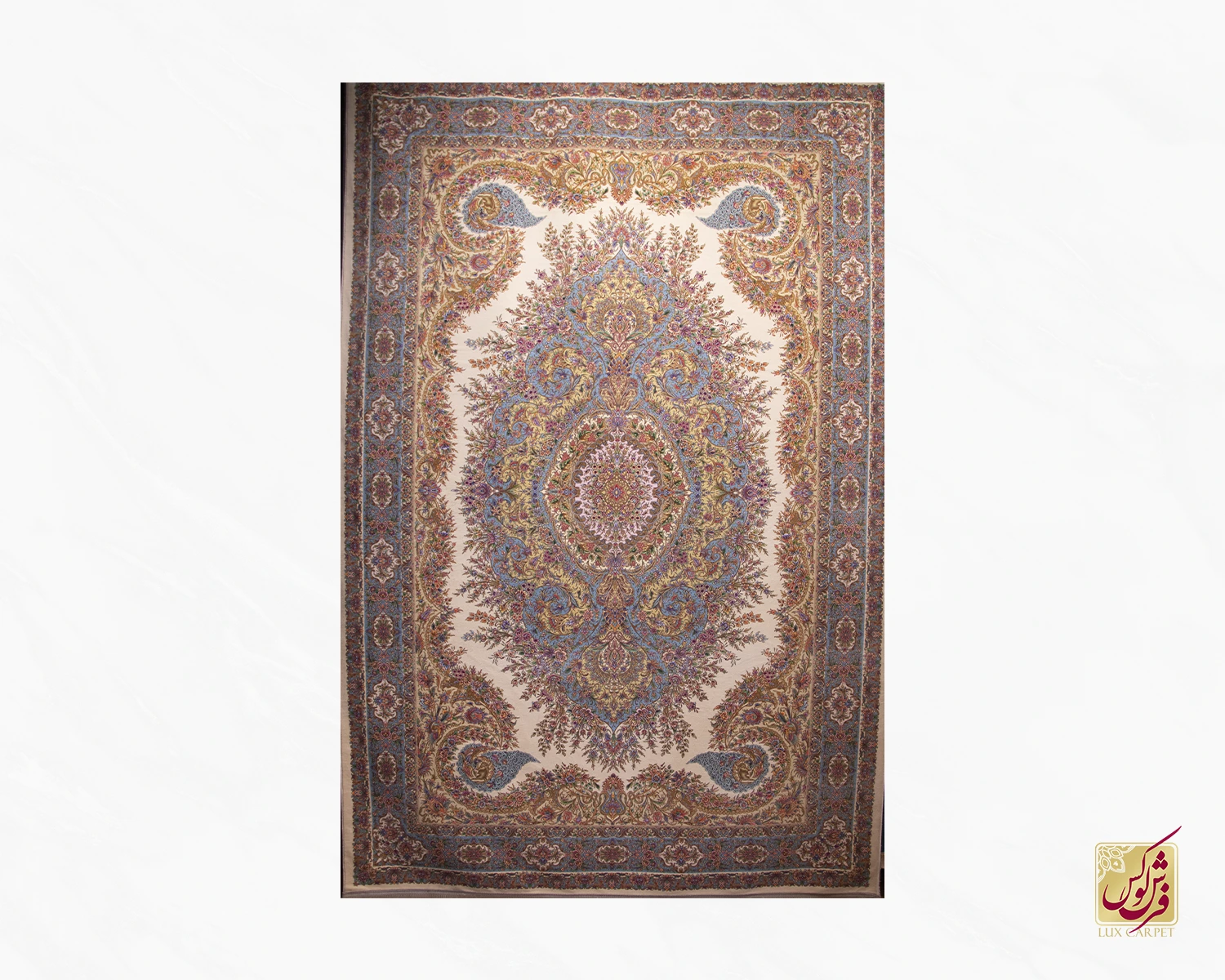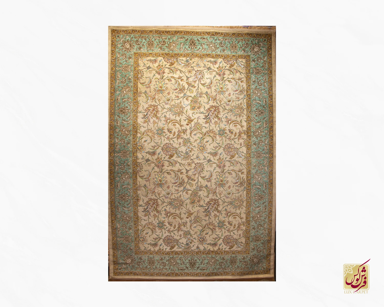 فرش ابریشم ماشینی ۶۳۹ آبی گلبهی