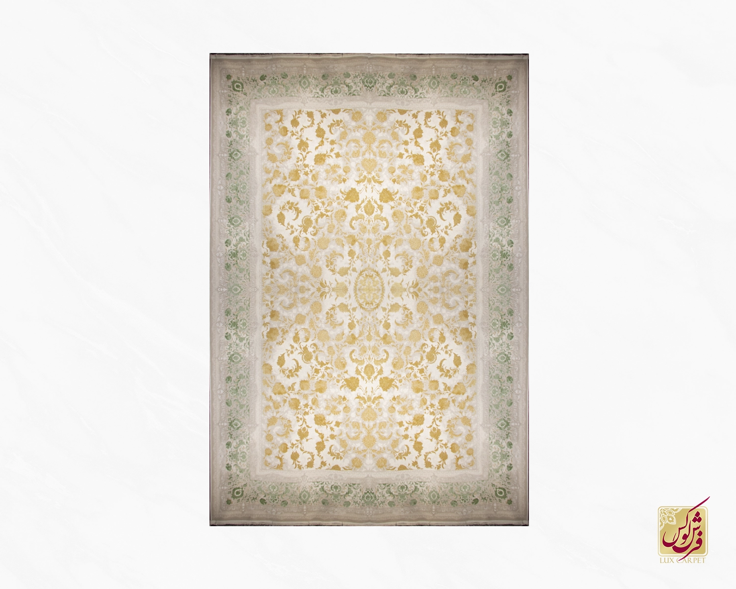 فرش وینتیج ۳۰۲۰ طلایی نسکافه‌ای حاشیه سبز