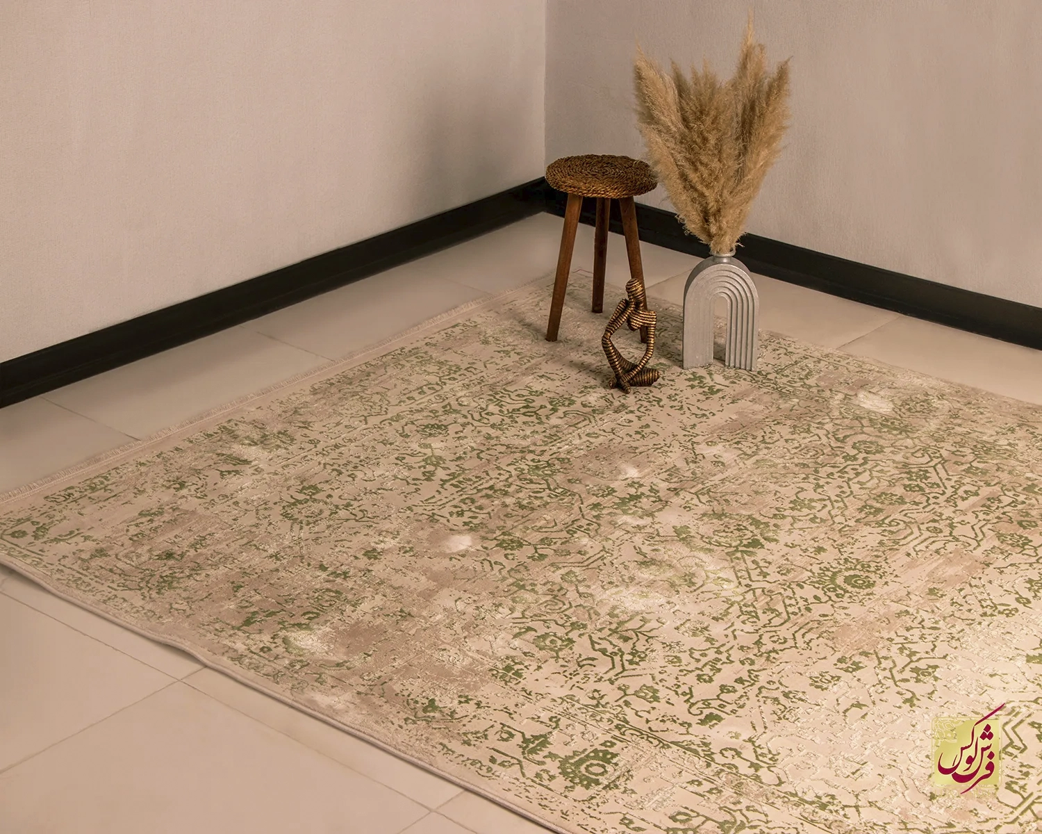 فرش وینتیج ۳۰۳۰ نسکافه‌ای سبز