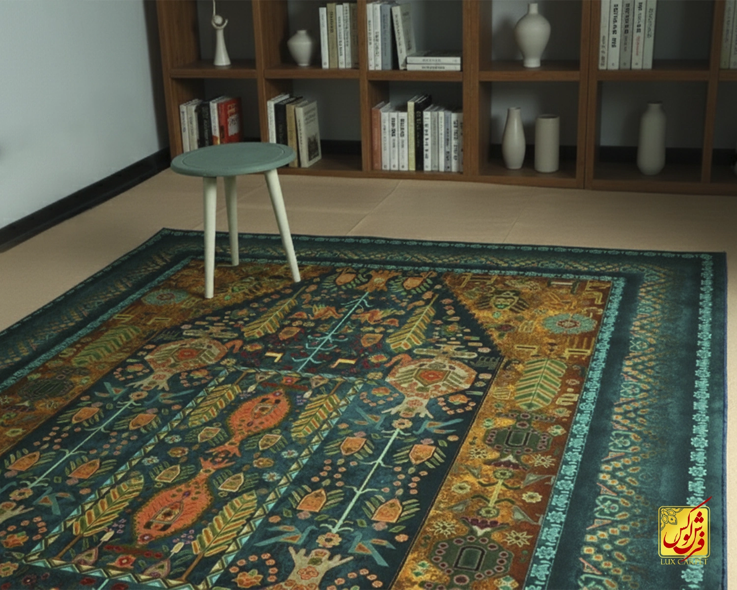 فرش ابریشم ماشینی A1023 فیروزهای سبز