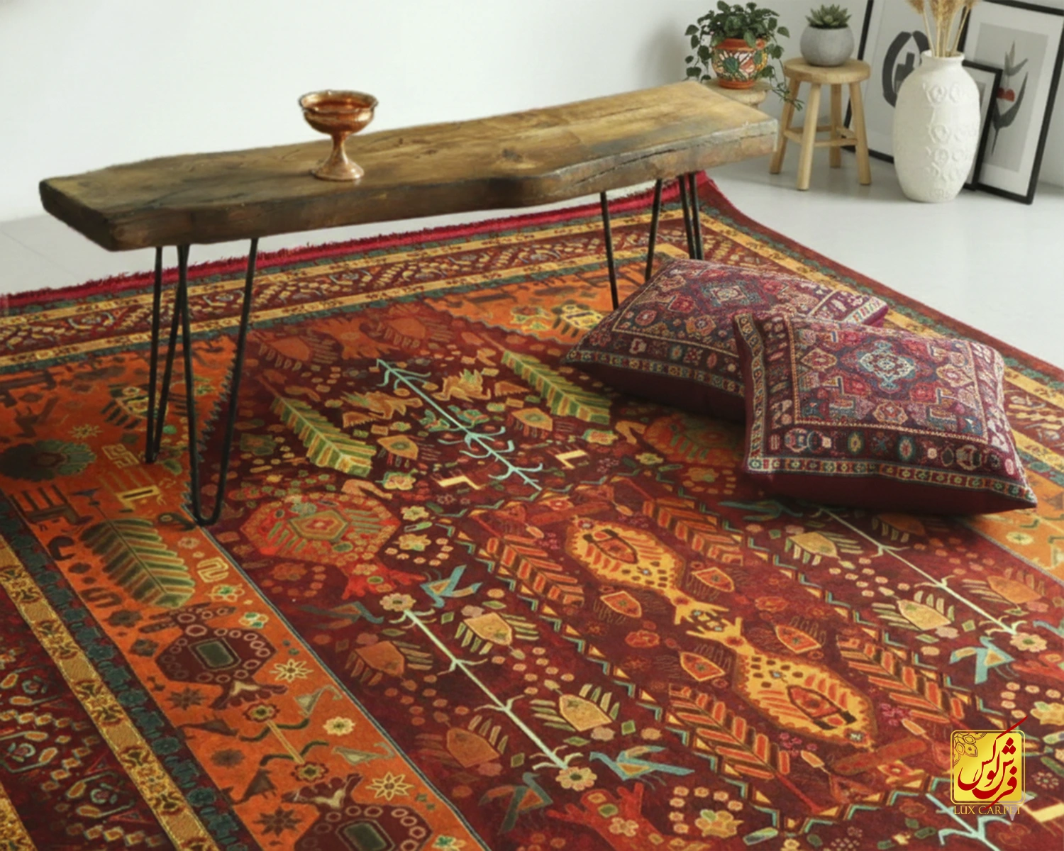 فرش ابریشم ماشینی A1016 لاکی نارنجی