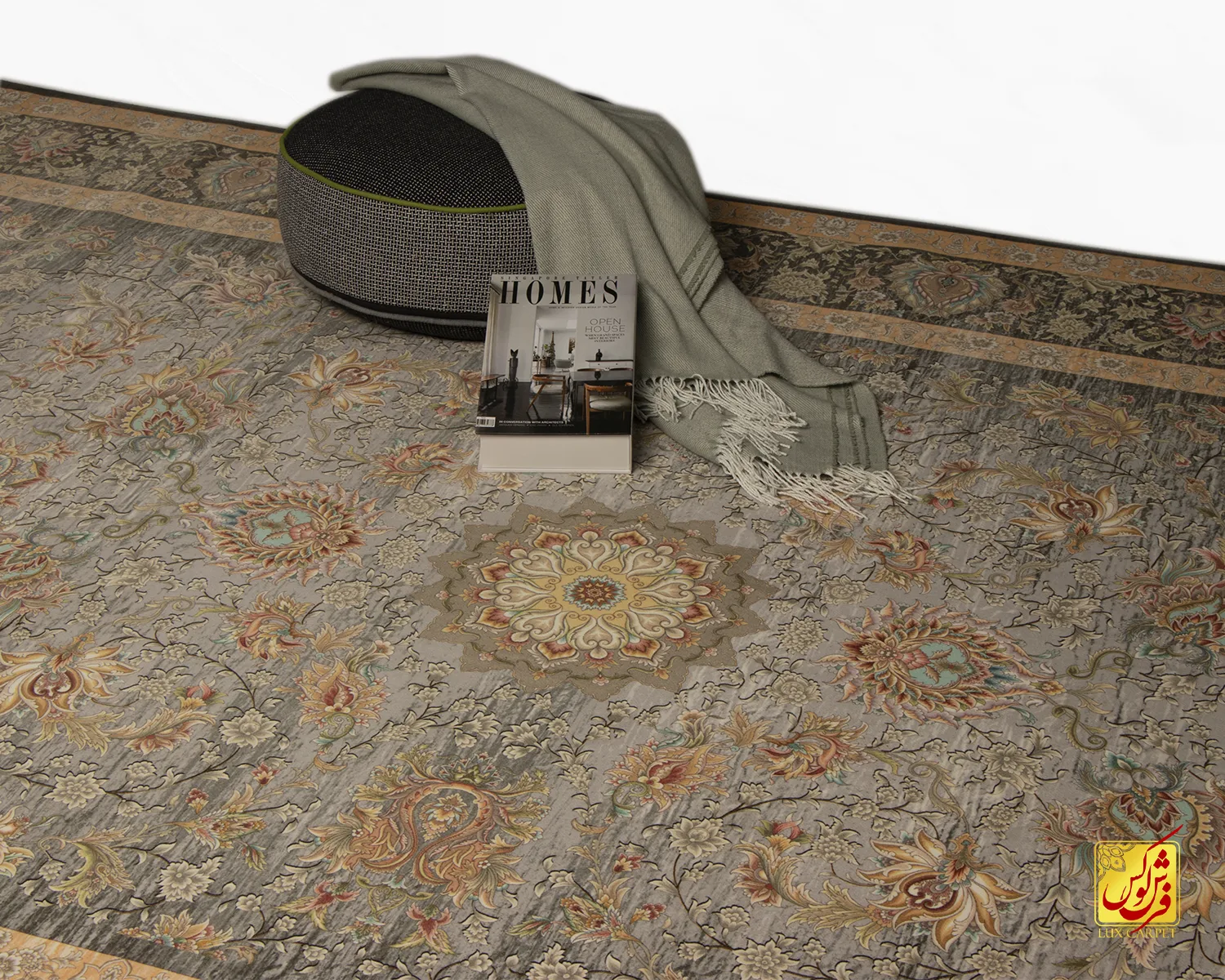 فرش ابریشم ماشینی A1017 طوسی کرم