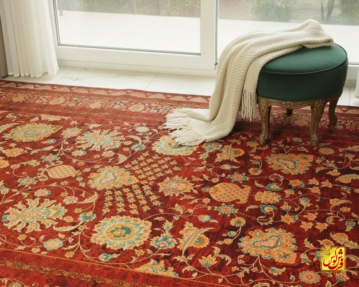 فرش ابریشم ماشینی A1012 سبز آجری