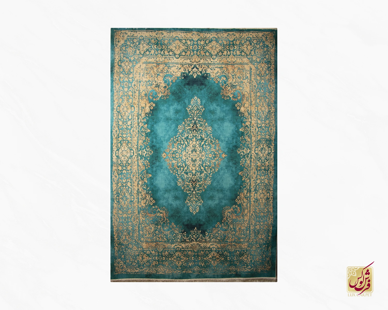 فرش ابریشم ماشینی ۷۴۳۱۰۵ فیروزهای کرم