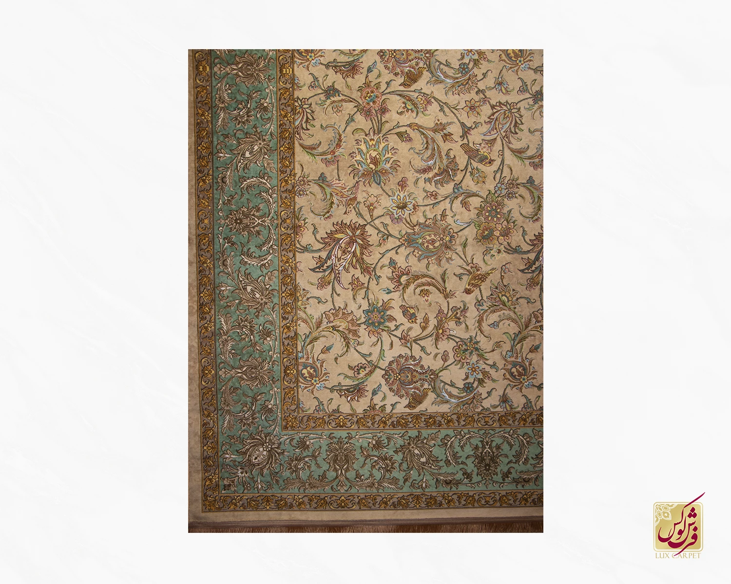 فرش لوکس۱۰۱۵۱ نسکافه ای حاشیه فیروزه ای