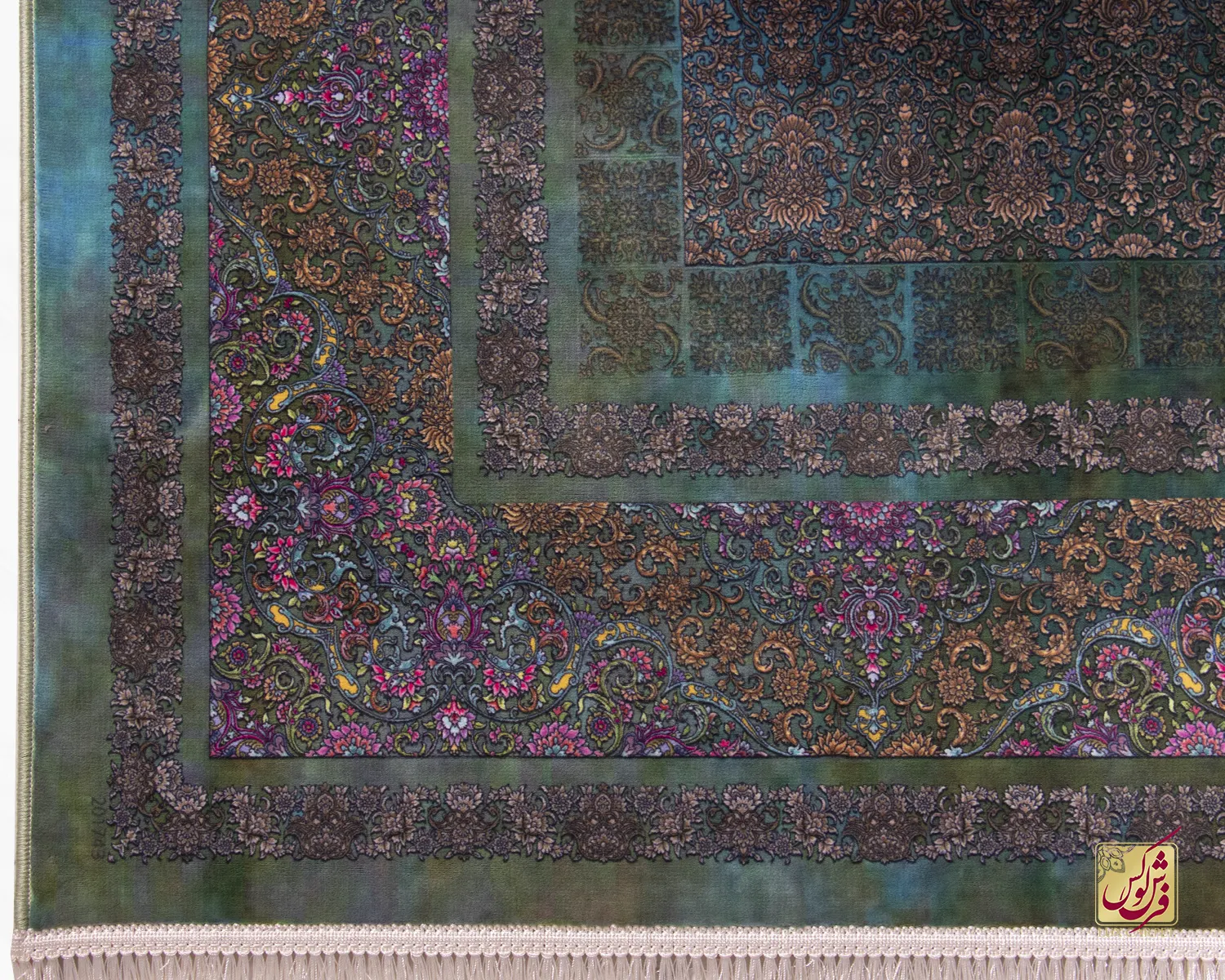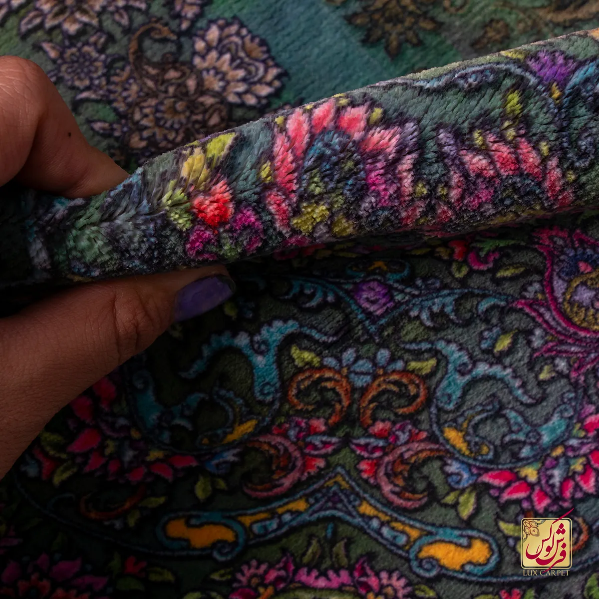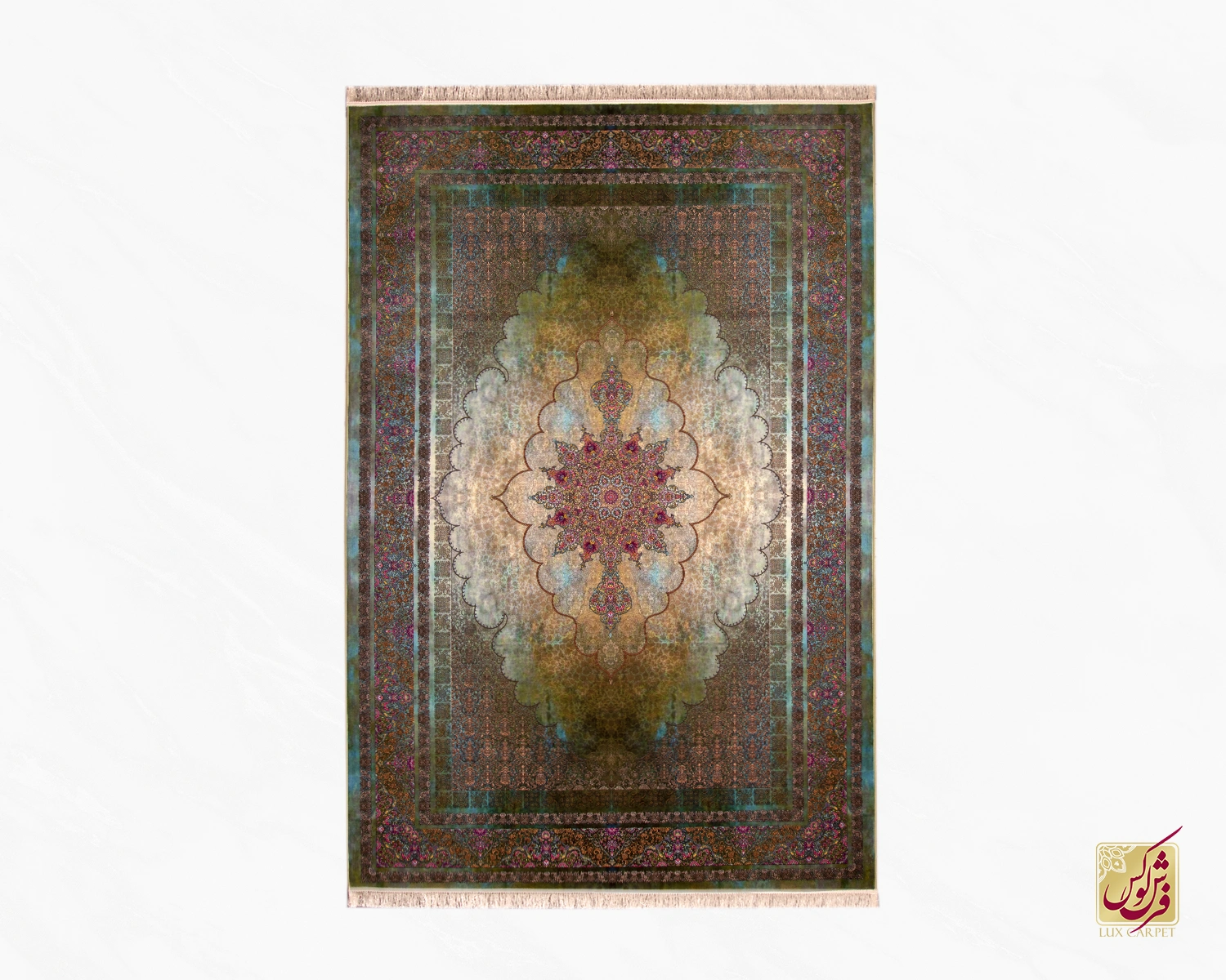 فرش ابریشم ماشینی ۲۰۱۷۴۳ فیروزه ای سبز کهکشانی