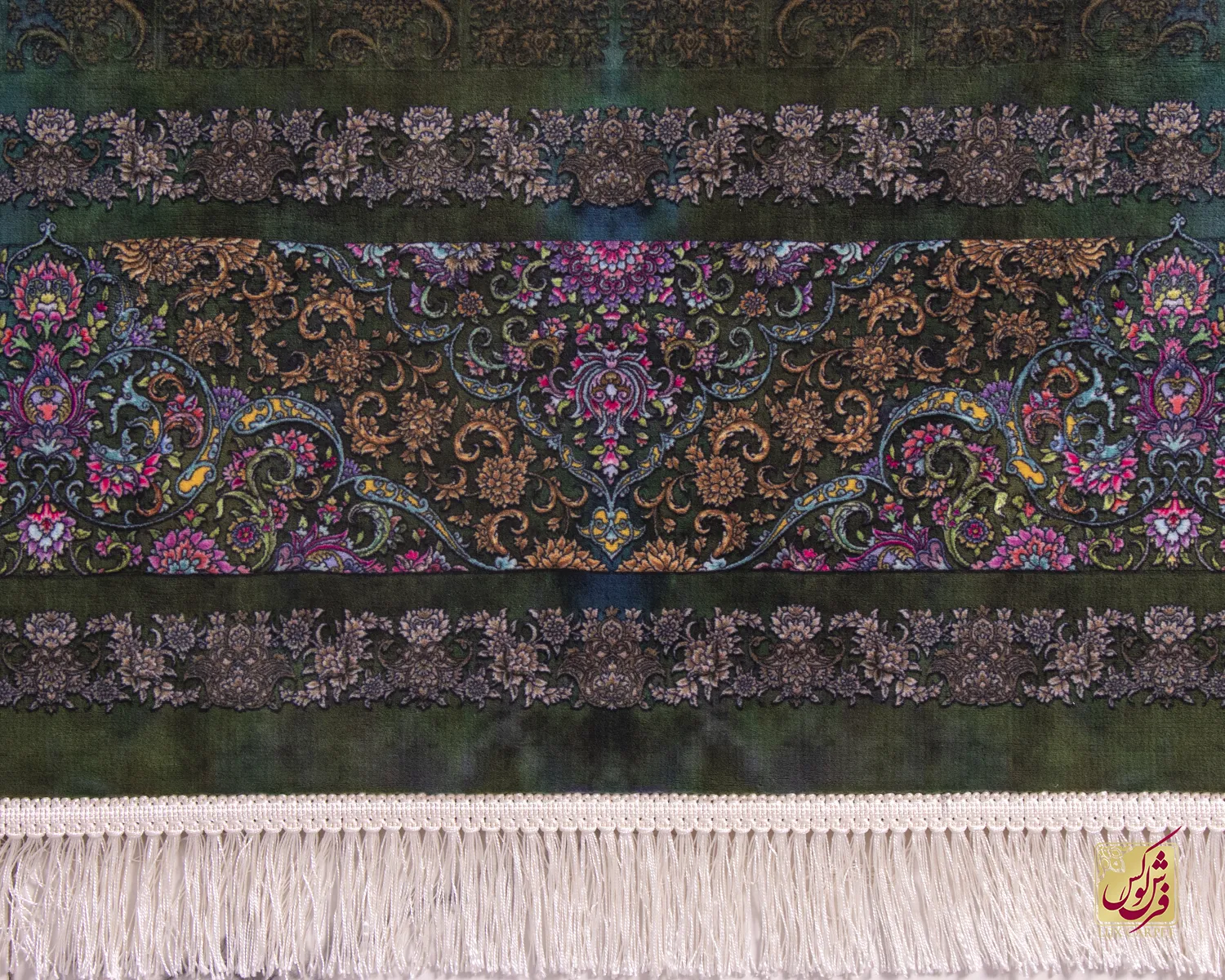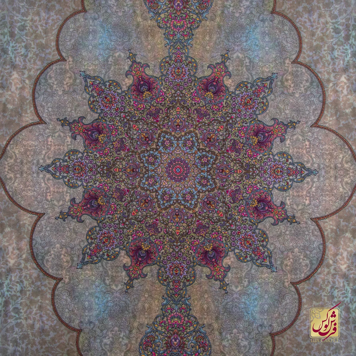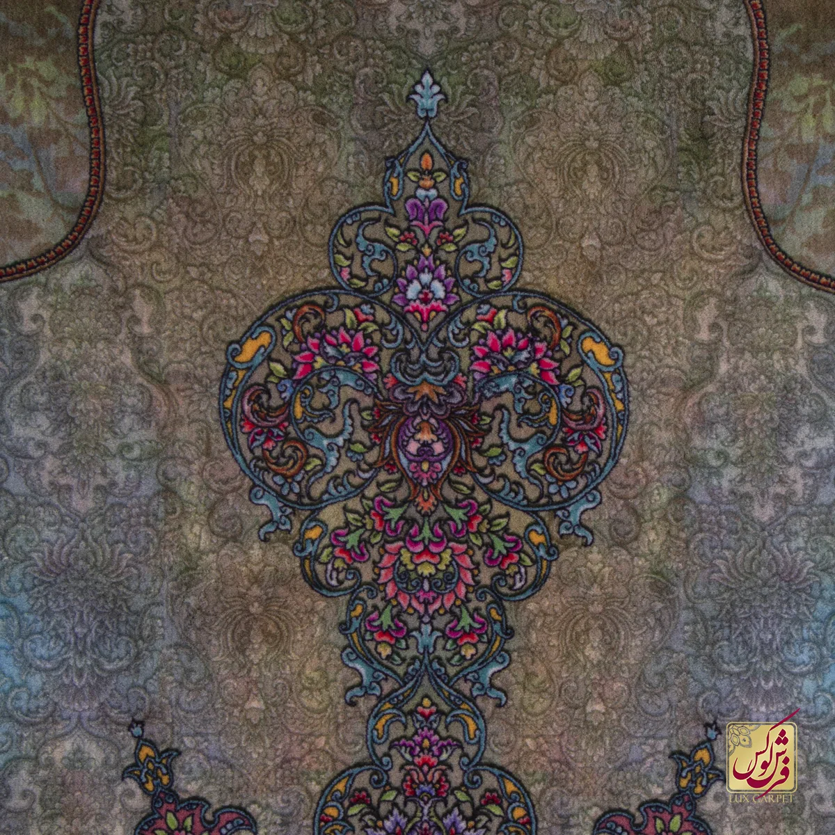 فرش ابریشم ماشینی ۲۰۱۷۴۳ فیروزه ای سبز کهکشانی