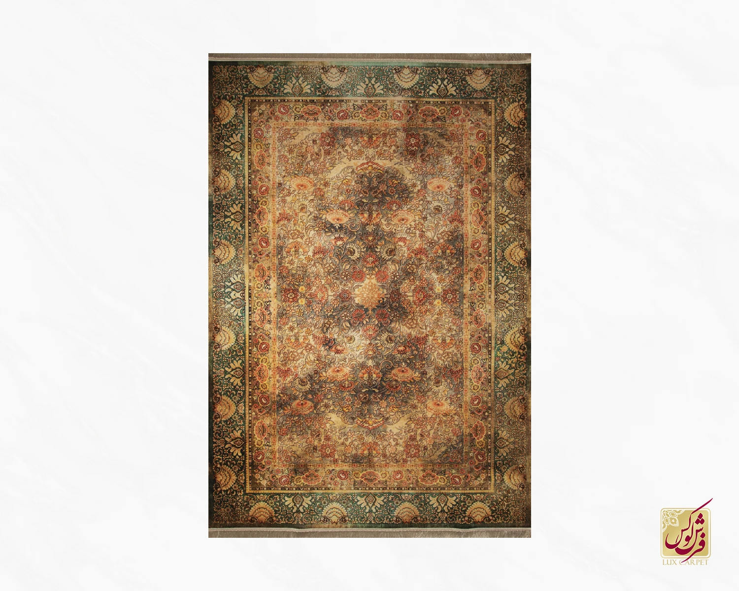 فرش ابریشم ماشینی ۲۰۲۷۸۰ سبز آجری