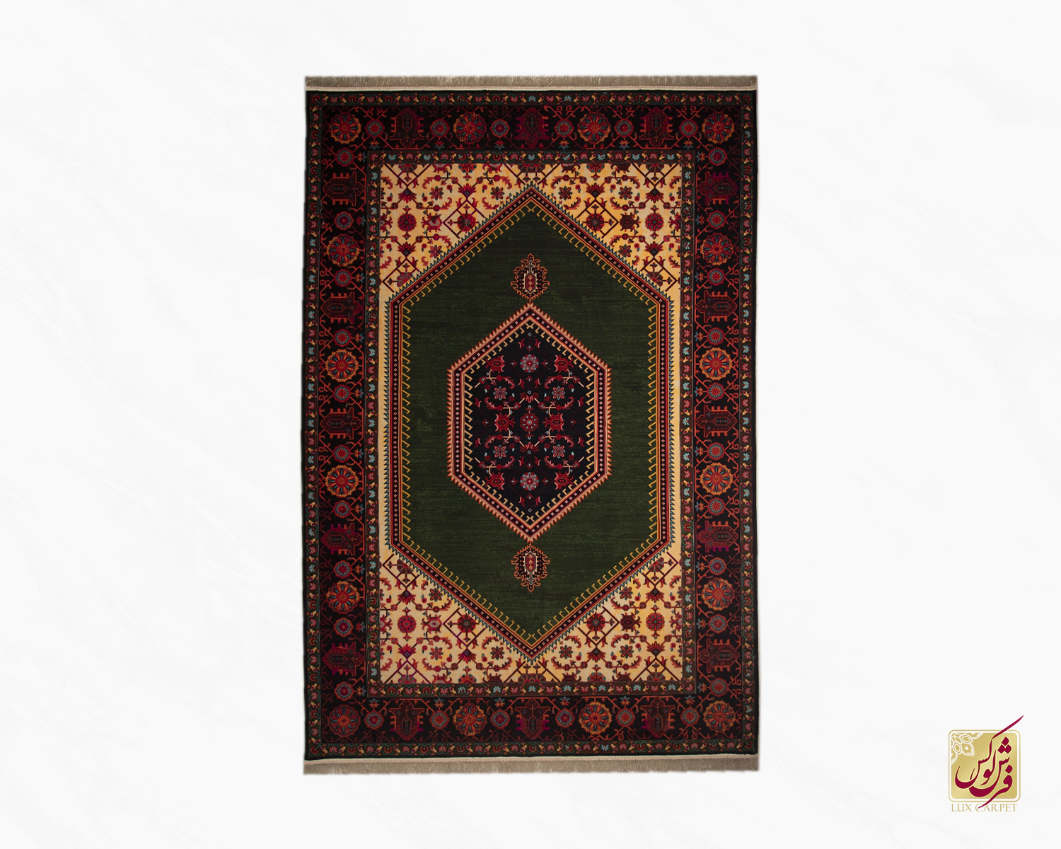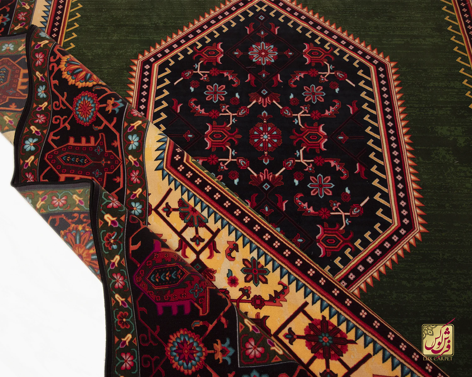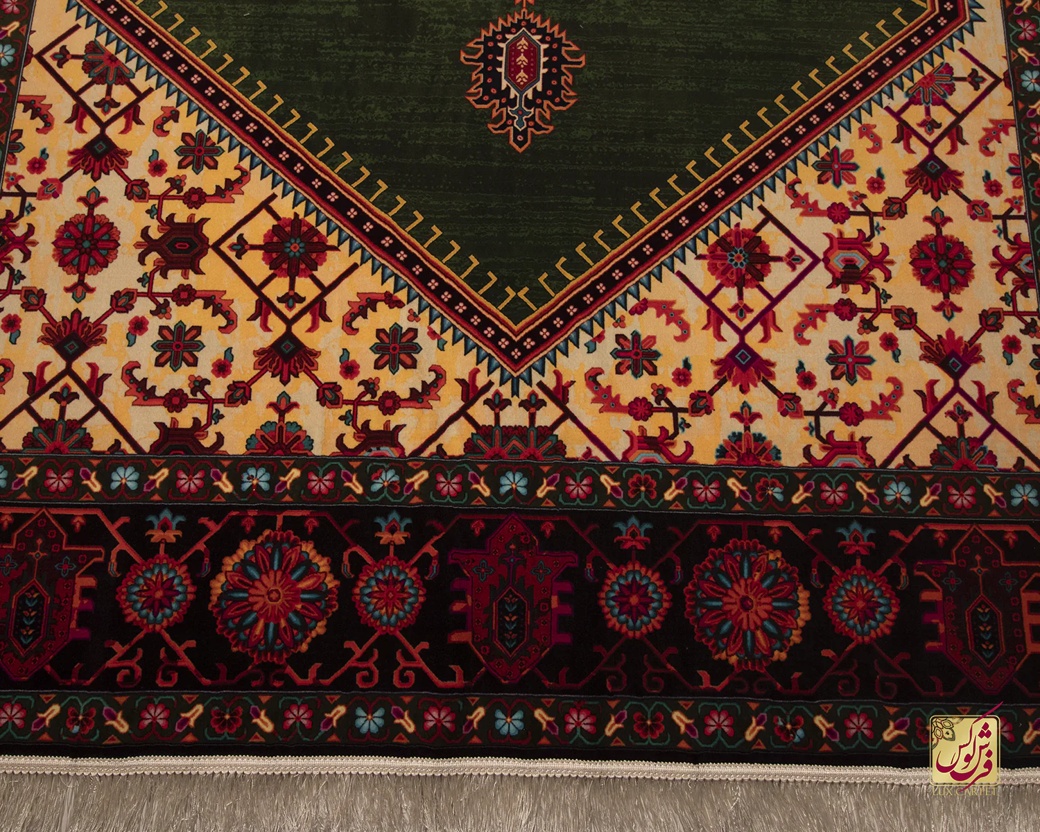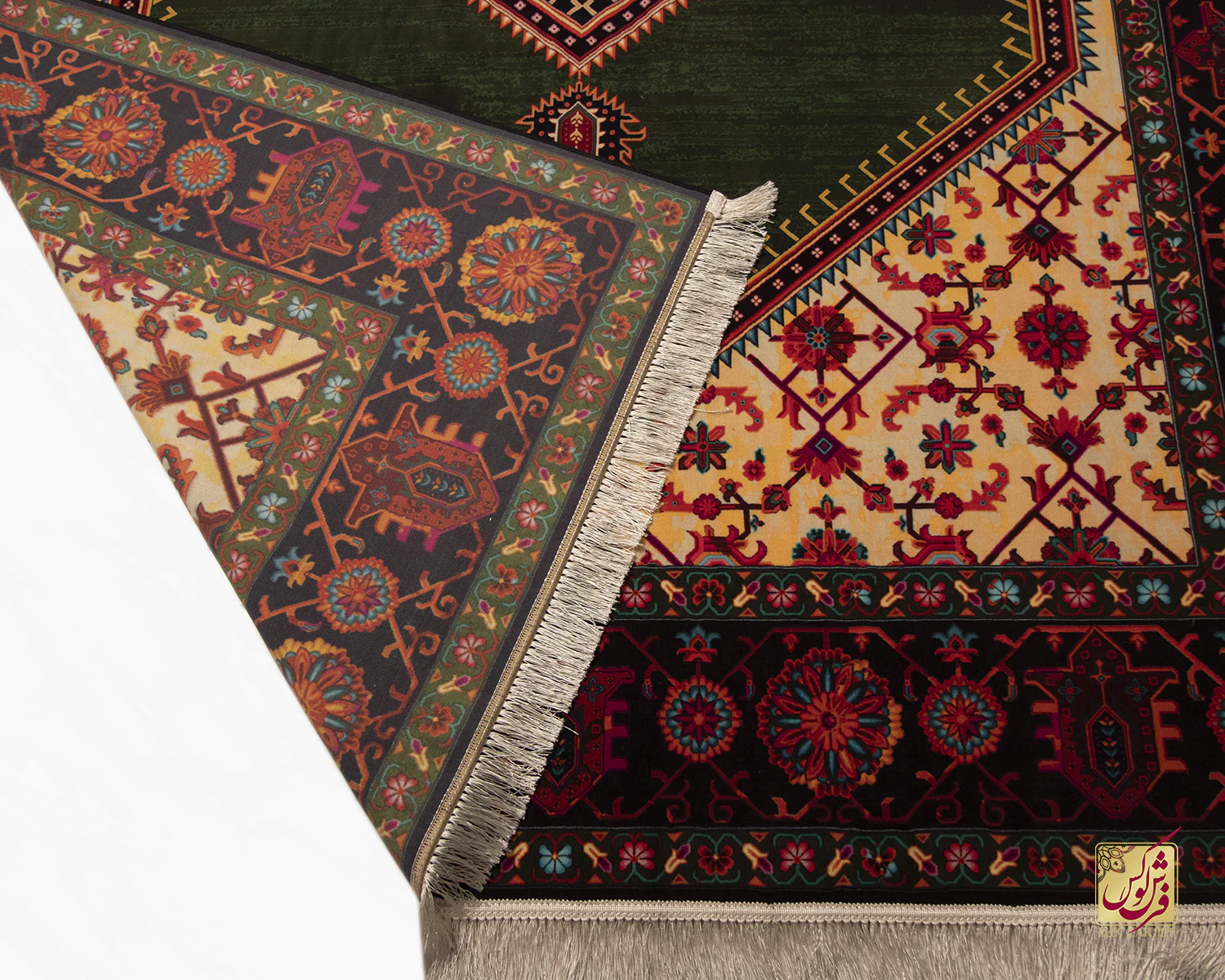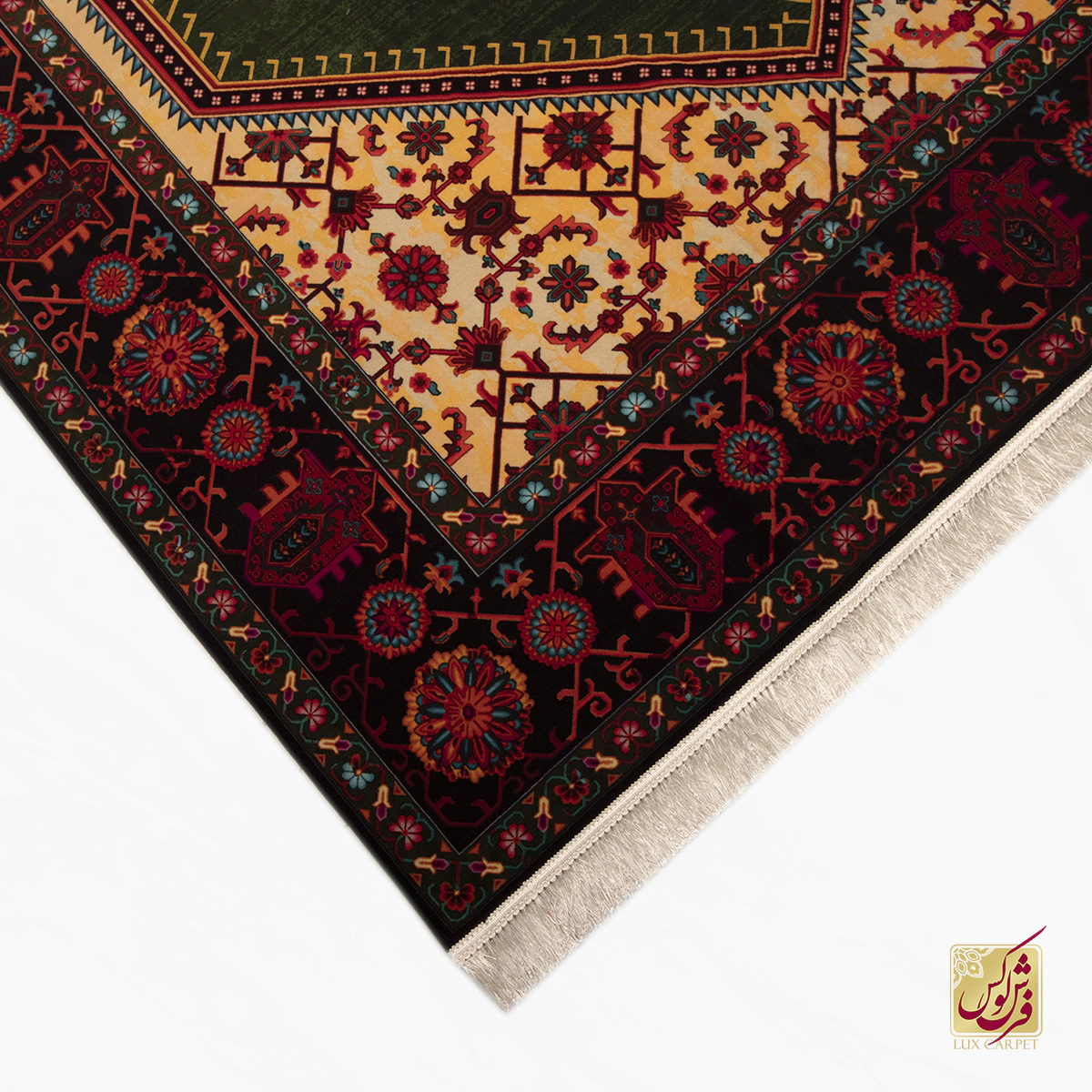 فرش ابریشم ماشینی ۲۱۰۳۰۴ سبز مشکی