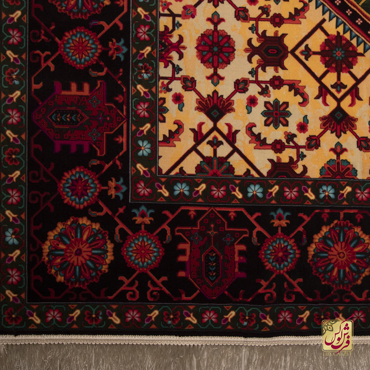 • فرش ابریشم ماشینی 210303 نارنجی مشکی