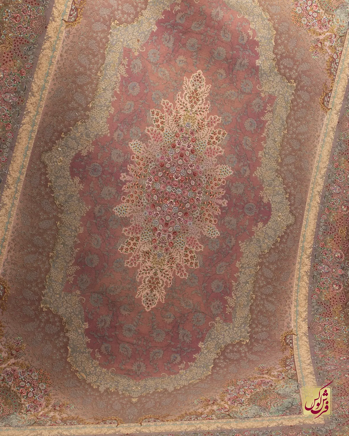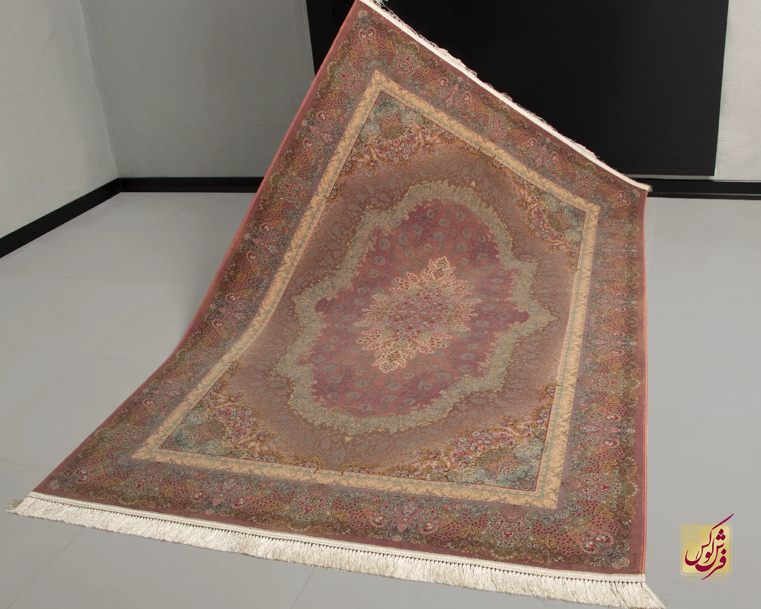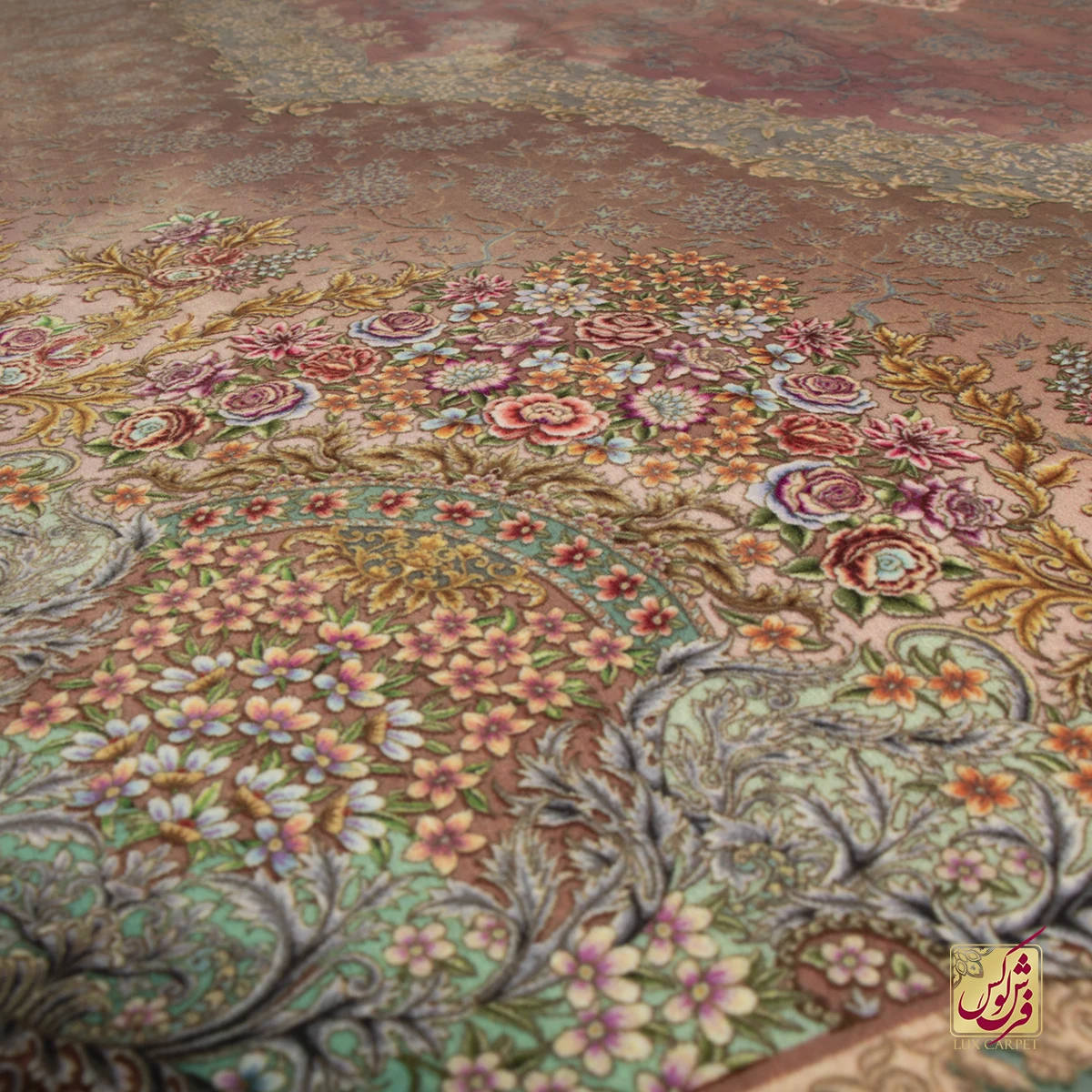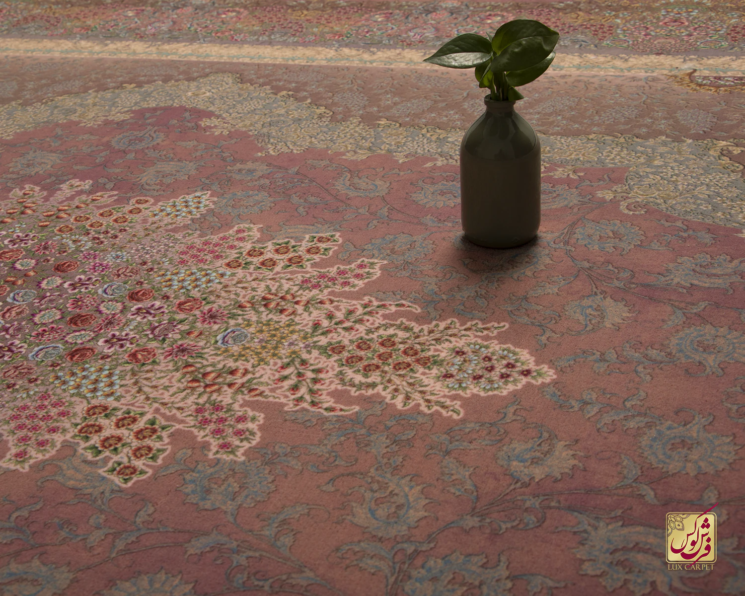 فرش ابریشم ماشینی ۷۰۱۱۴۵ گلبهی