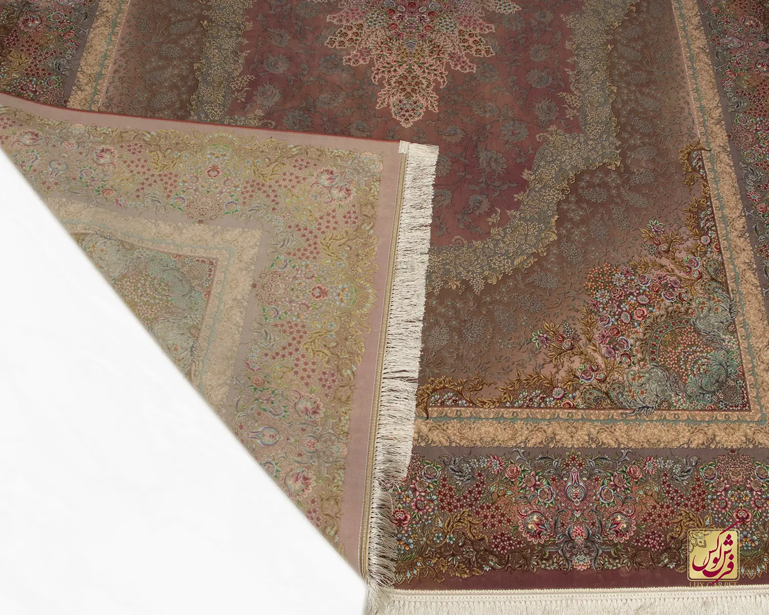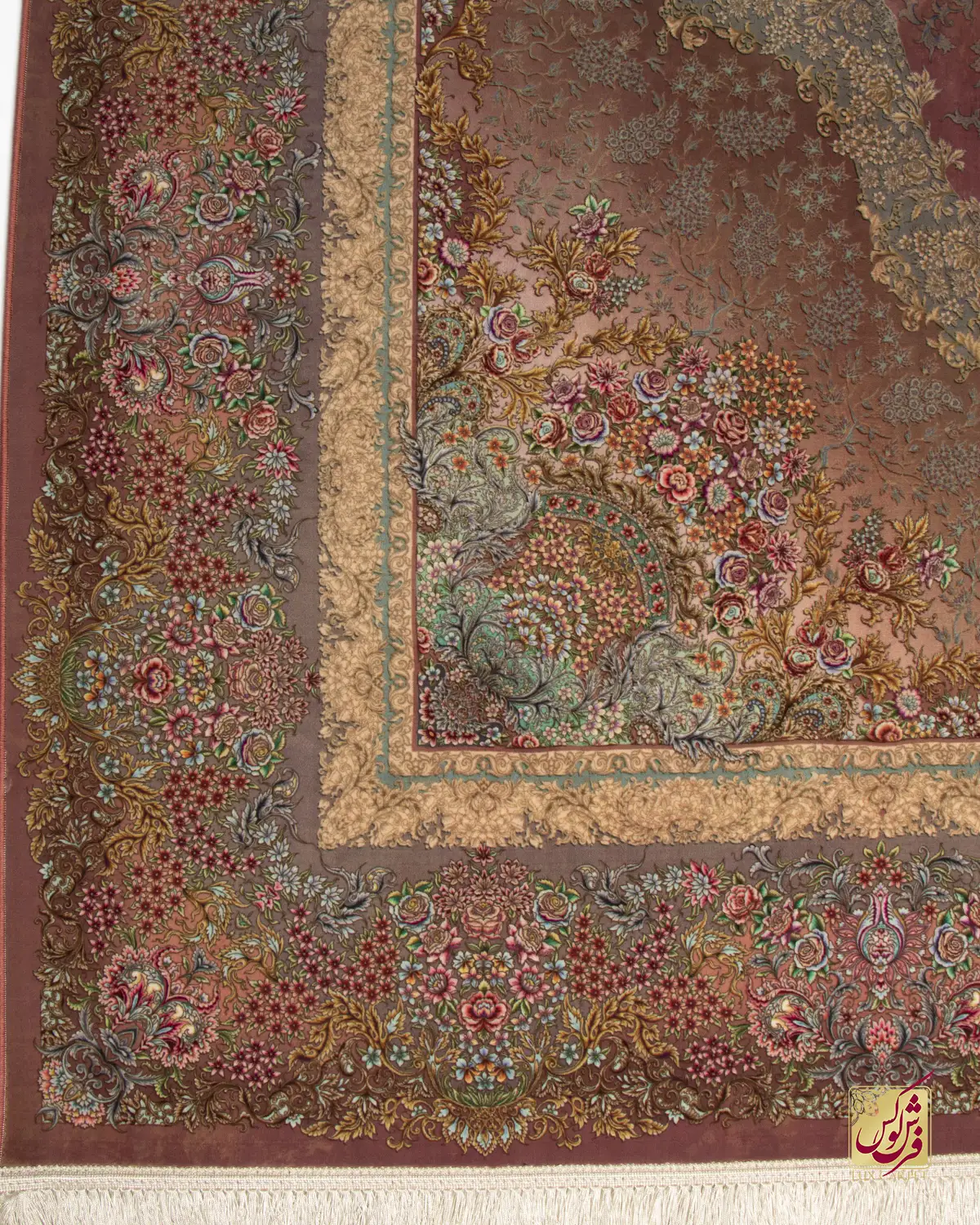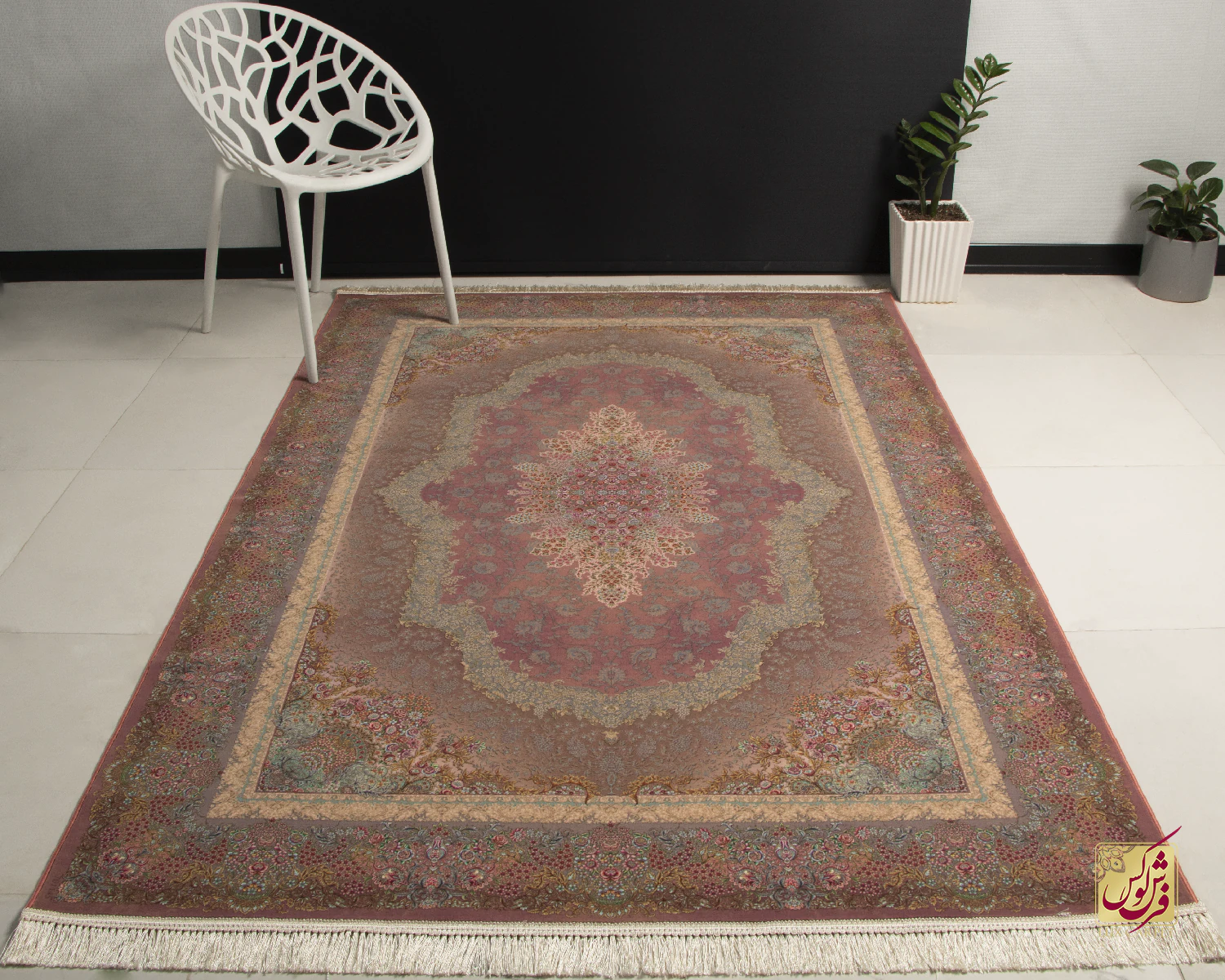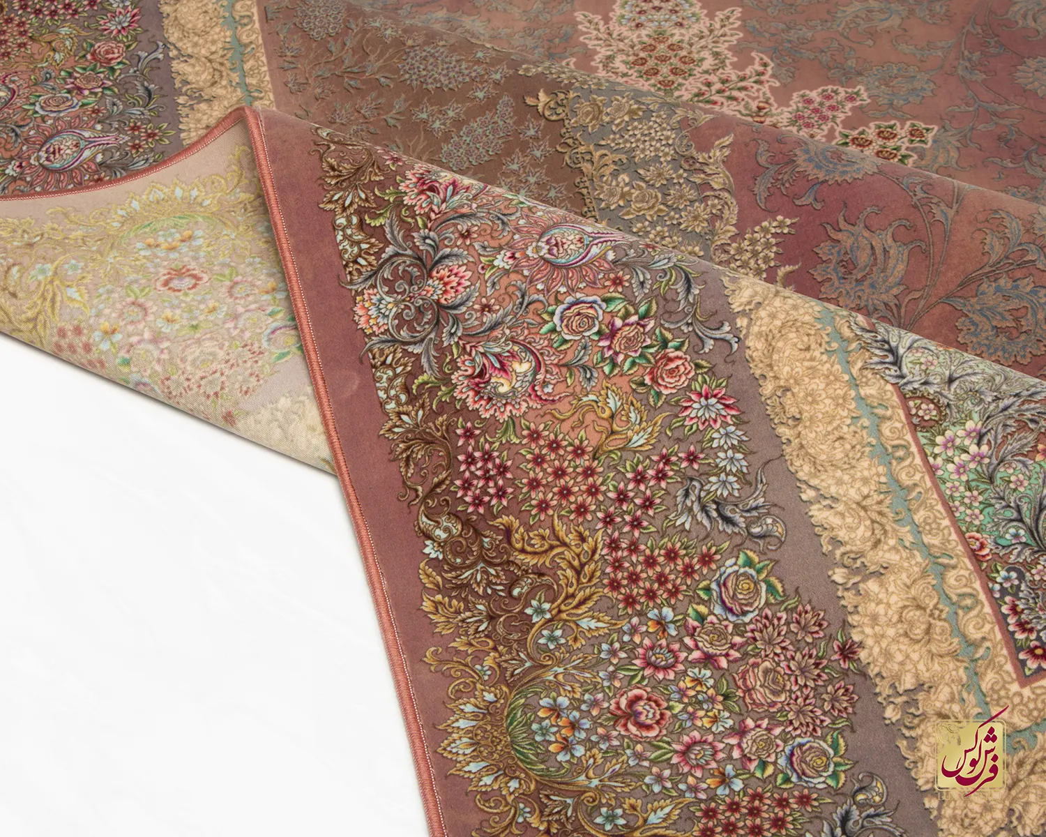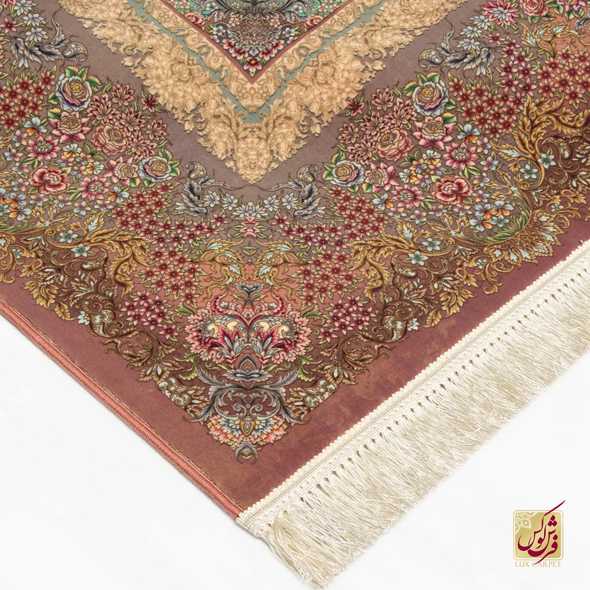 فرش ابریشم ماشینی ۷۰۱۱۴۵ گلبهی