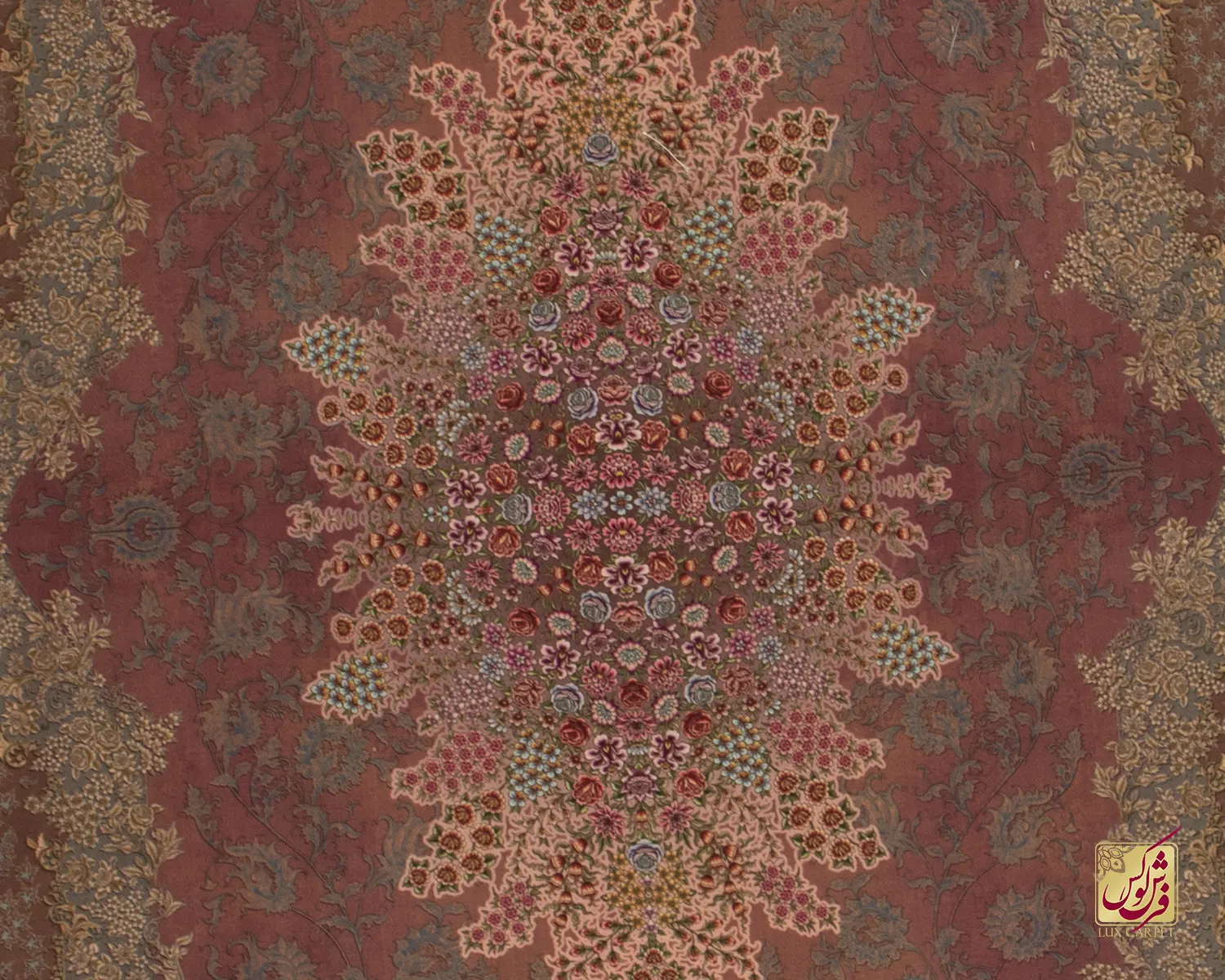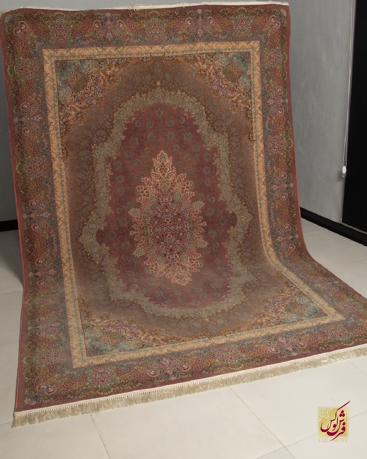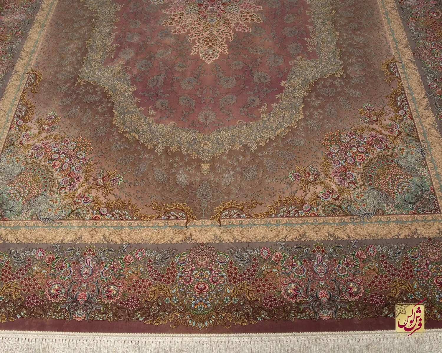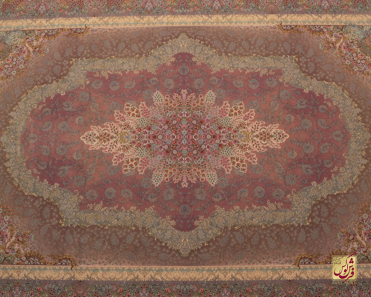 فرش ابریشم ماشینی ۷۰۱۱۴۵ گلبهی