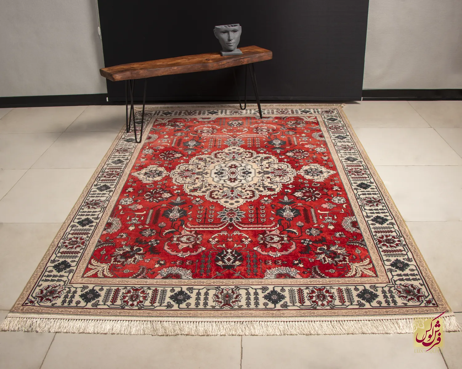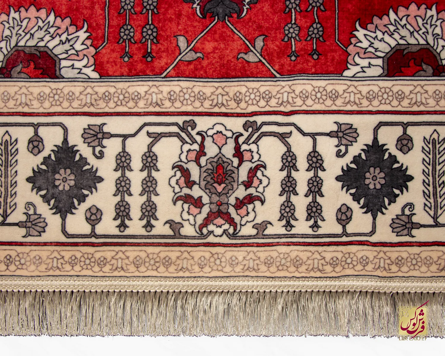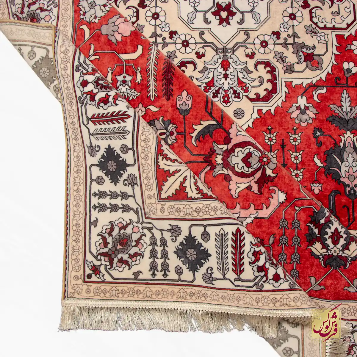 فرش ابریشم ماشینی ۷۲۳۱۰۴ قرمز کرم