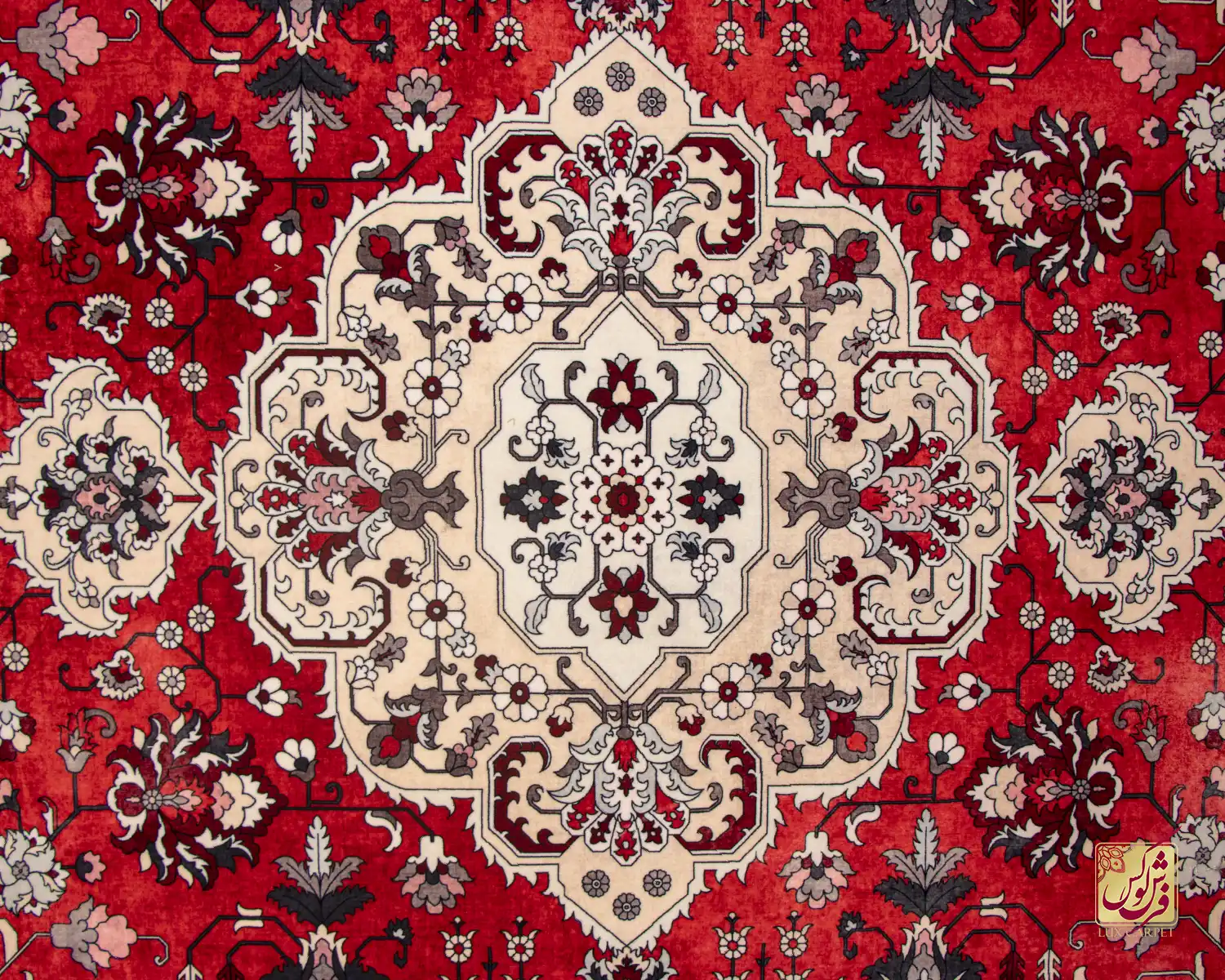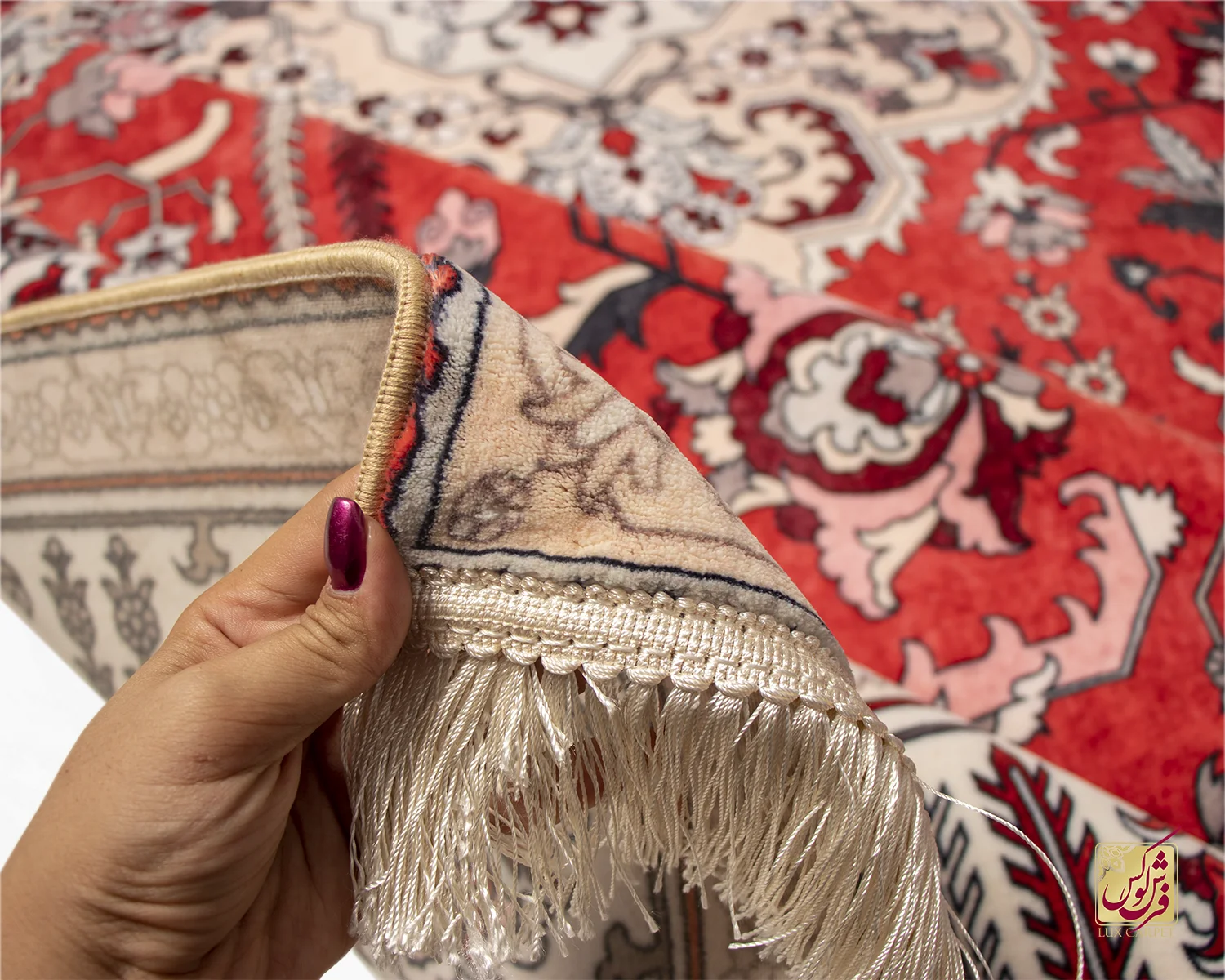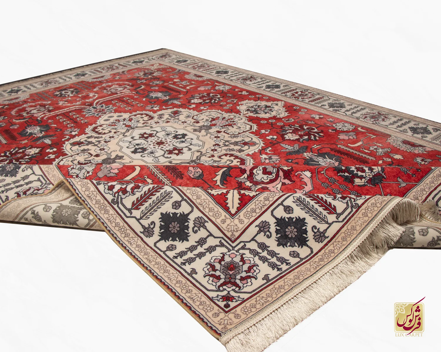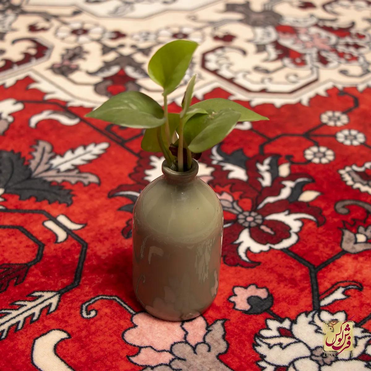 فرش ابریشم ماشینی ۷۲۳۱۰۴ قرمز کرم