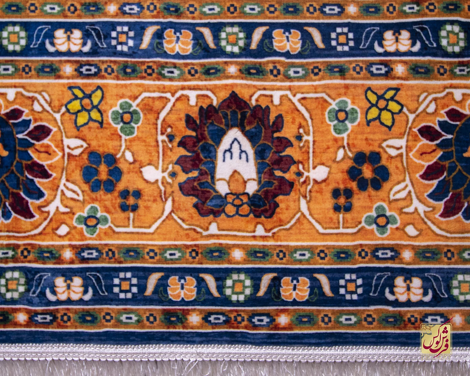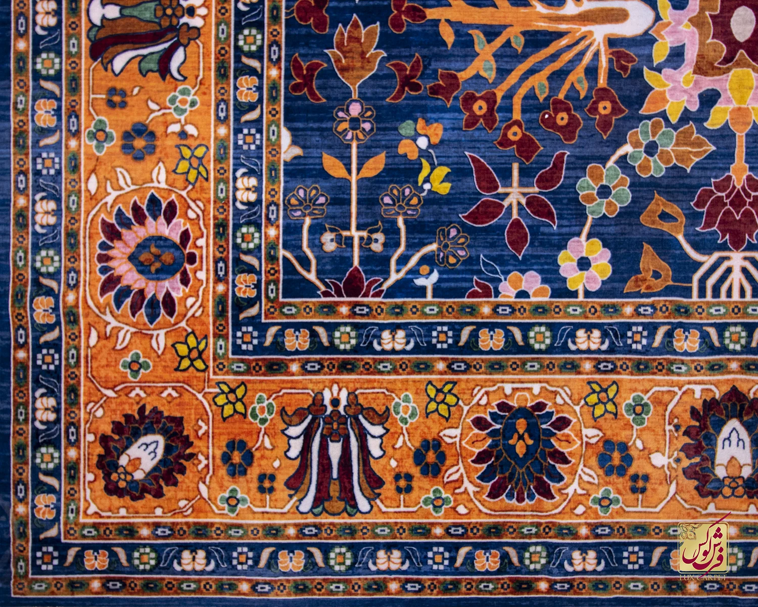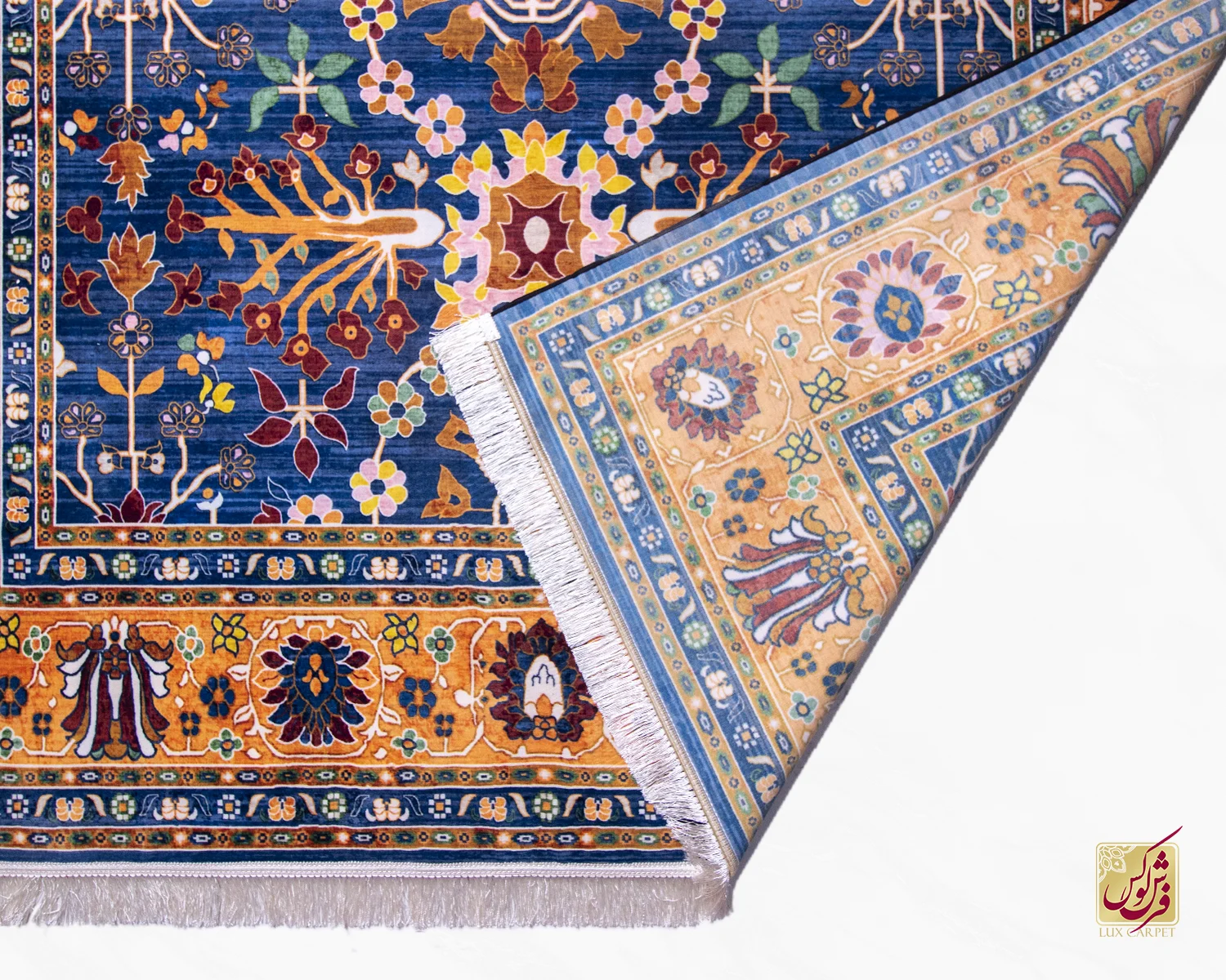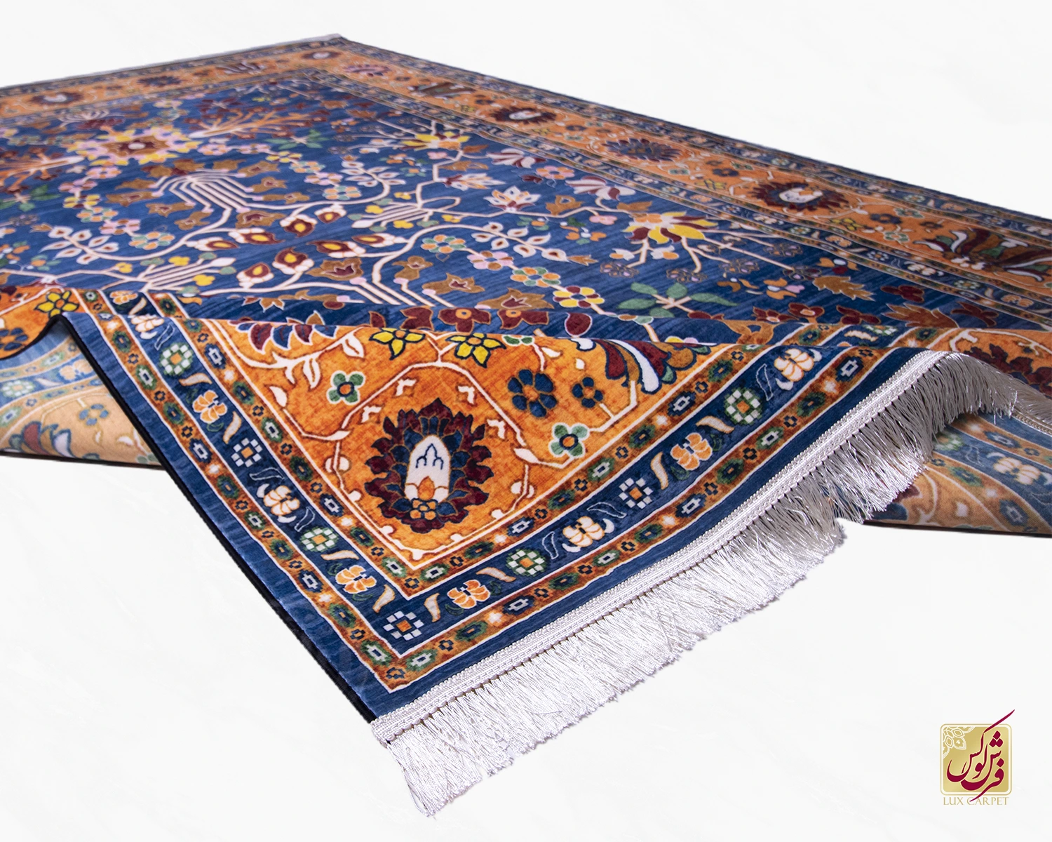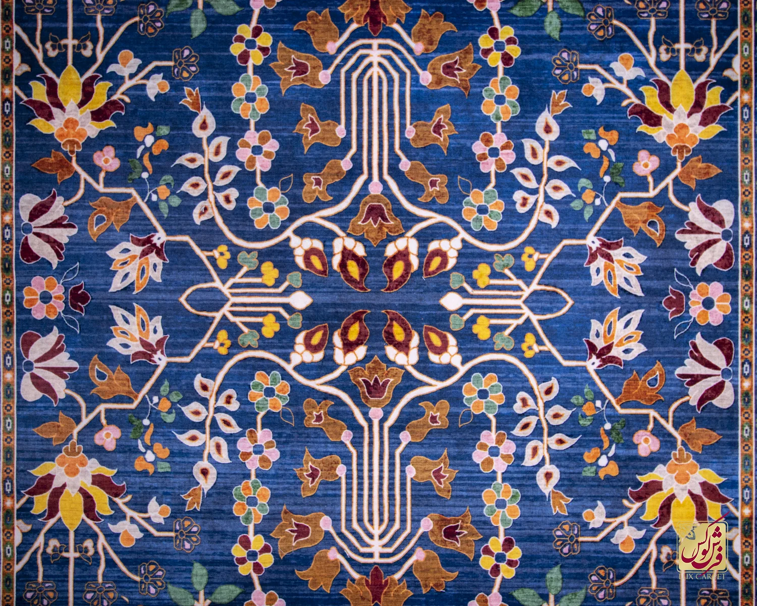 فرش ابریشم ماشینی ۷۳۰۳۰۰ آبی حاشیه آجری