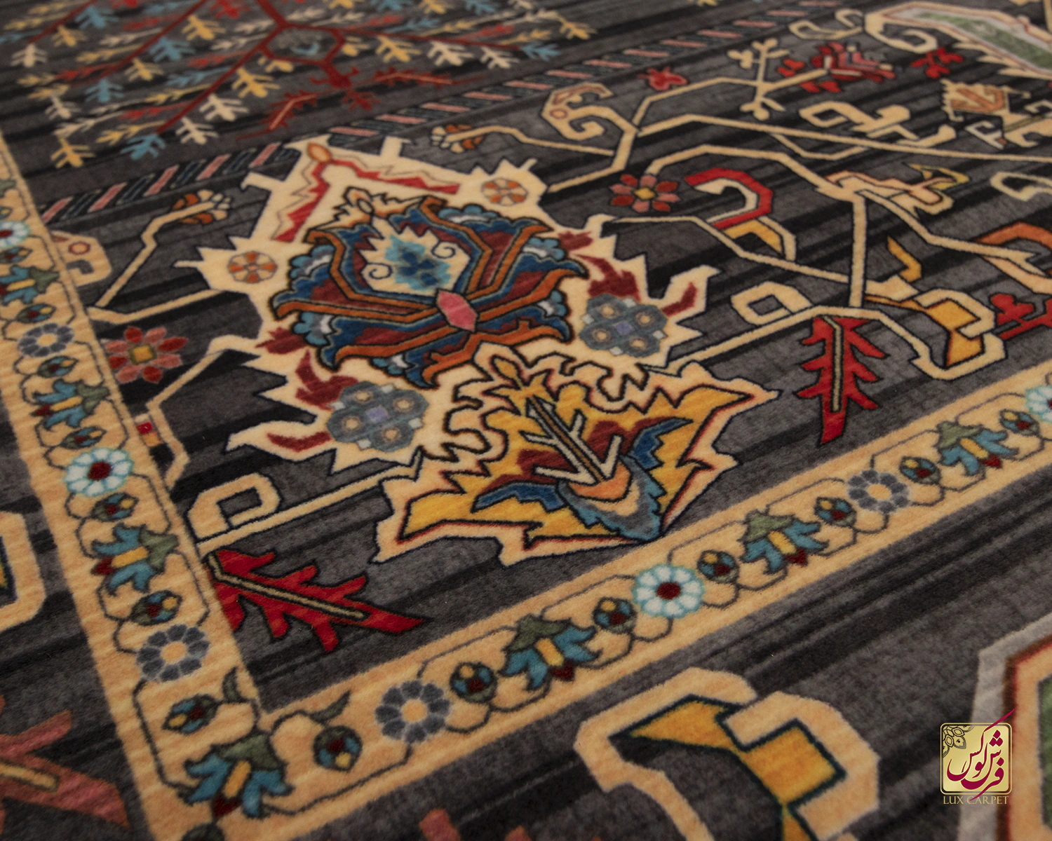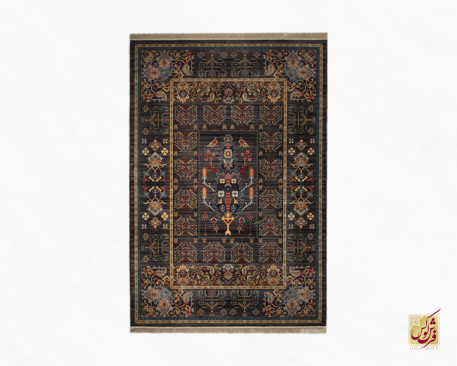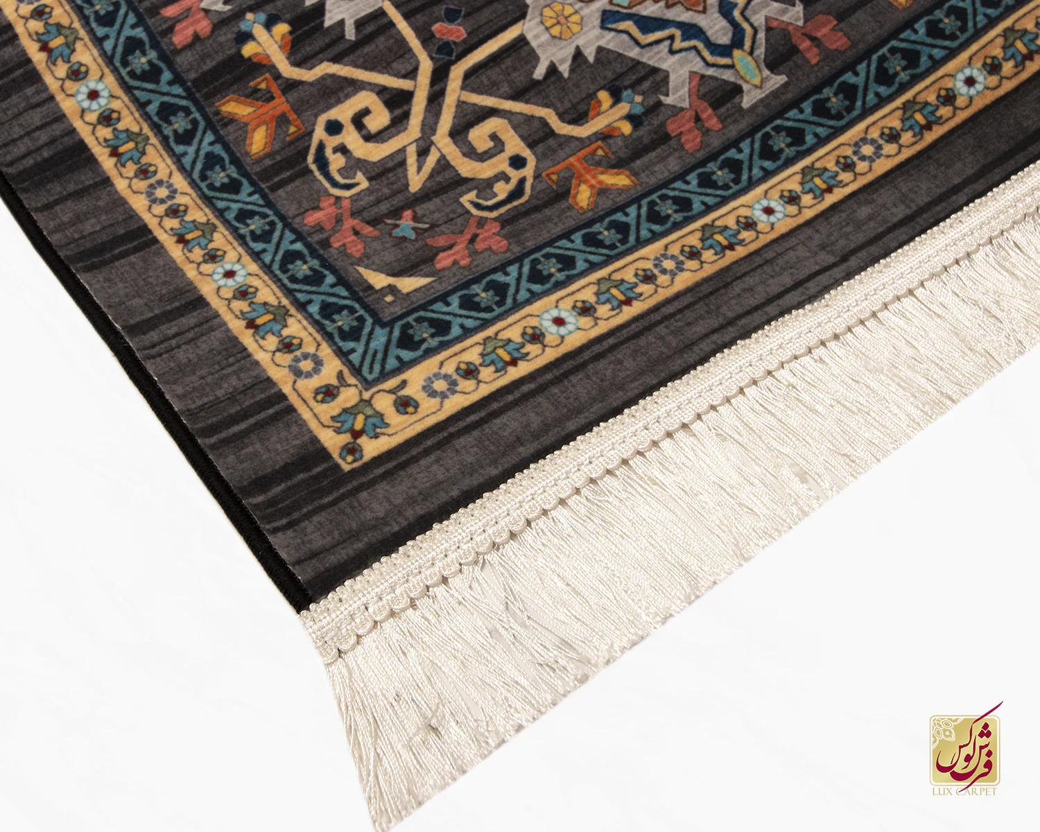 فرش ابریشم ماشینی ۷۳۰۶۰۱ ذغالی