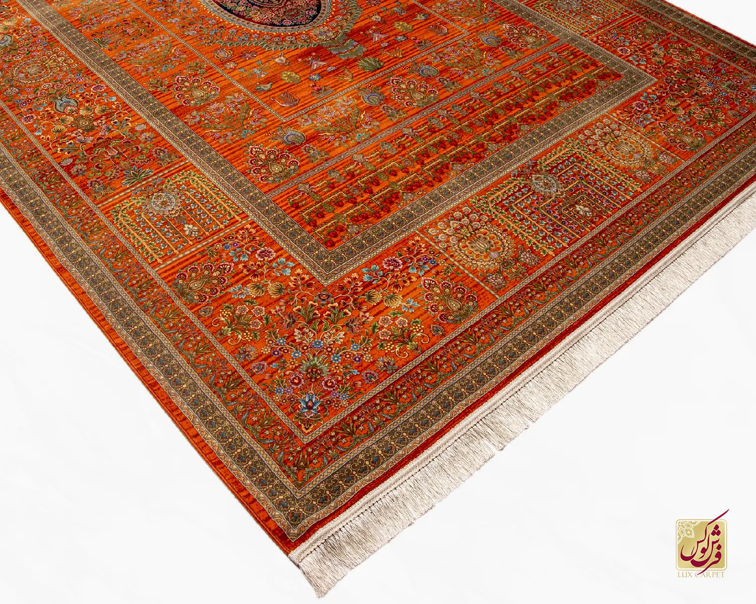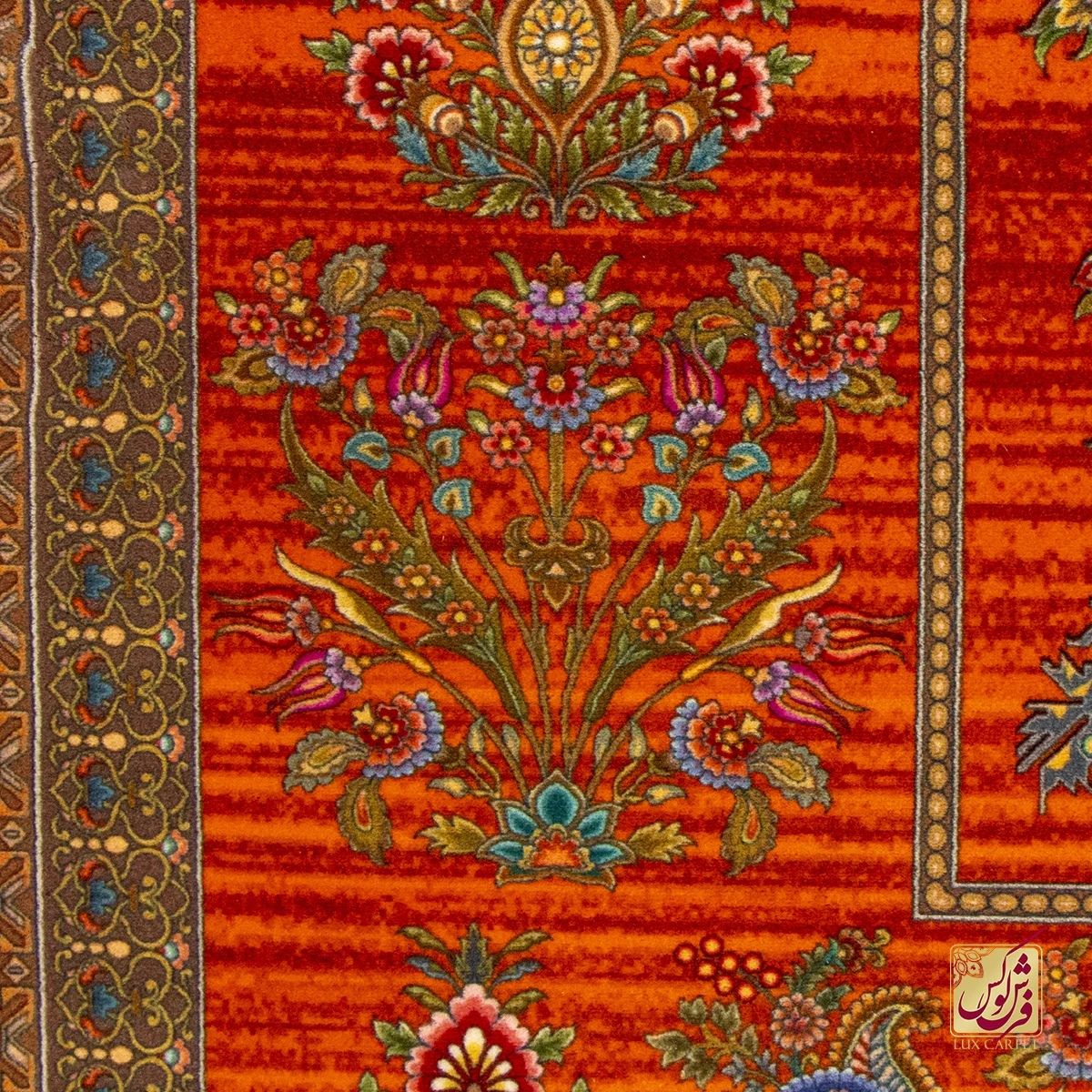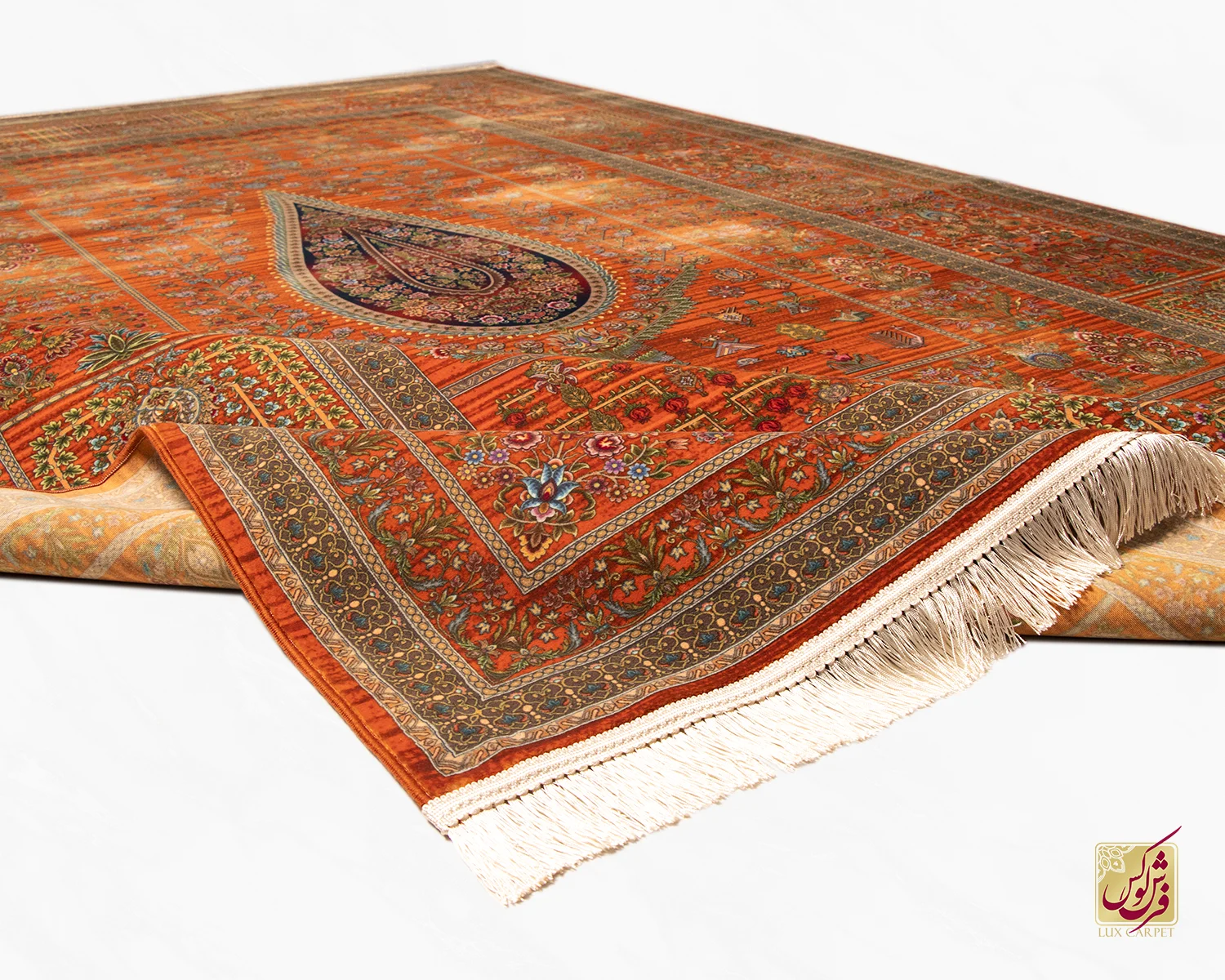 فرش ابریشم ماشینی ۷۳۰۹۰۱ نارنجی تمام رنگ