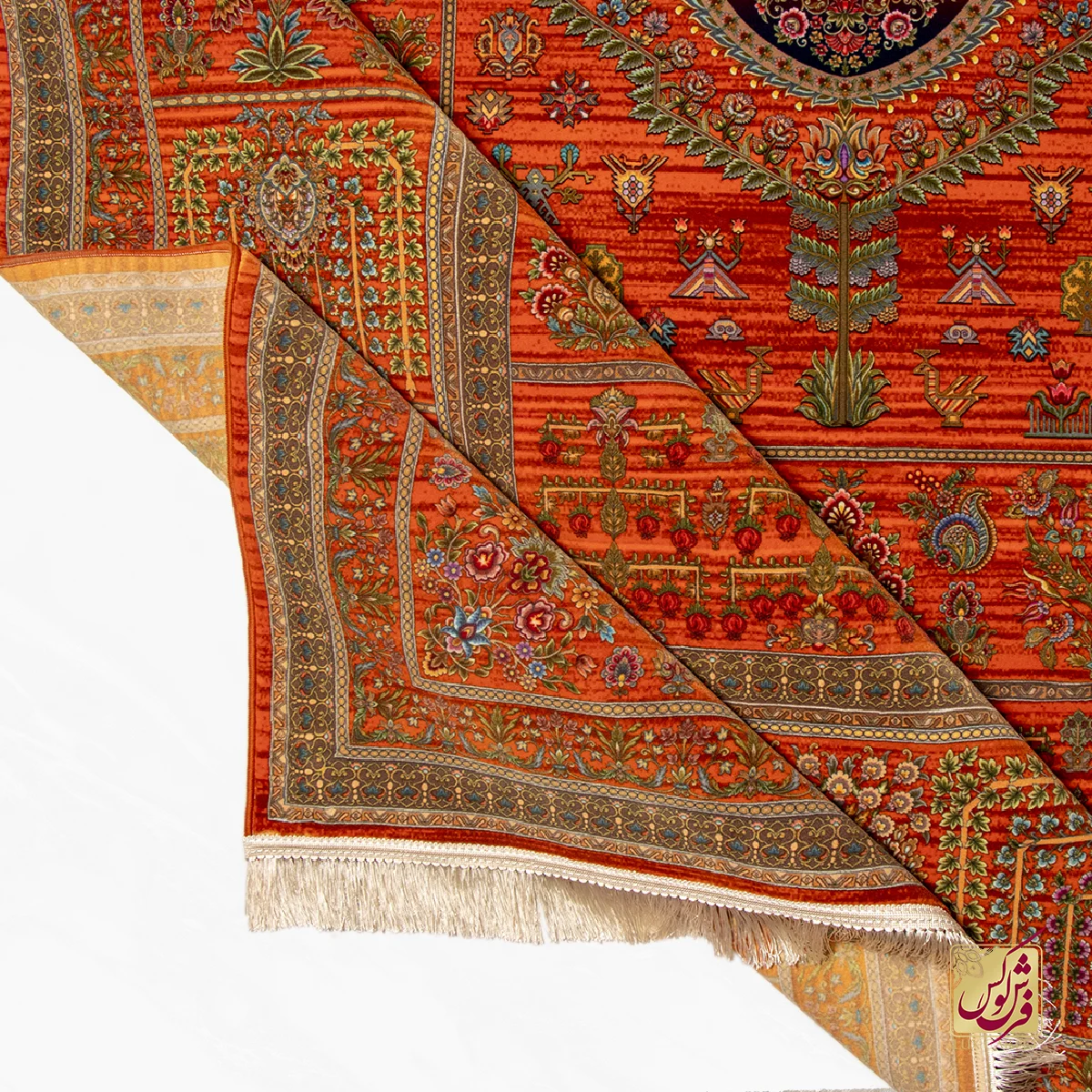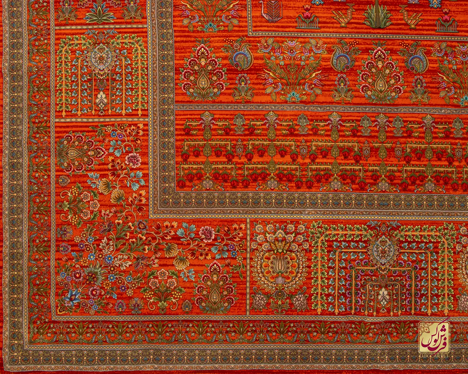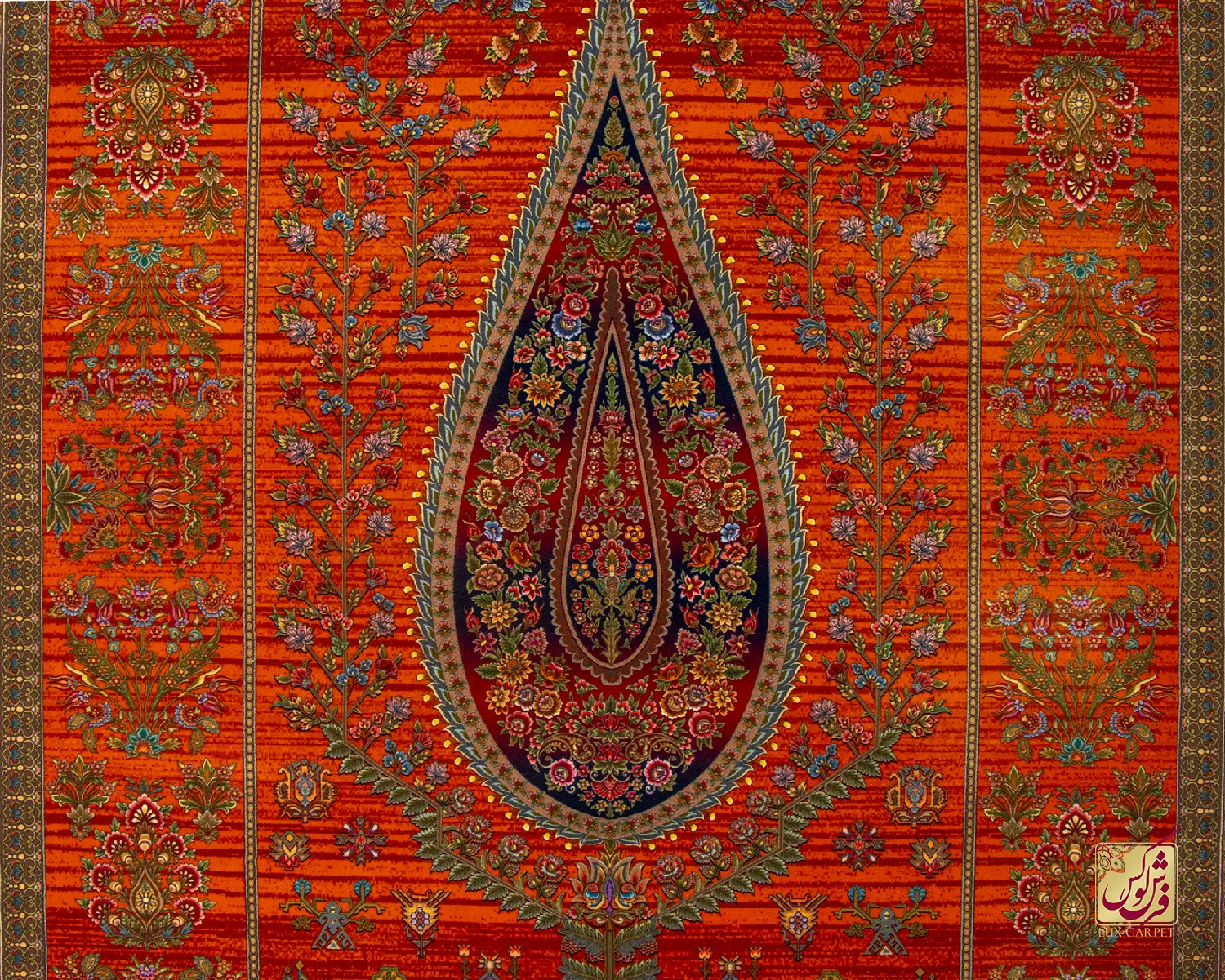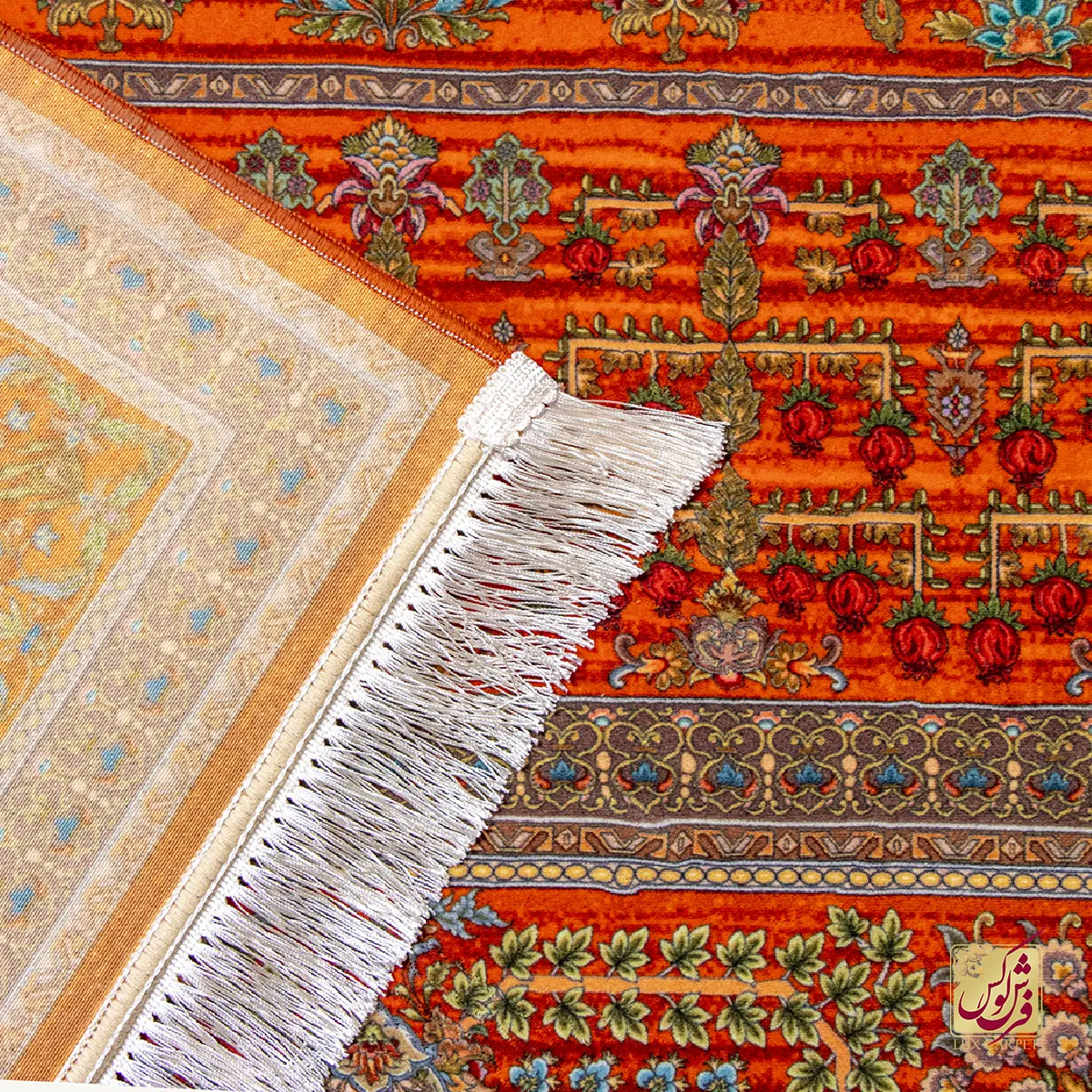 فرش ابریشم ماشینی ۷۳۰۹۰۱ نارنجی تمام رنگ