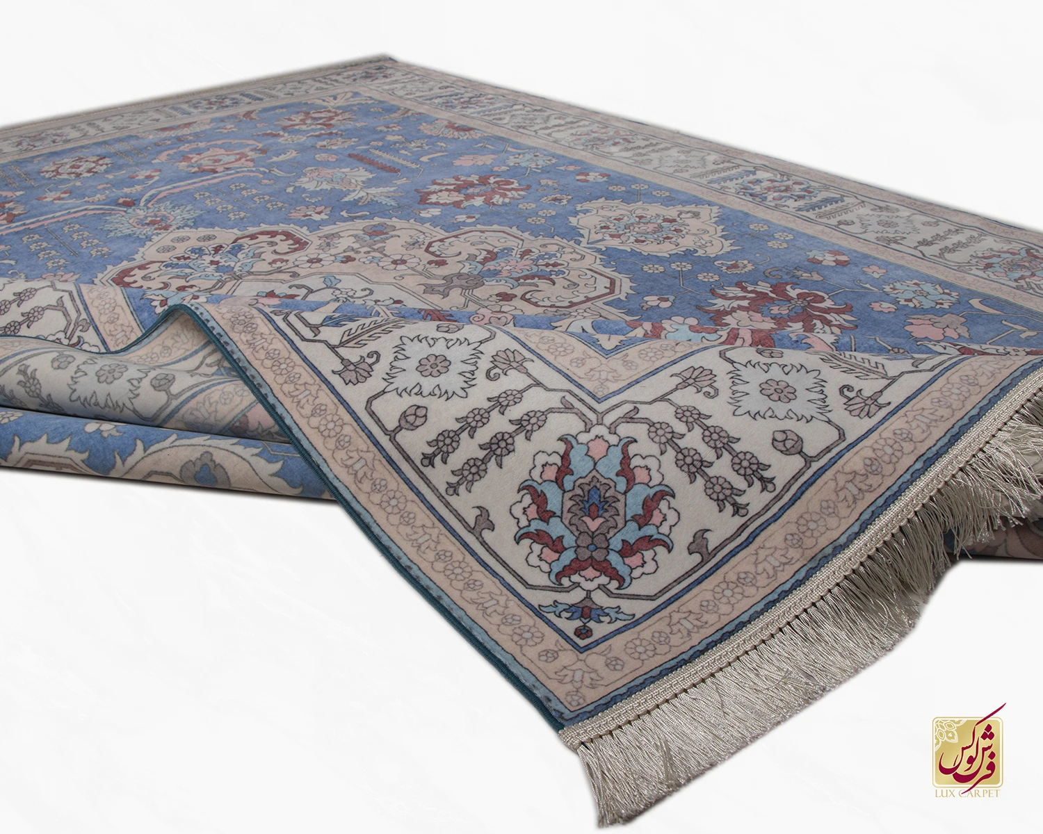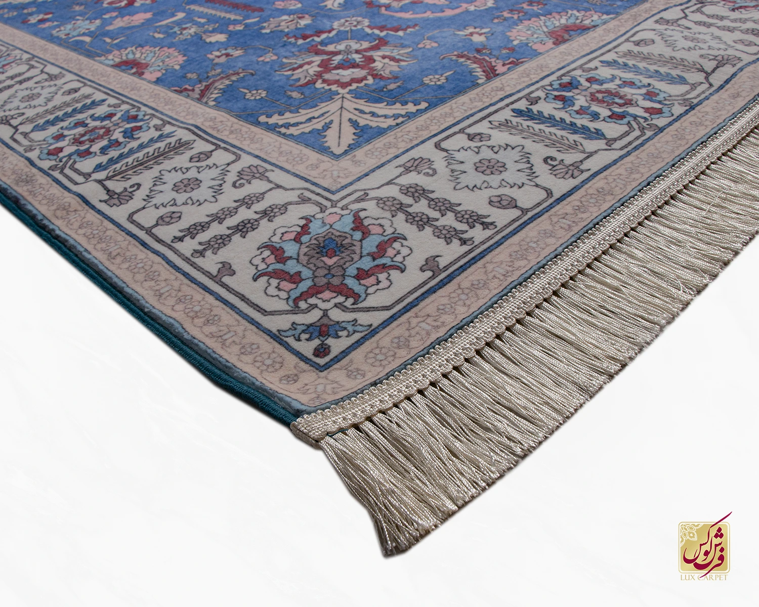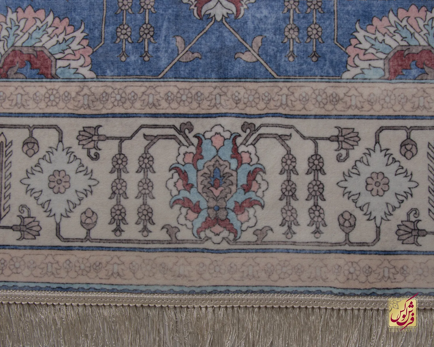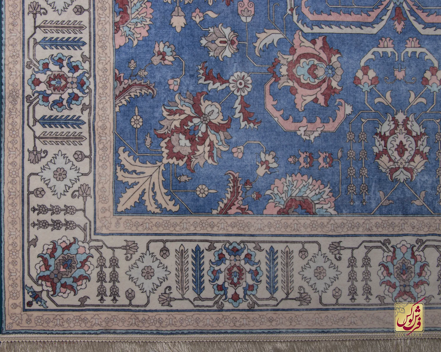 فرش ابریشم ماشینی ۷۴۳۱۰۰ آبی کرم