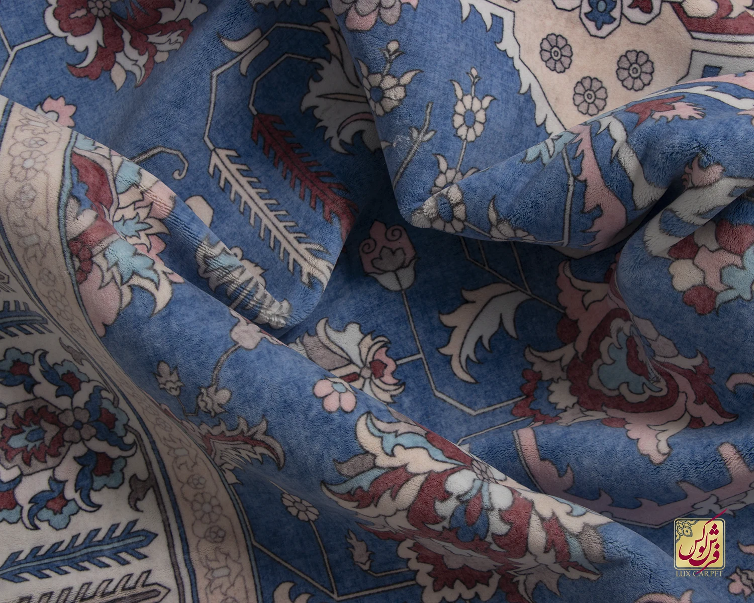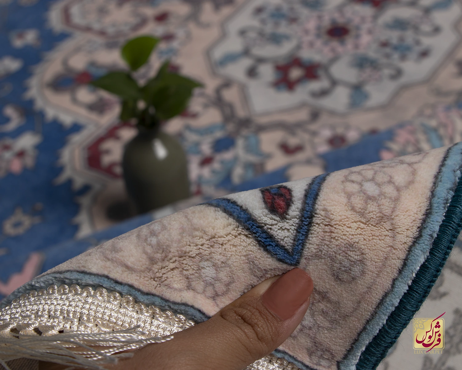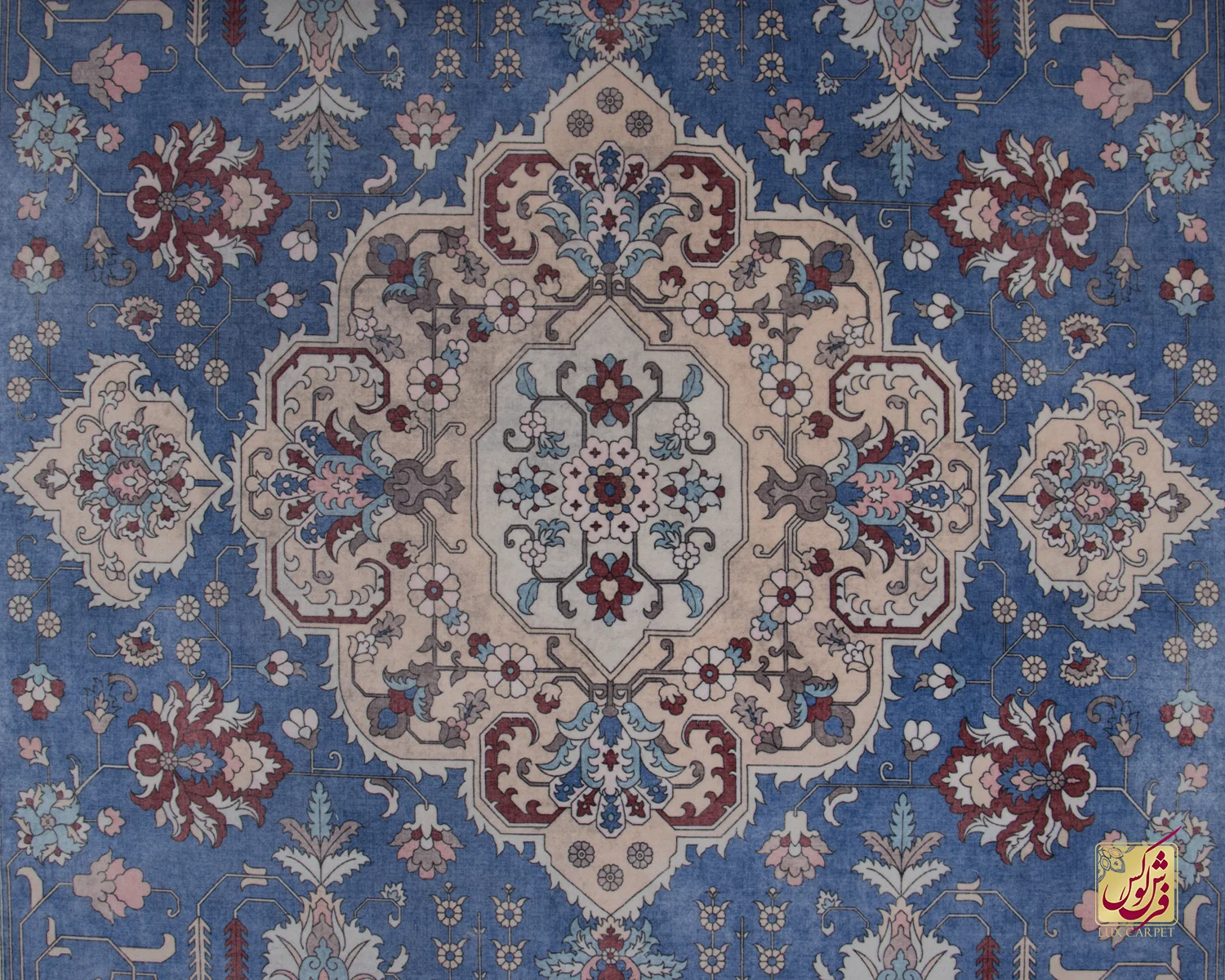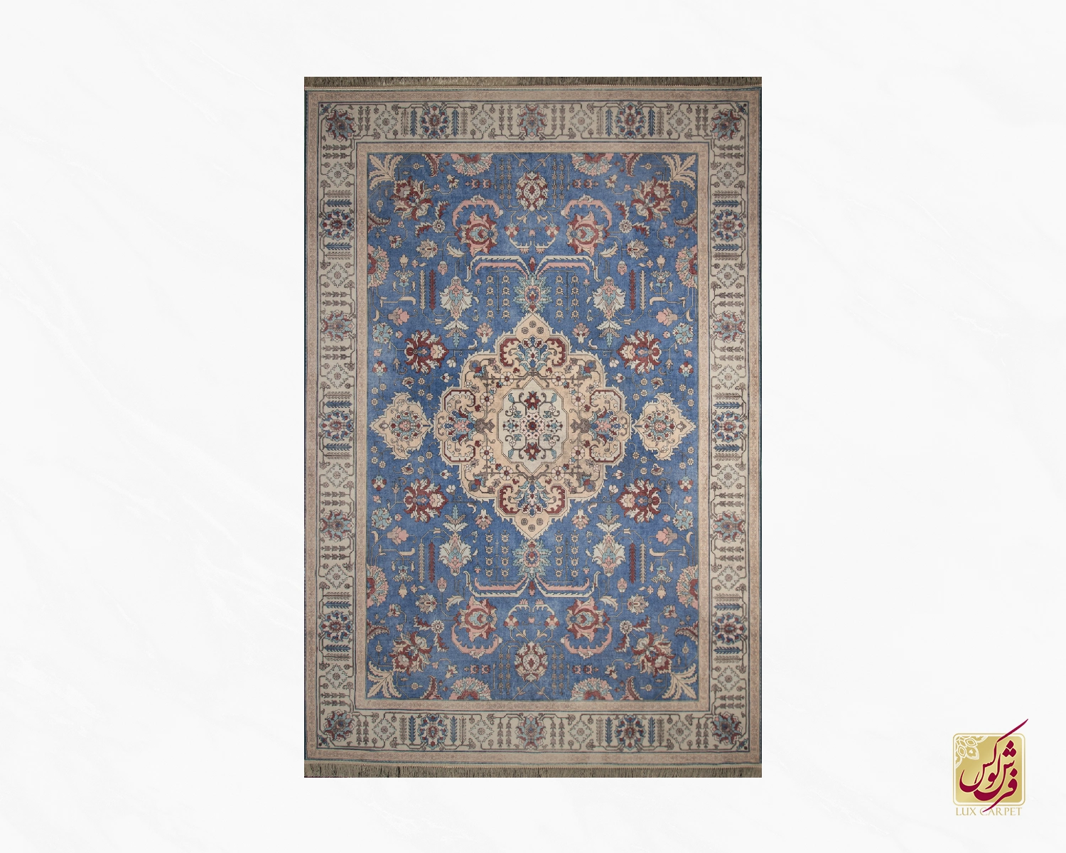 فرش ابریشم ماشینی ۷۴۳۱۰۰ آبی کرم