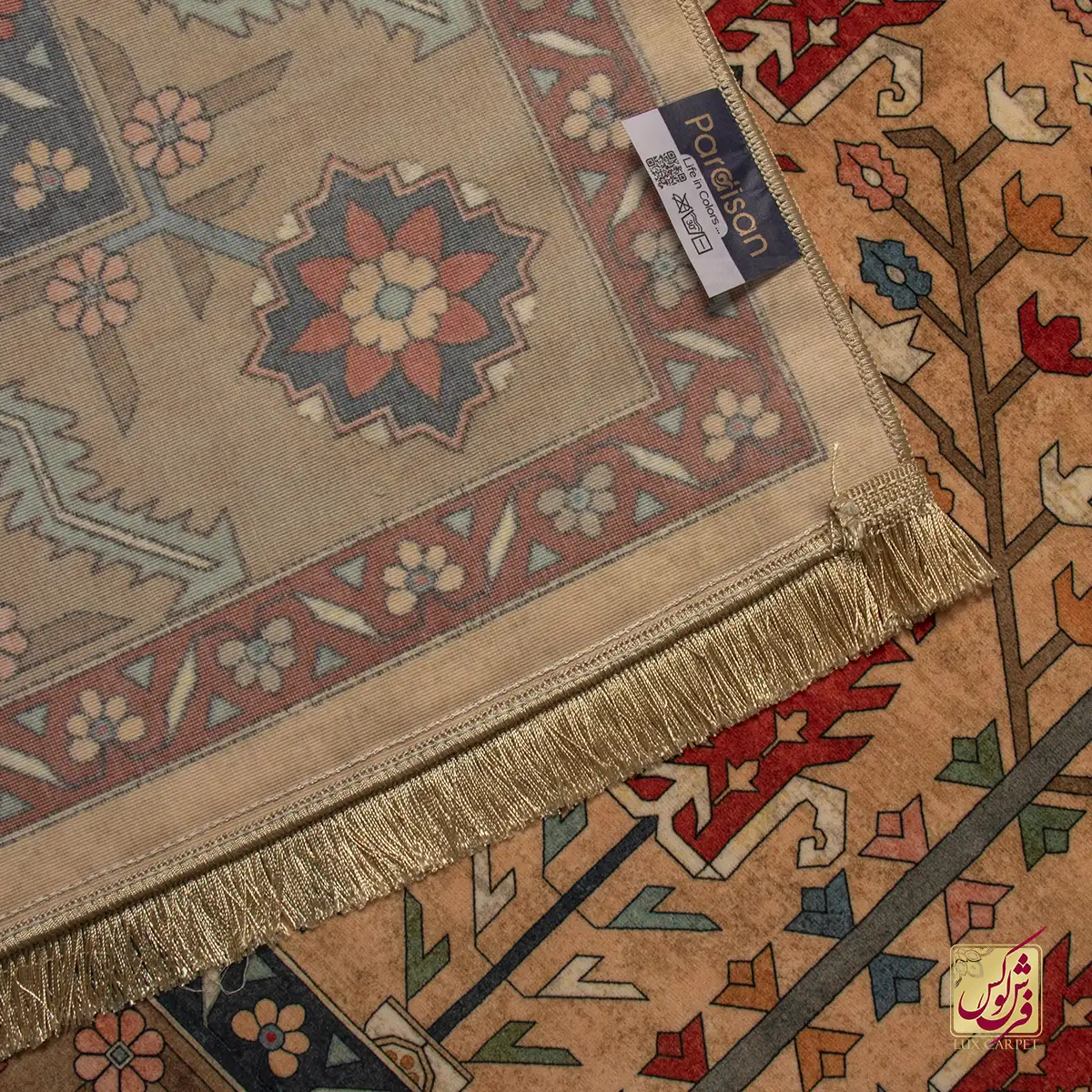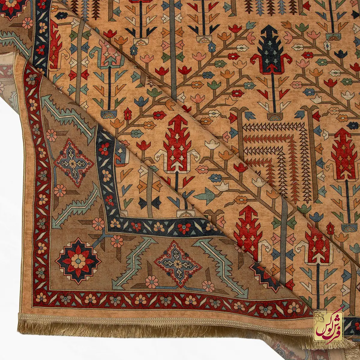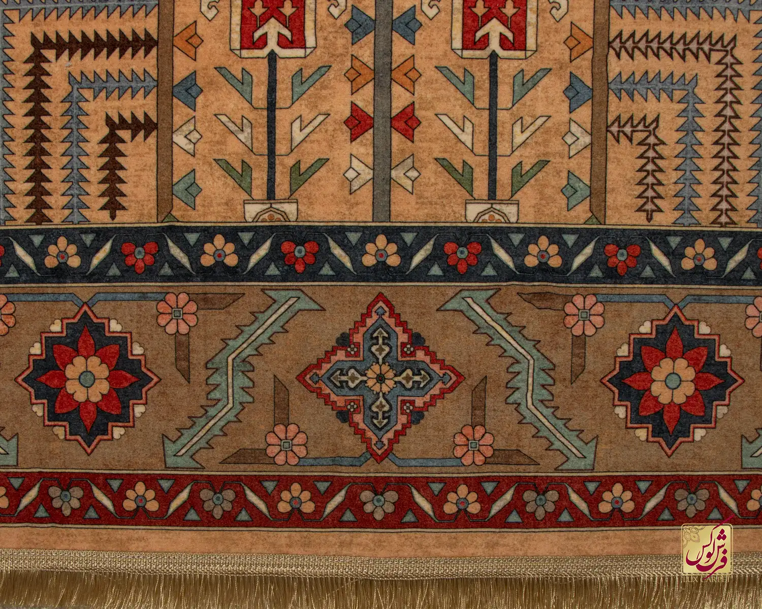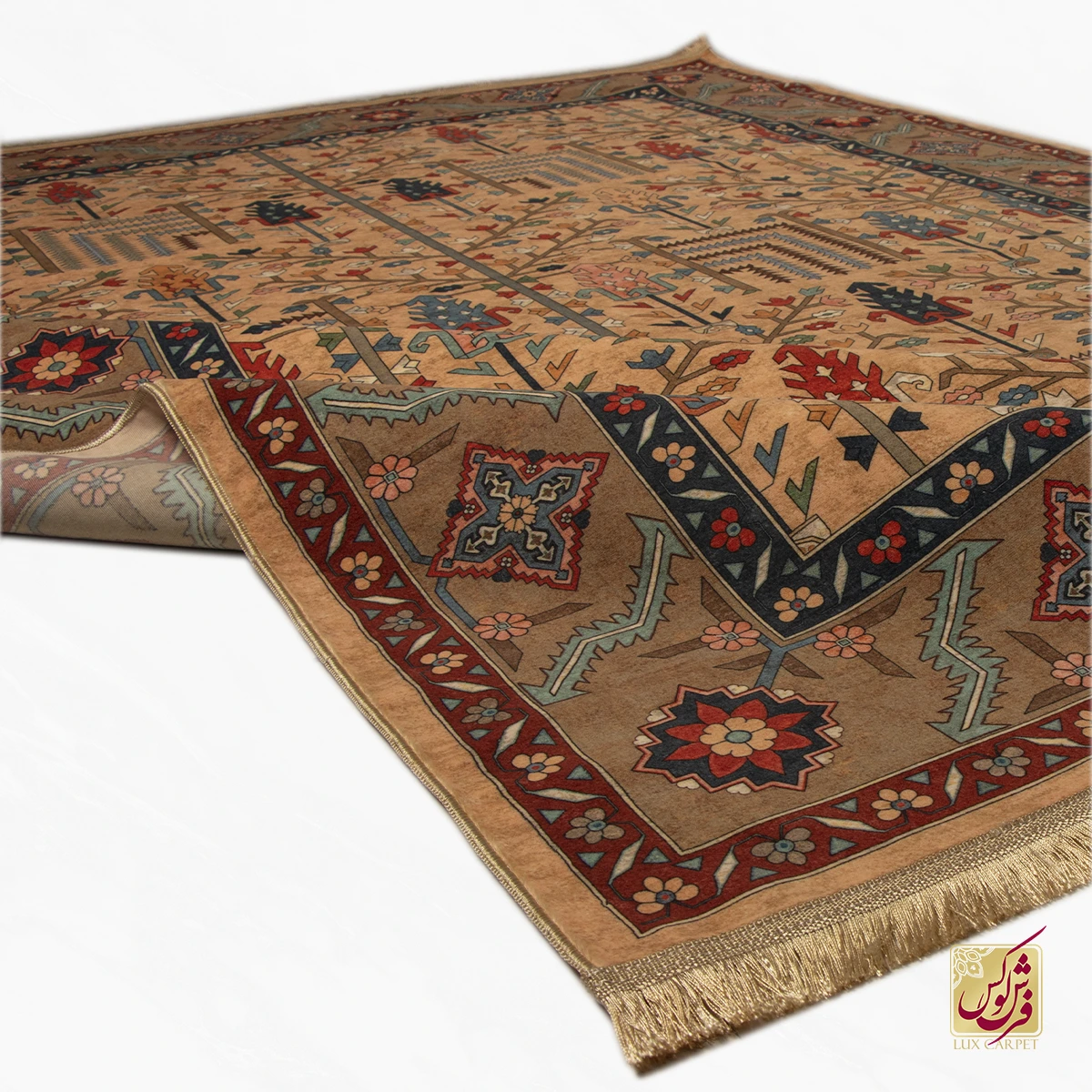 فرش ابریشم ماشینی C1116 بژ گردویی