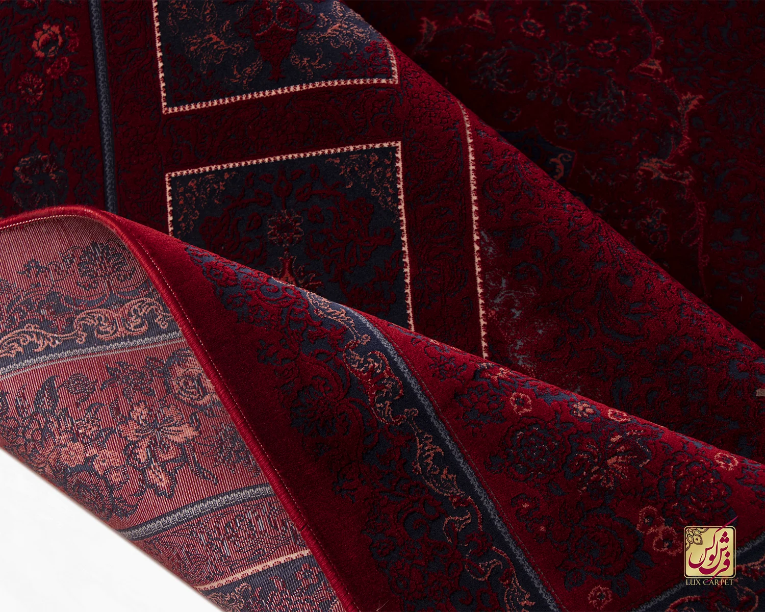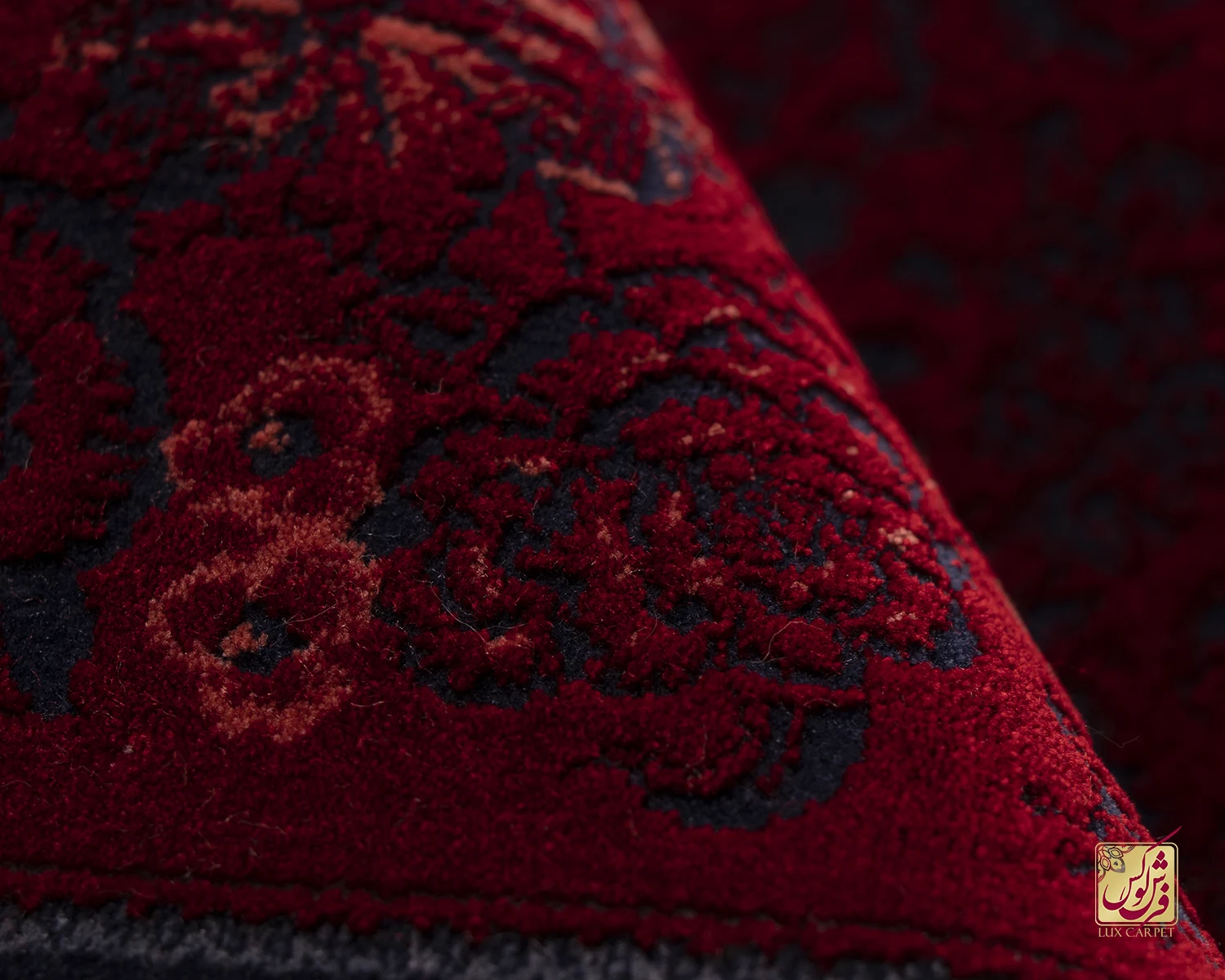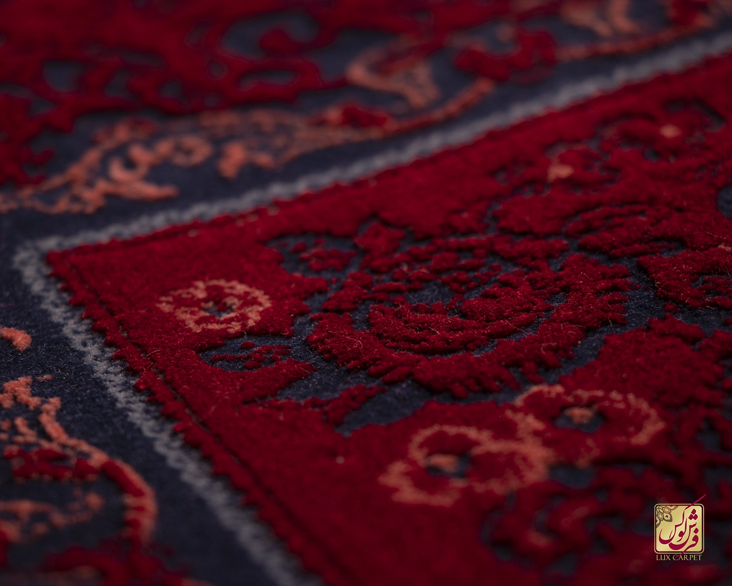 فرش وینتیج کتیبه lsk قرمز سورمه ای