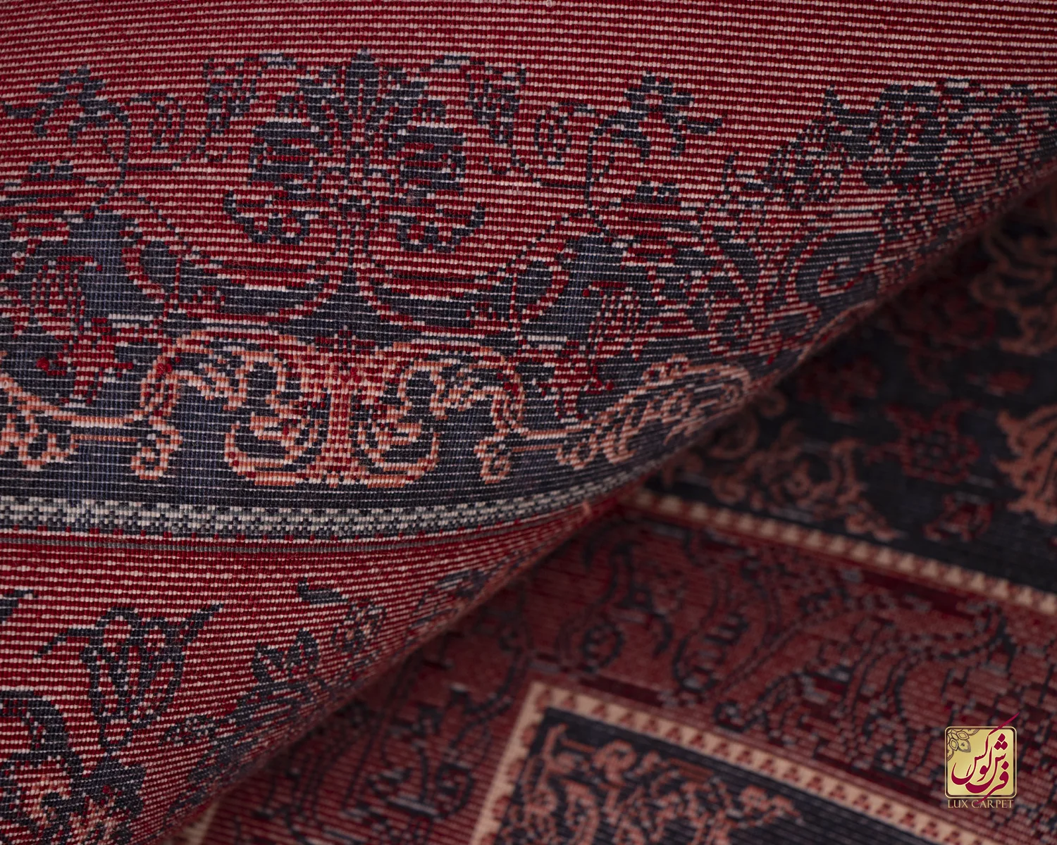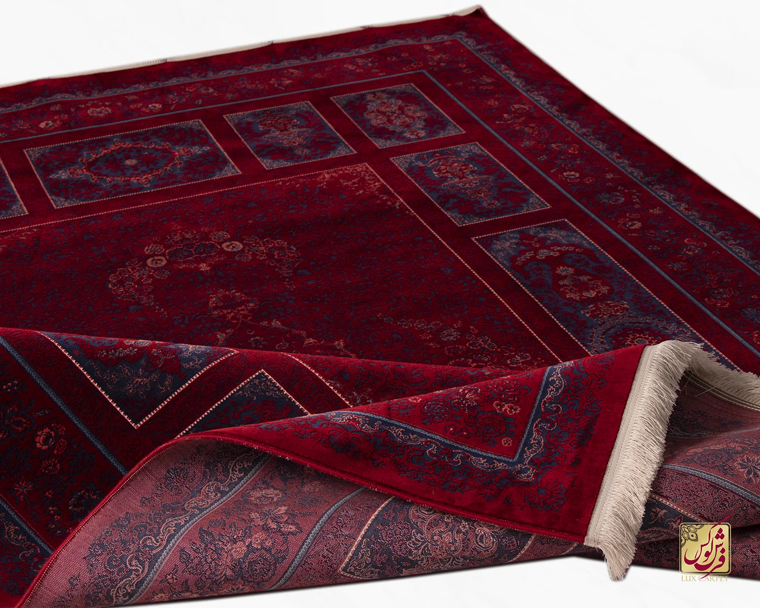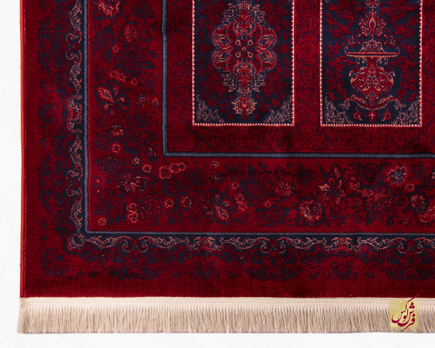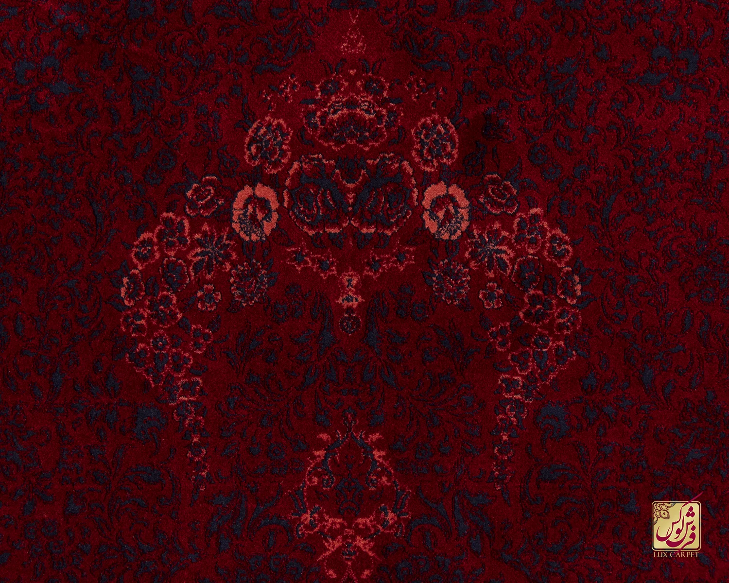 فرش وینتیج کتیبه lsk قرمز سورمه ای