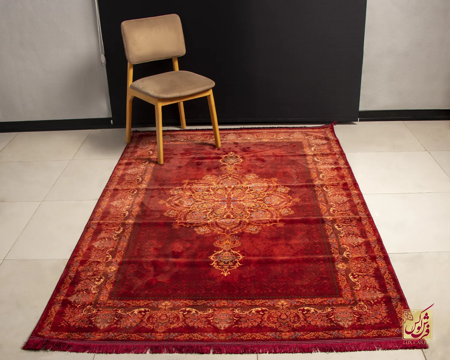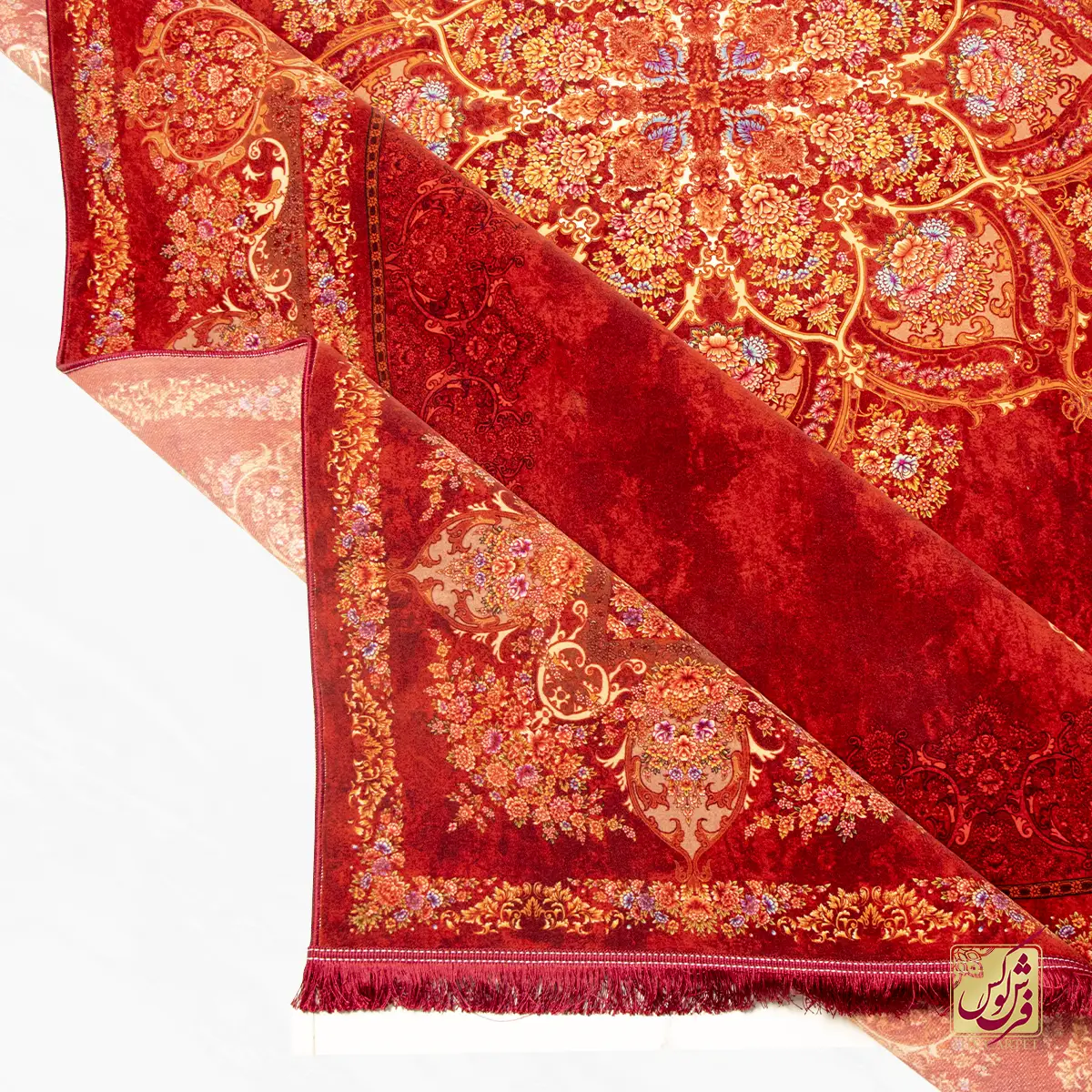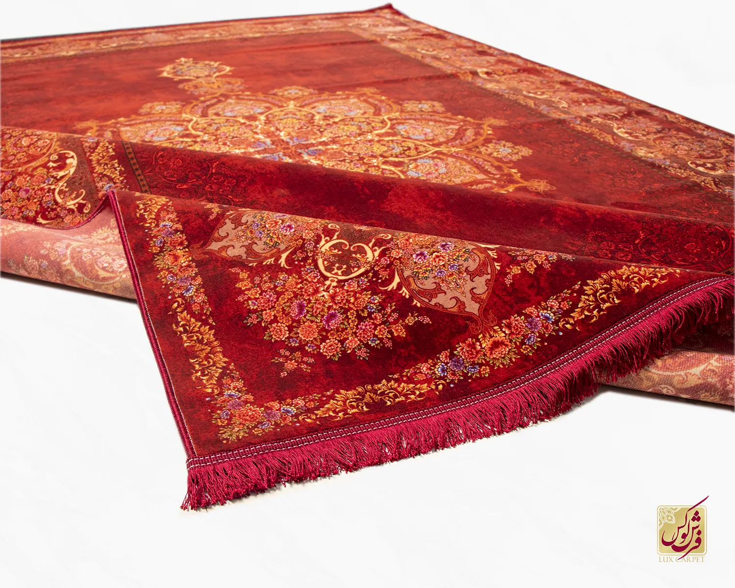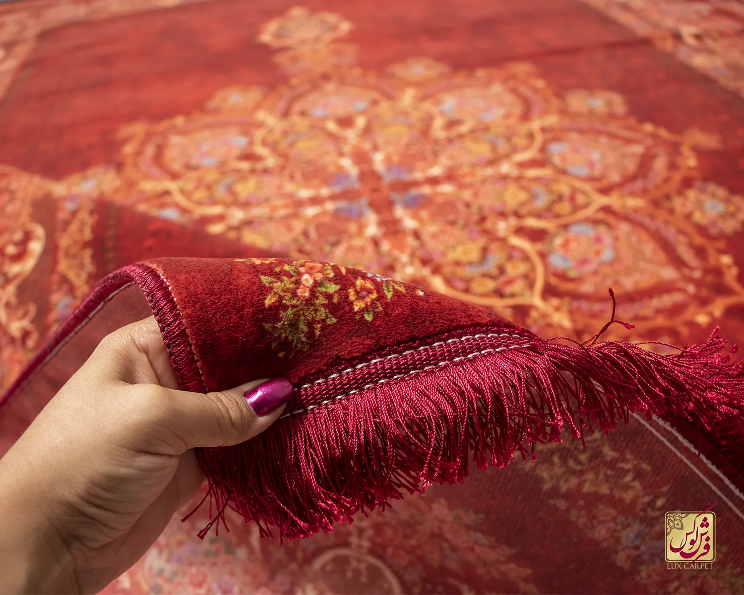 فرش ابریشم ماشینی X1969 قرمز لاکی