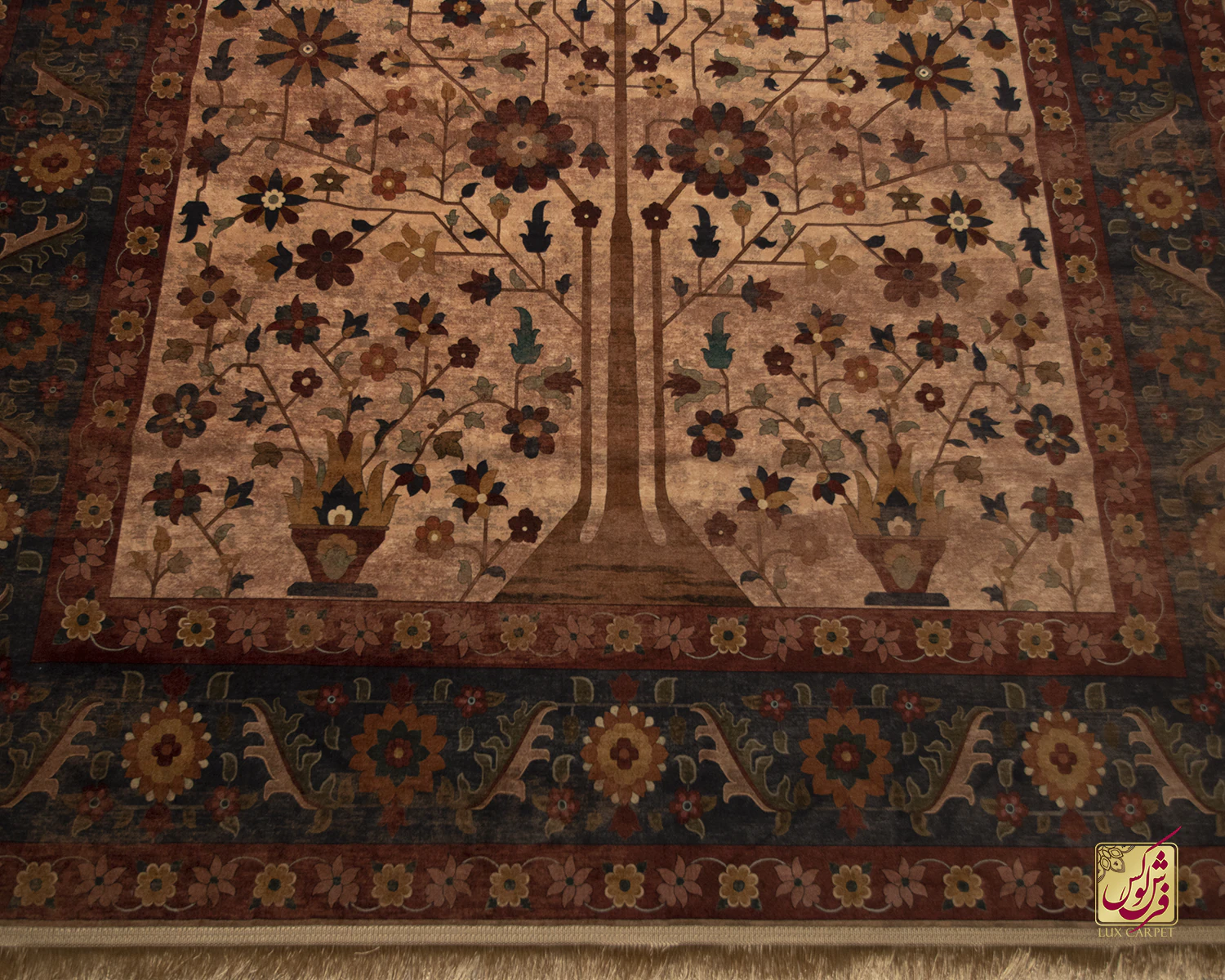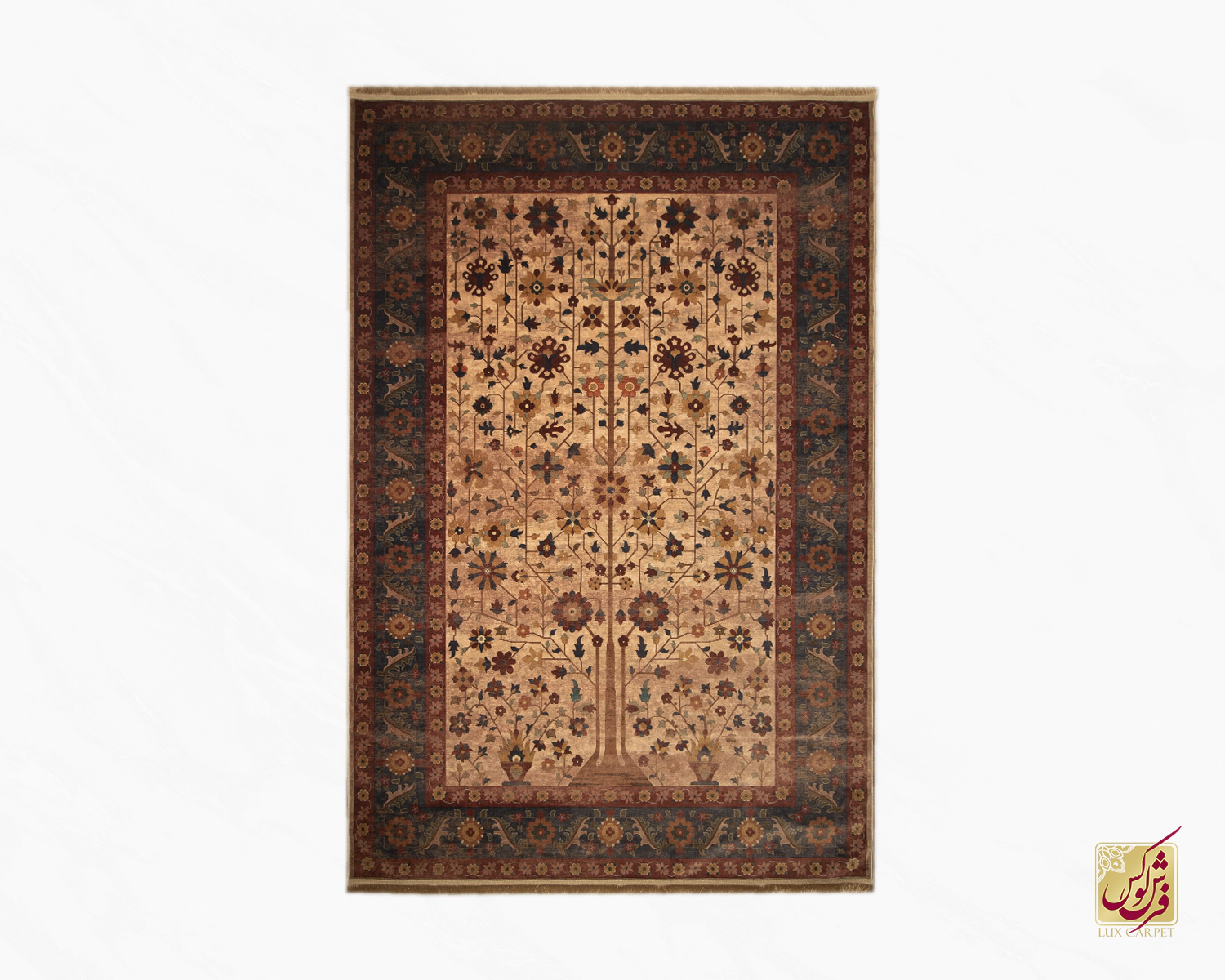 فرش ابریشم ماشینی Z1086 کرم حاشیه سرمه ای