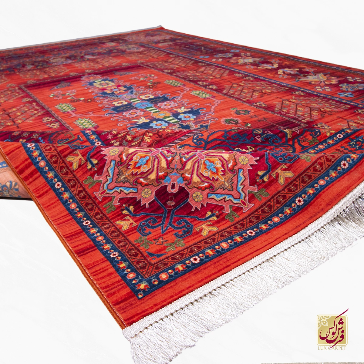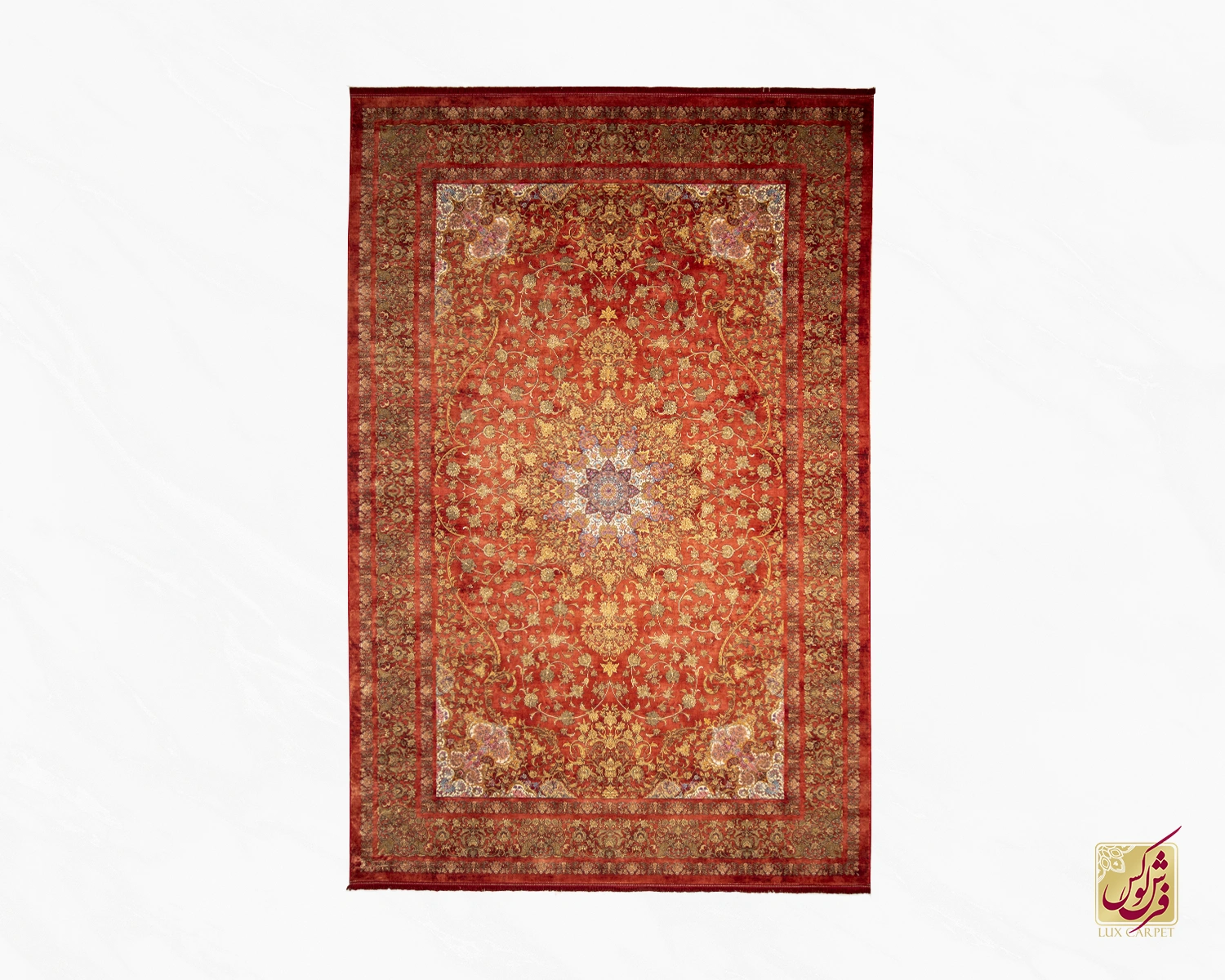 فرش ابریشم ماشینی ۷۲۳۱۰۴ قرمز کرم