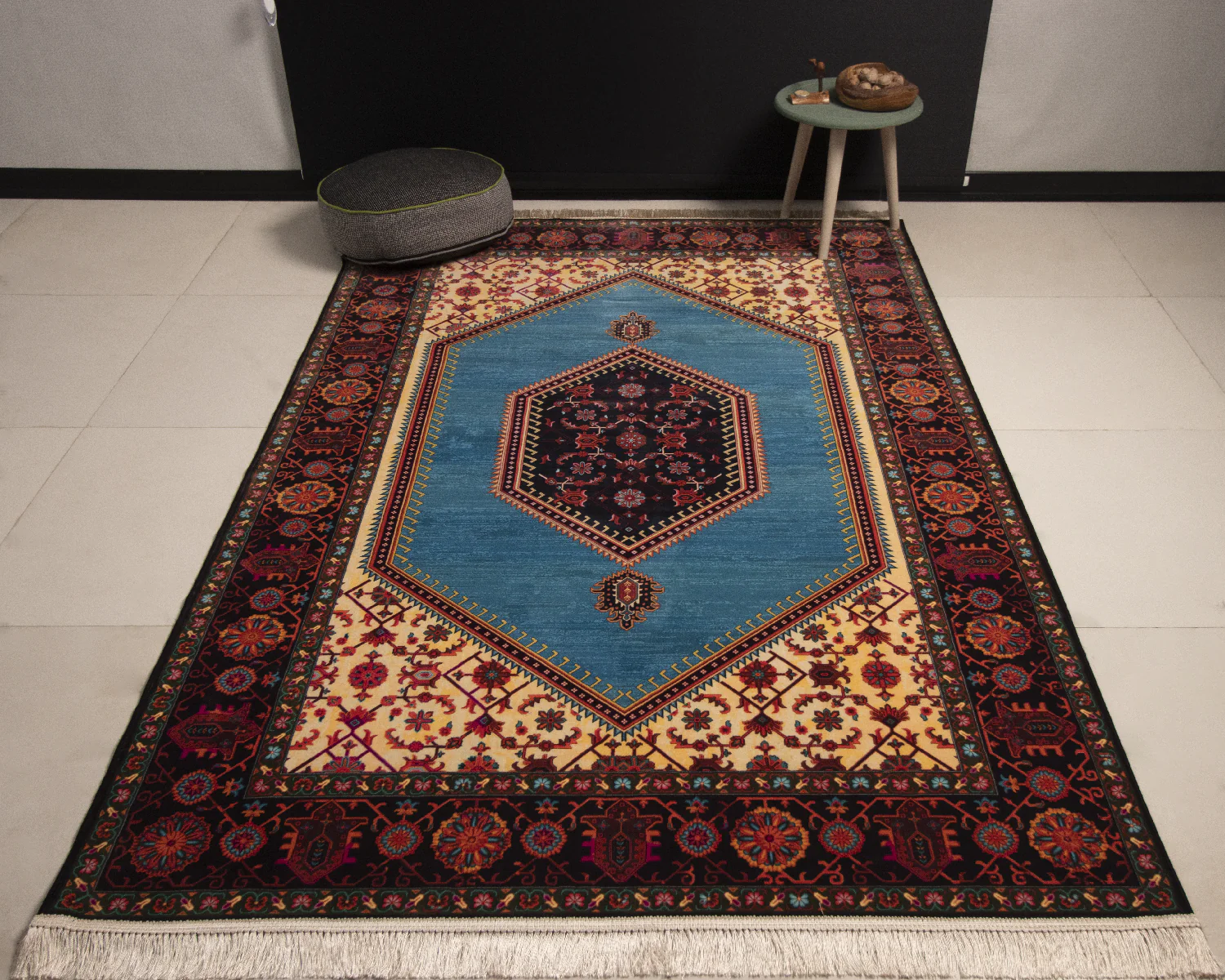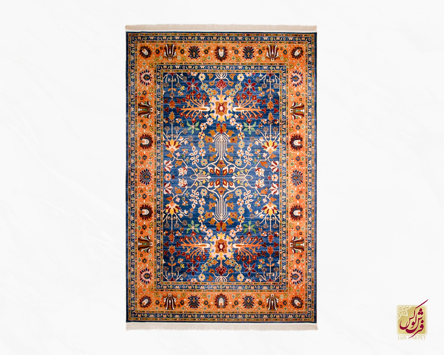 فرش ابریشم ماشینی ۷۴۳۱۰۰ آبی کرم