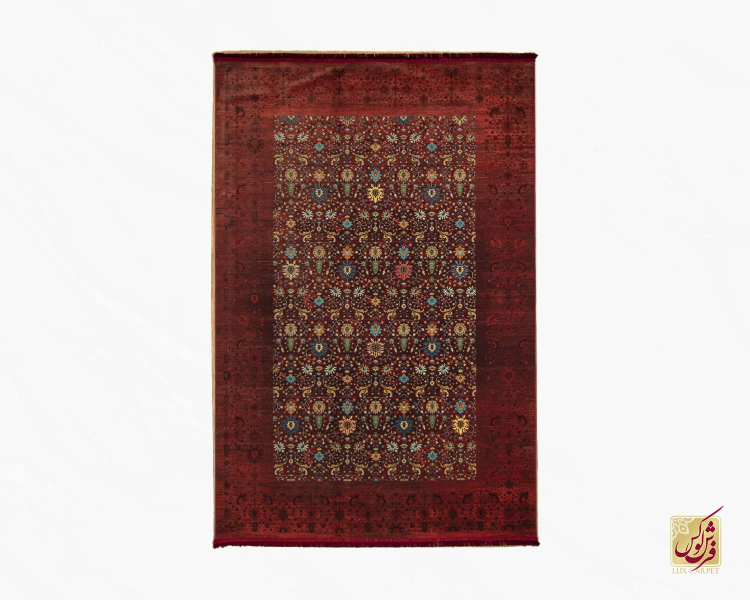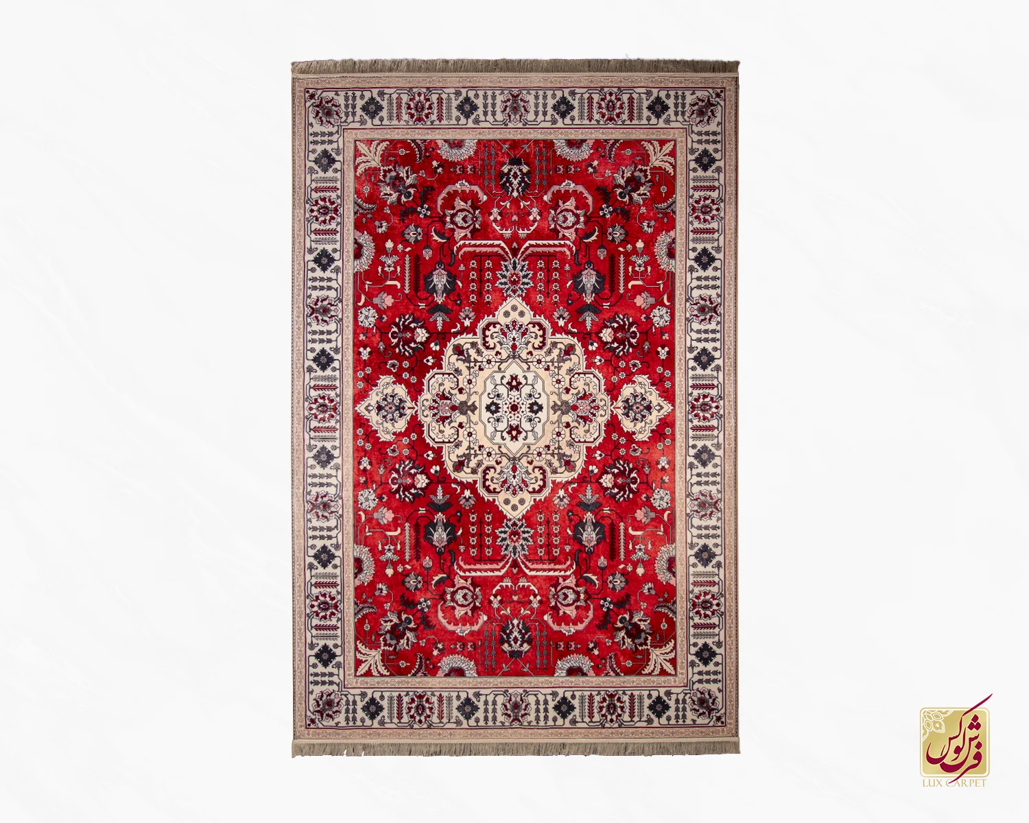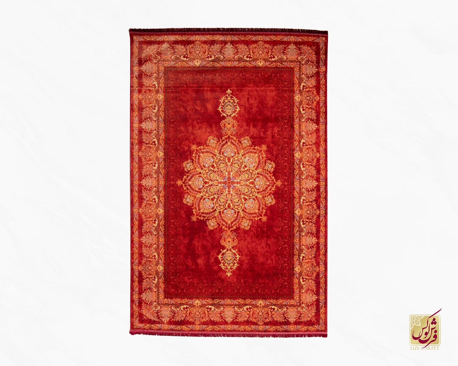 فرش ابریشم ماشینی T1050 قرمز لاکی
