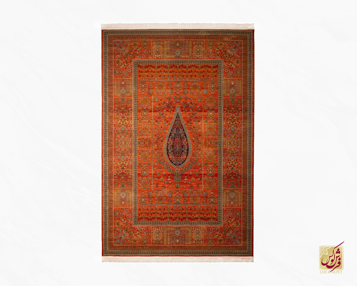 فرش ابریشم ماشینی ۷۳۰۹۰۱ نارنجی تمام رنگ