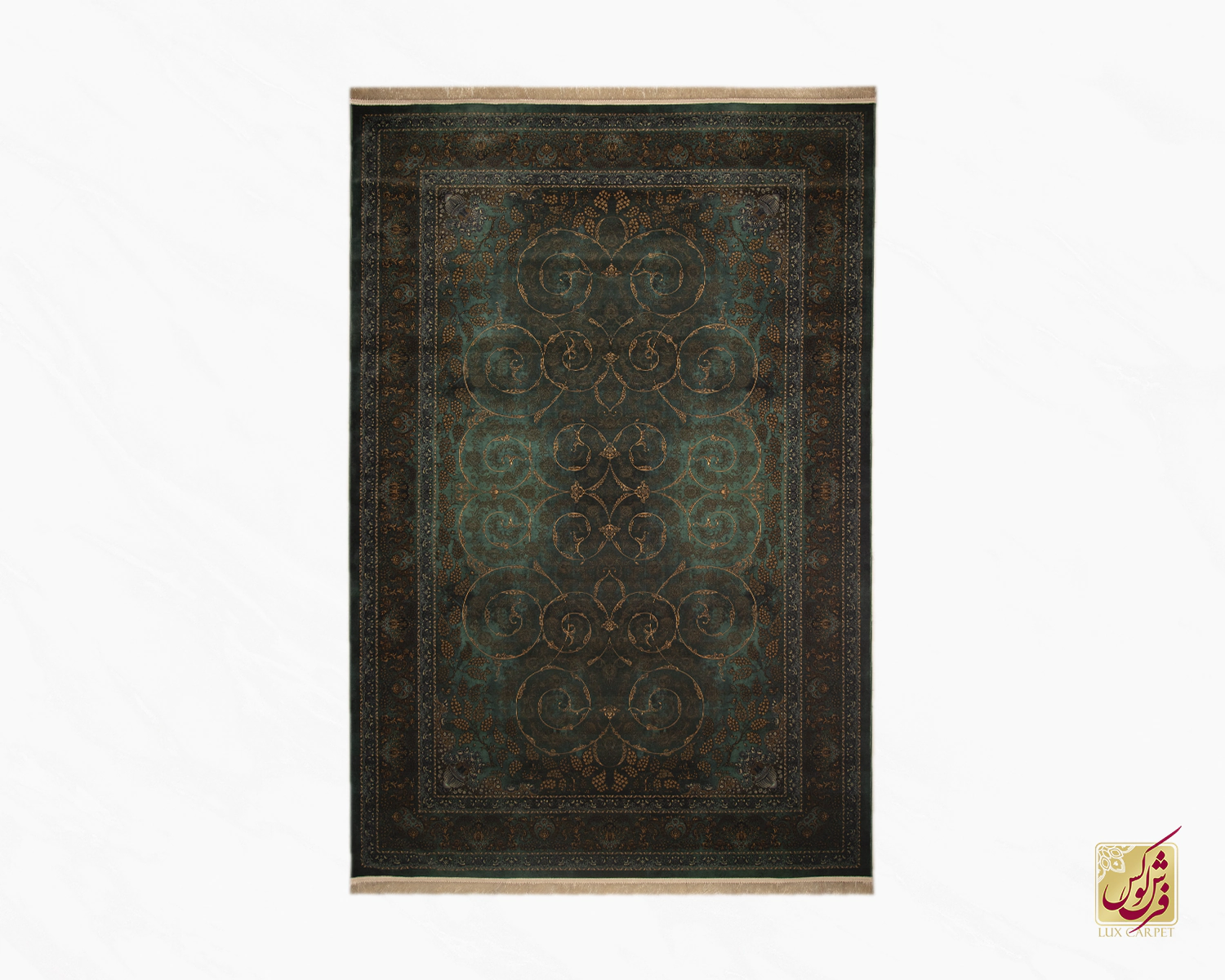 فرش ابریشم ماشینی ۷۰۲۵۵۶ سبز طلایی