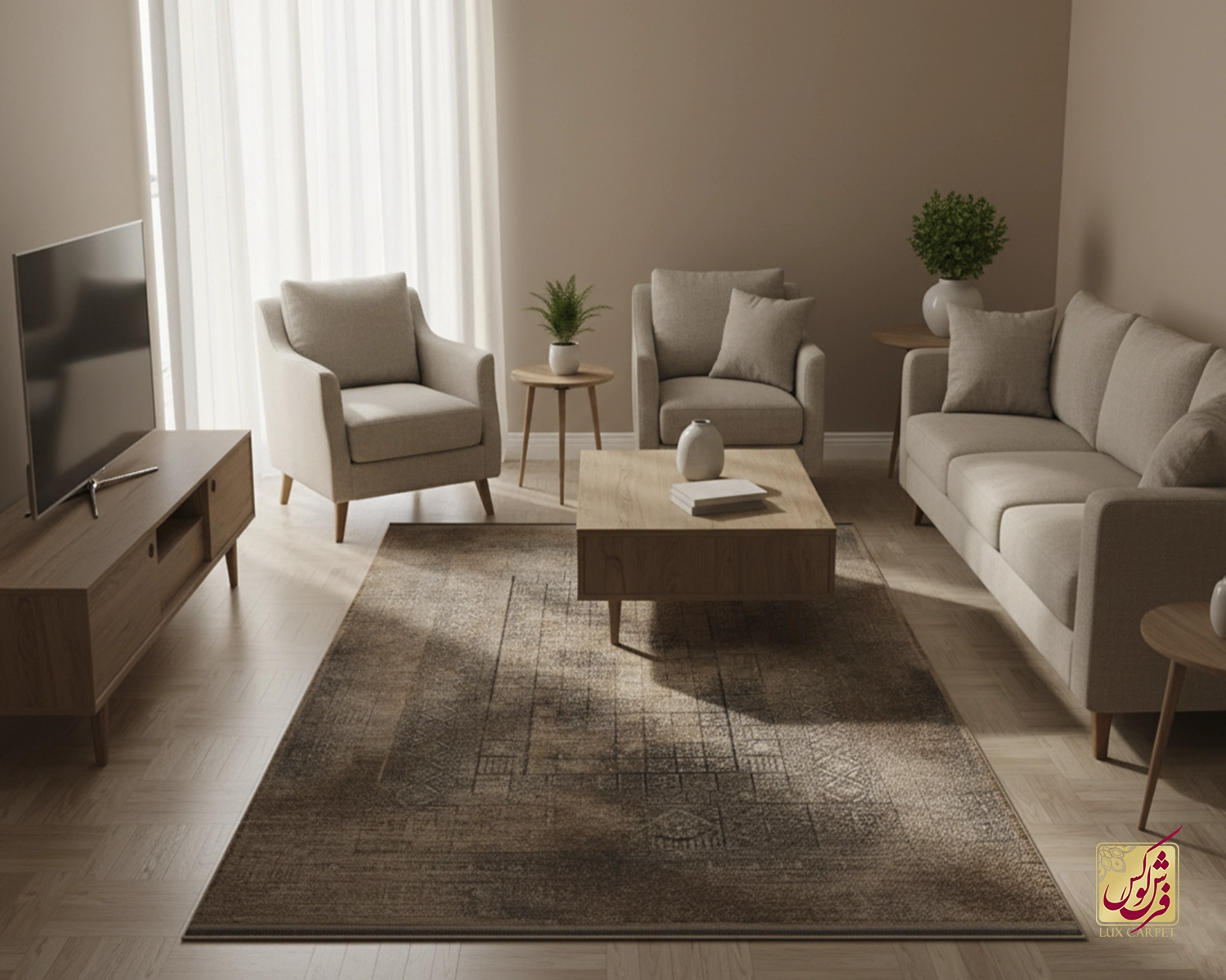 شناسـه محصـول: 2517فرش مینیمال ۷۷۰۴ کرم طوسی